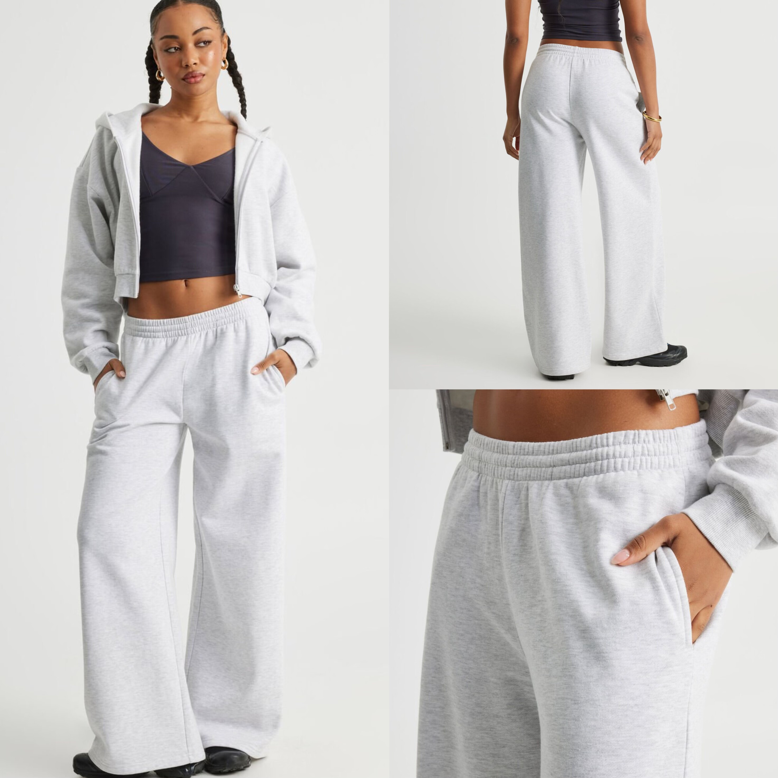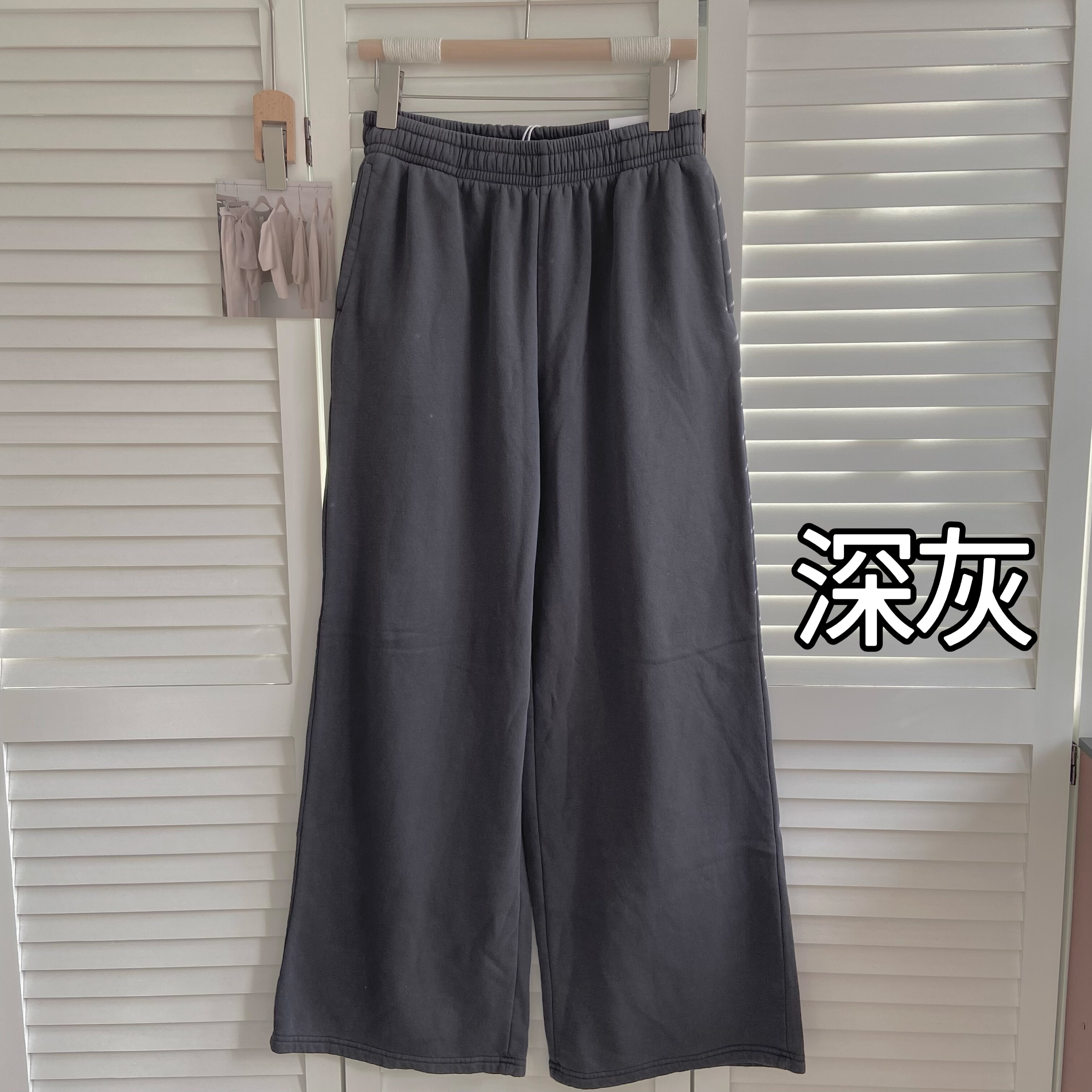 Foreign Trade Single-Brand Cotton F-Label Elastic Waist Drawstring Wide-Leg Fleece Sweatpants for Women, Loose Casual Sports Pants