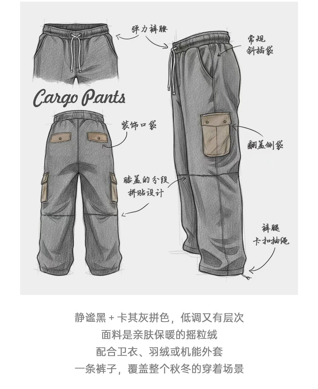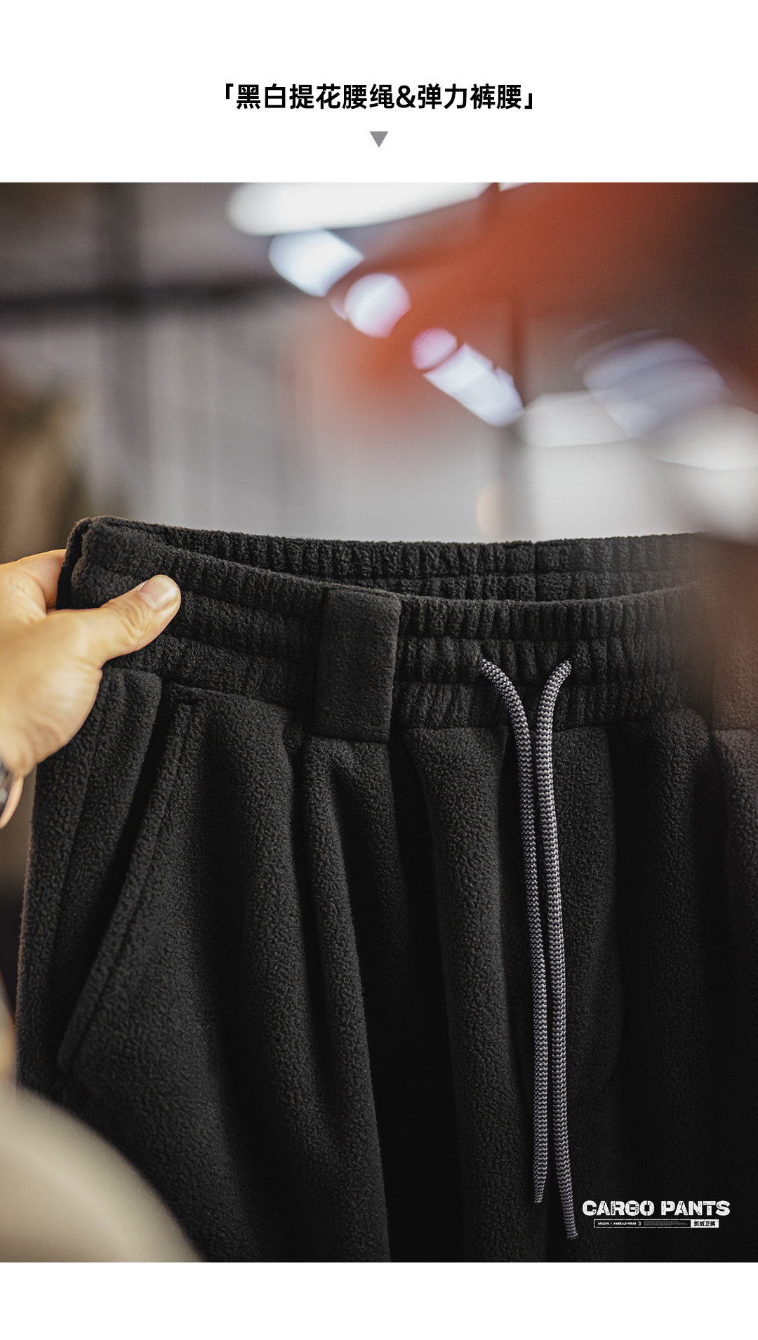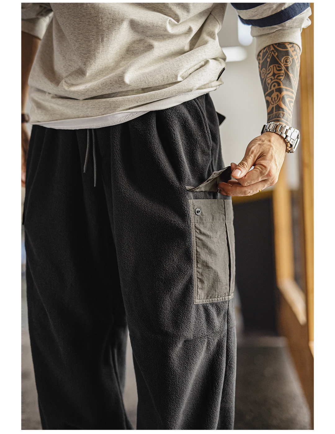 Madden Workwear American Retro Double-Sided Fleece Sweatpants with Cuffs, Warm Black Multi-Pocket Casual Pants for Men in Winter