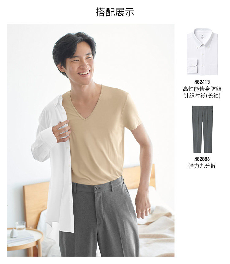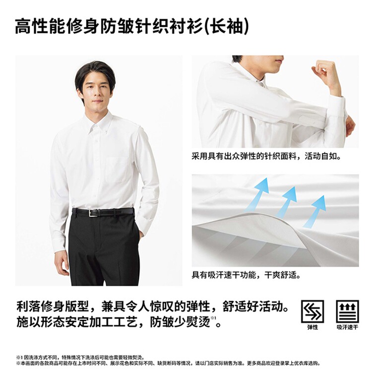 Uniqlo Men's High-Performance Slim Fit Anti-Wrinkle Knit Shirt/Long Sleeve 26 Spring/Summer New Model 482413 473179