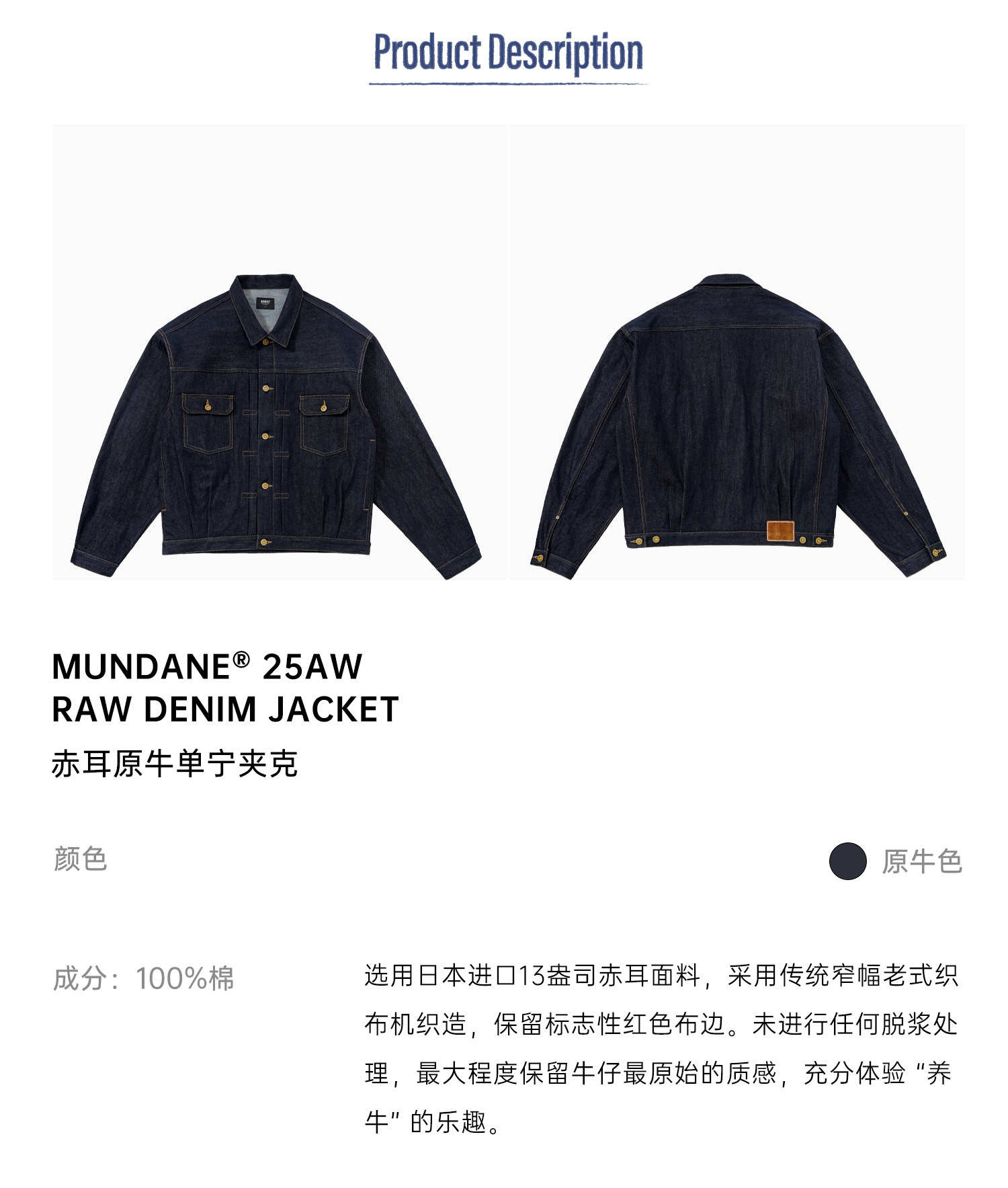 Mundane 25Aw Selvedge Denim Jacket