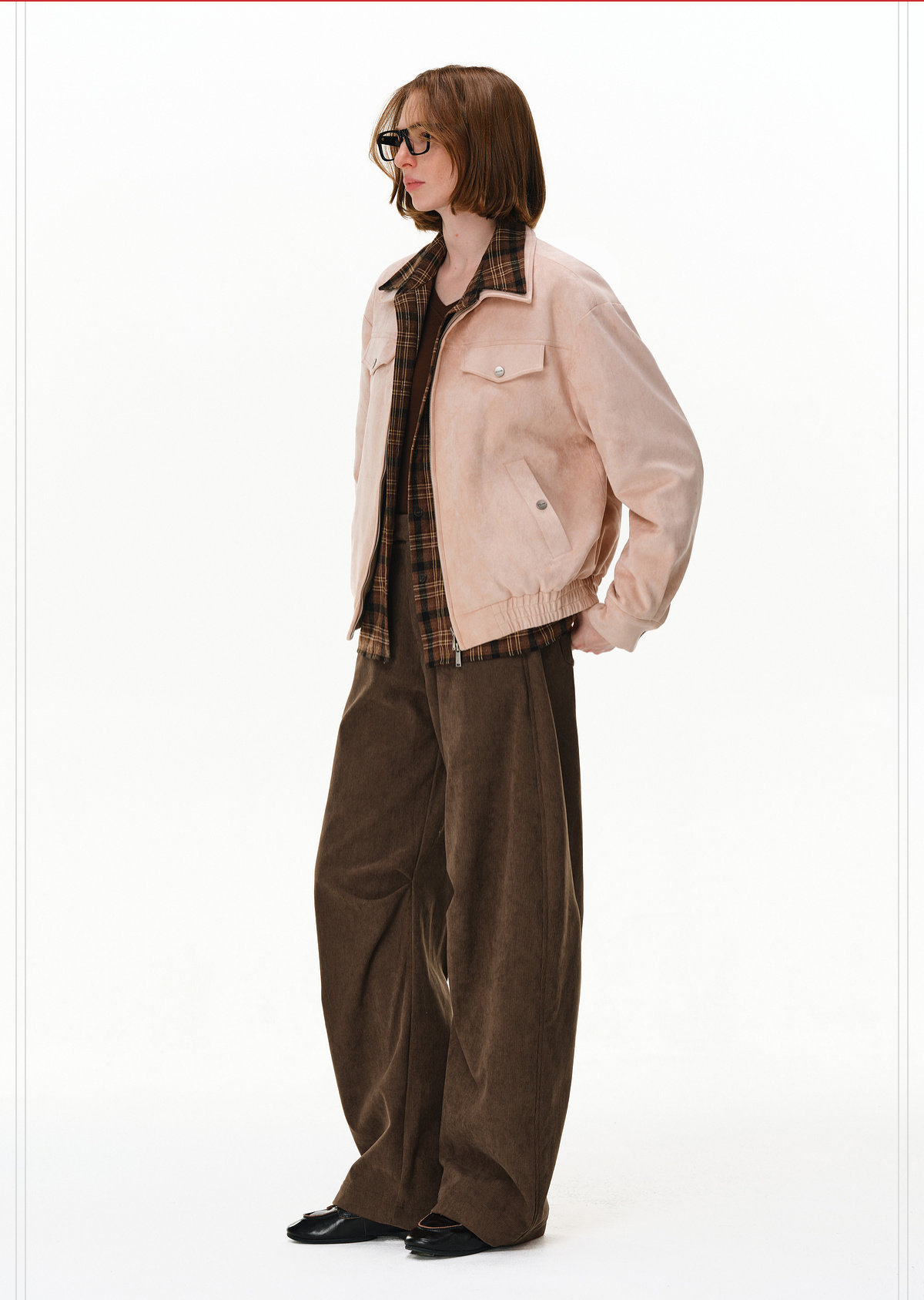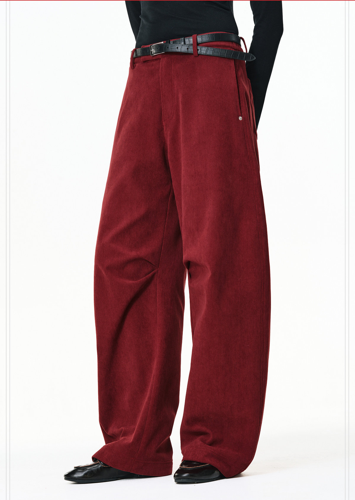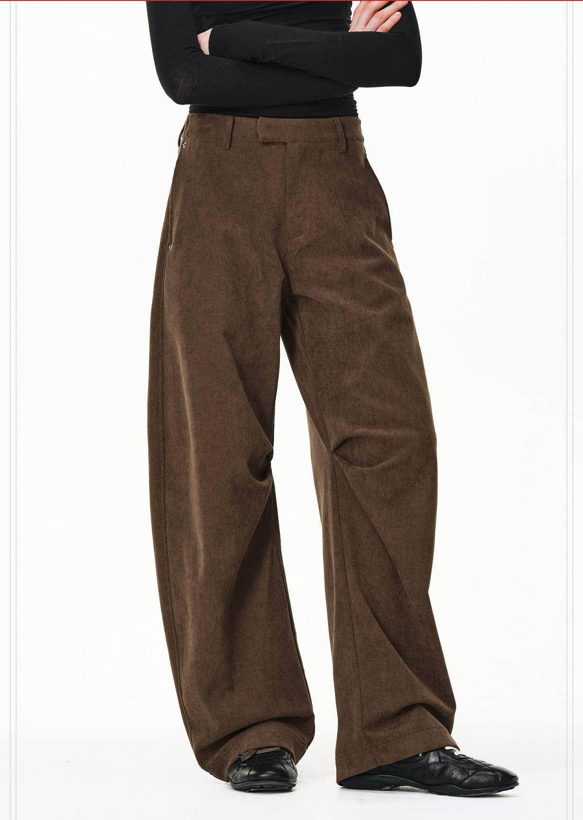 【Same Style as Zhang Xinzhe】Pclp Silhouette with a Wide, Curved Knife-Cut Pleated Corduroy Long Pants, Loose-Fitting Winter Trousers