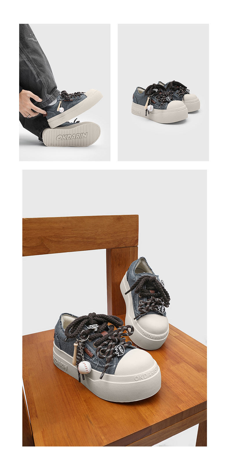 Uenoplanet American-Style Thick-Soled Sneakers 2026 New Breathable Large-Toe Canvas Shoes Height-Increasing Casual Shoes for Men in Autumn