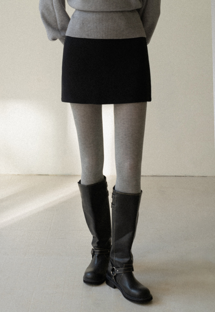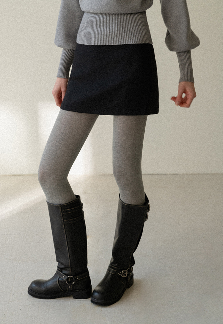 Eggka Gray Simple A-Line Wool Skirt for Women, Autumn and Winter Korean Style, High-End, Elegant, Anti-Exposure Casual Short Skirt