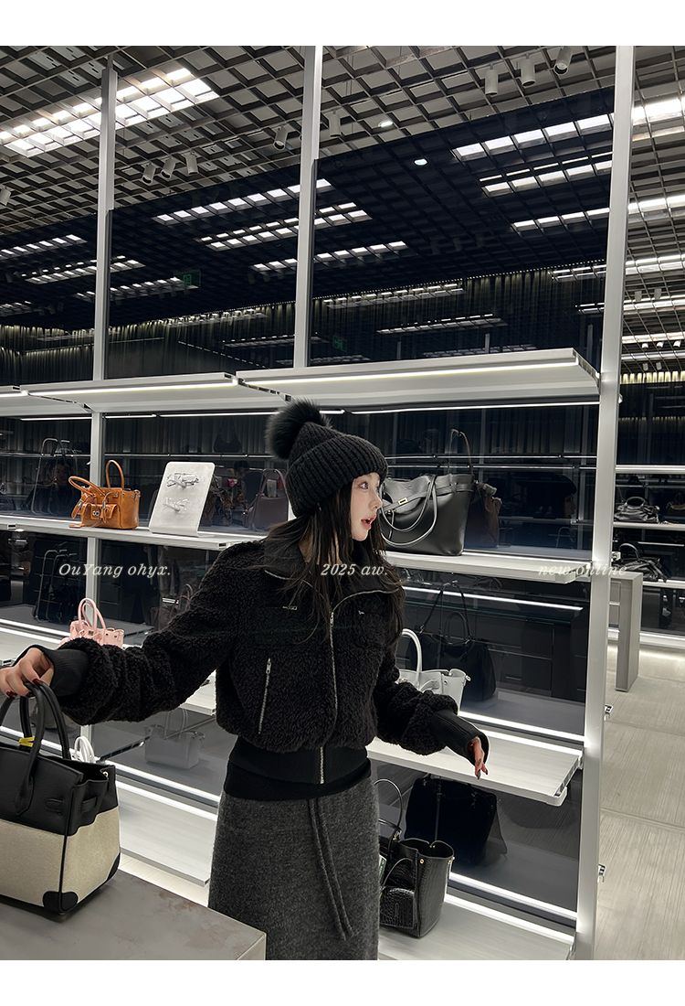 定制托卡绒感环葆羊羔皮毛一体面料