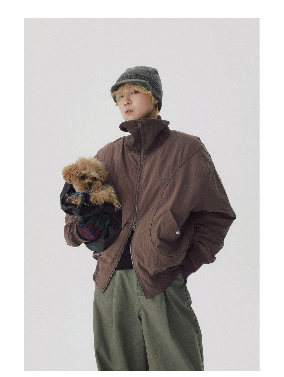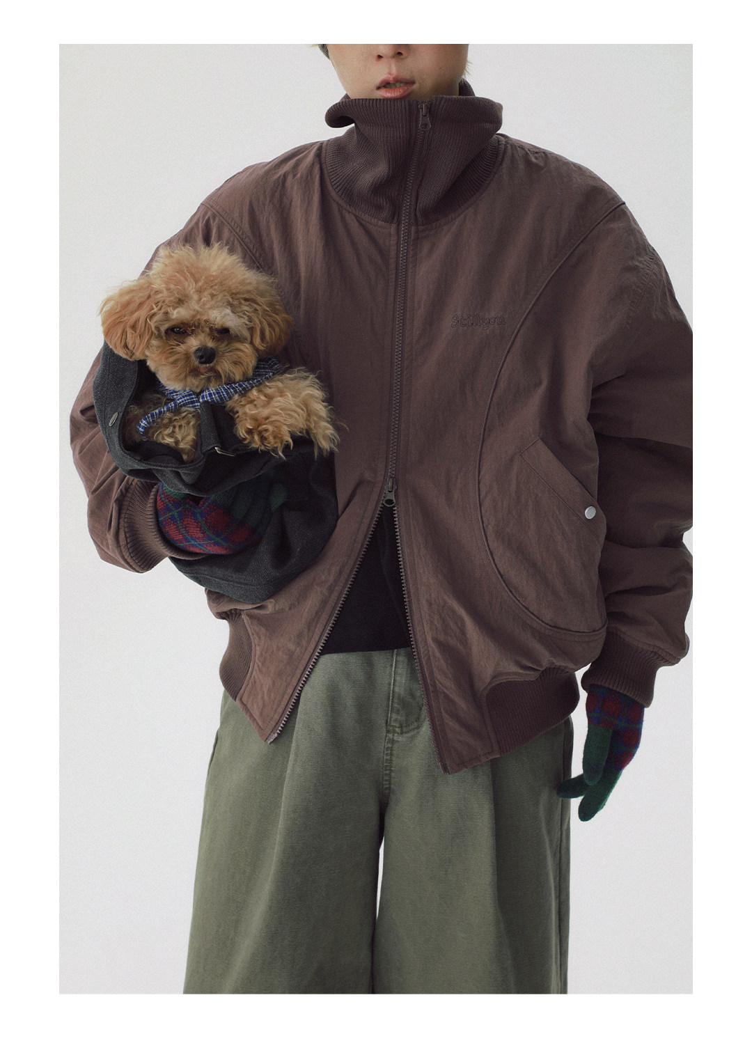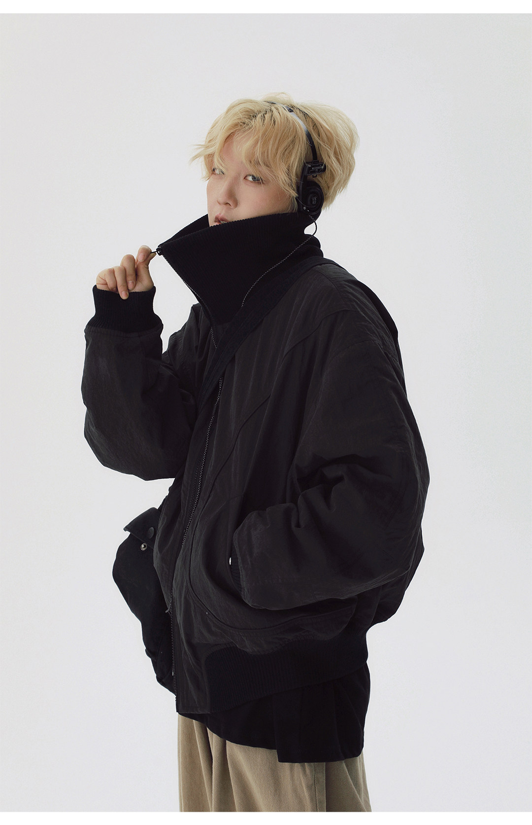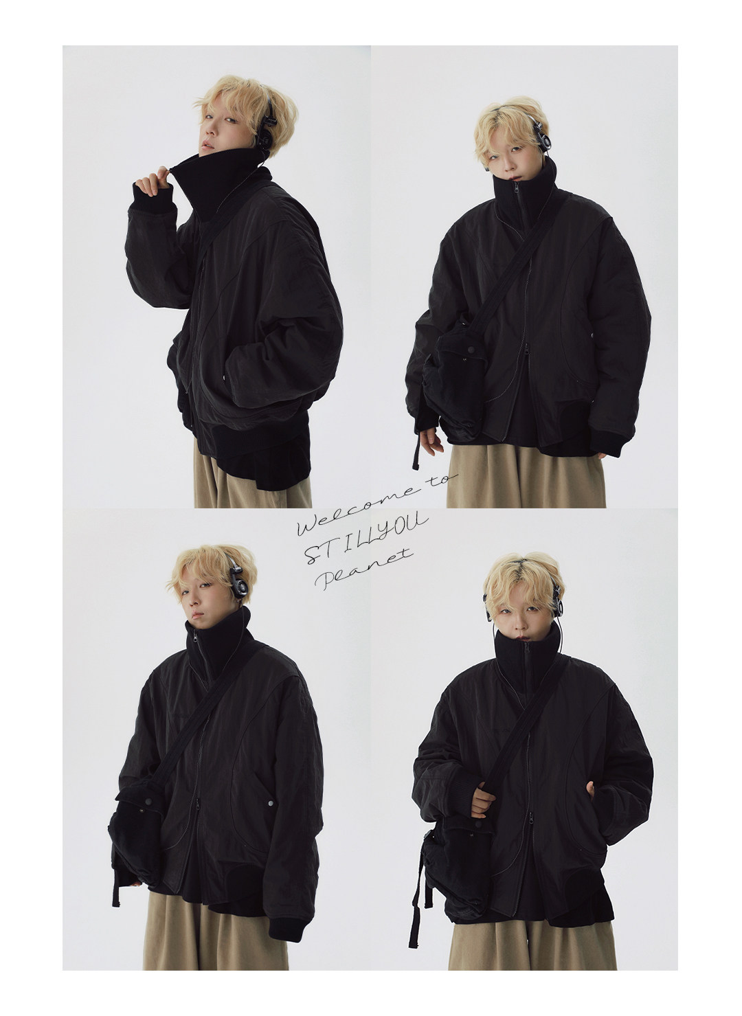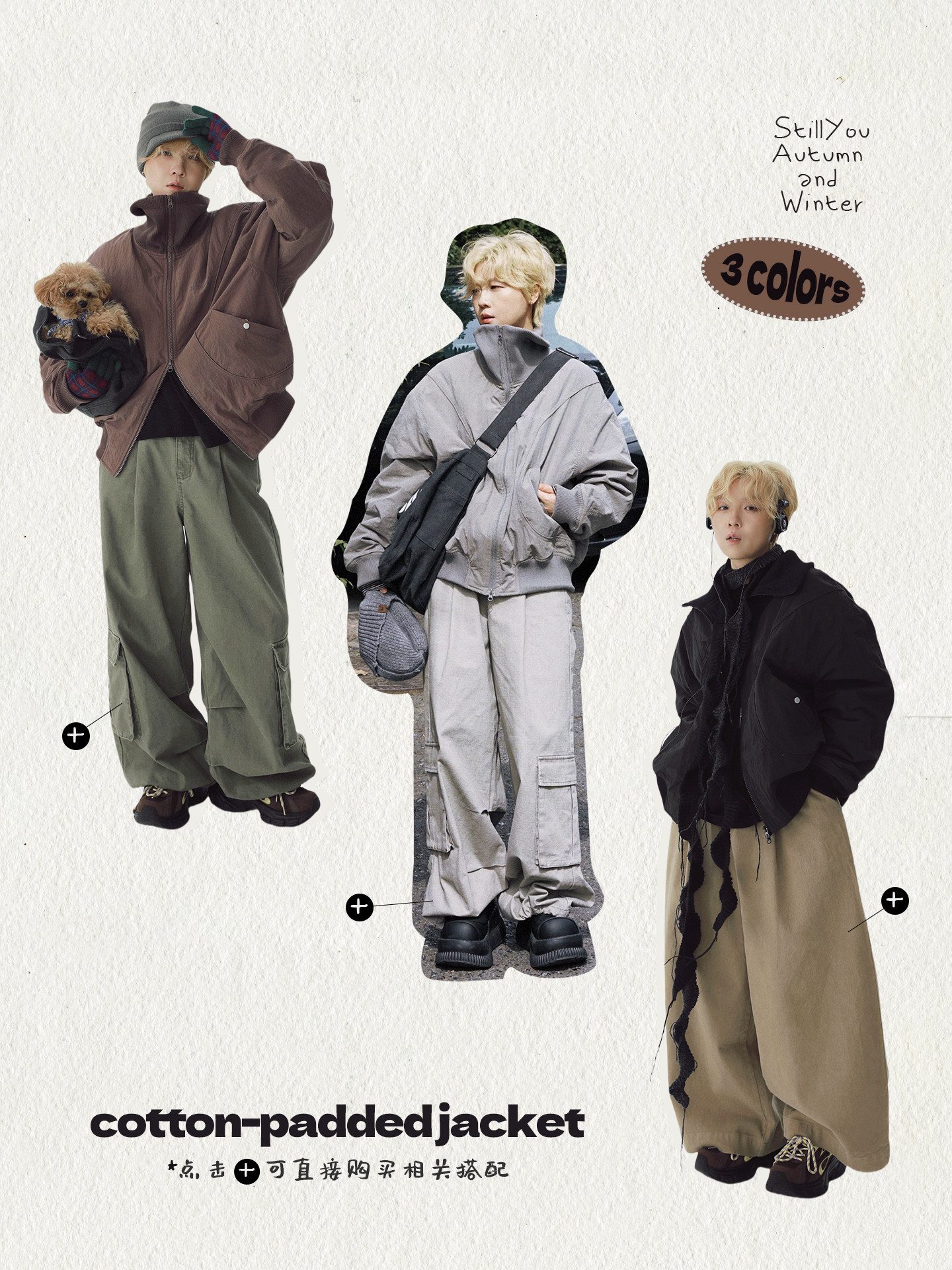 Stillyou Retro Street Style Handsome Knitted High-Neck Windproof Flight Jacket Cotton Short Loose Quilted Cotton Jacket