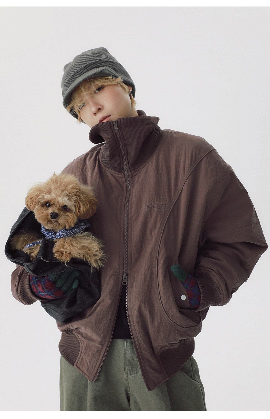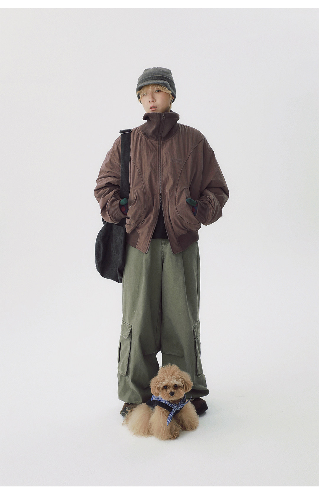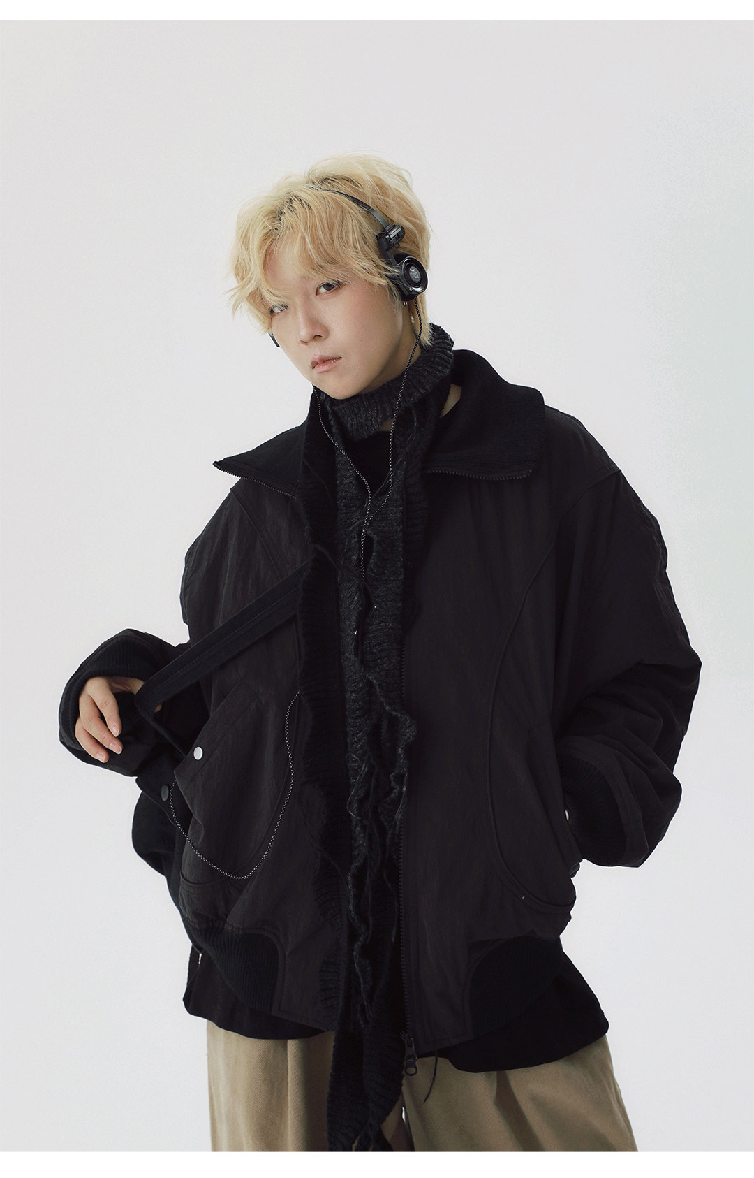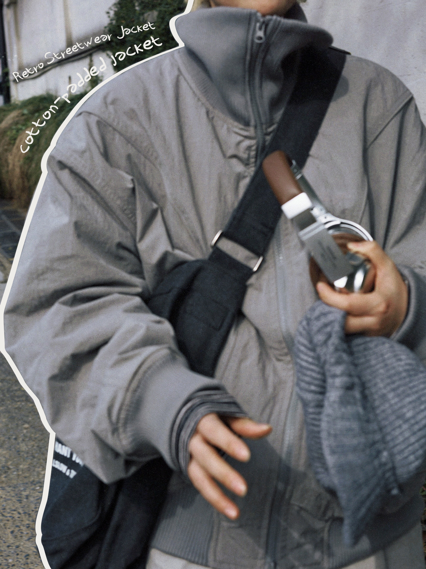Stillyou Retro Street Style Handsome Knitted High-Neck Windproof Flight Jacket Cotton Short Loose Quilted Cotton Jacket
