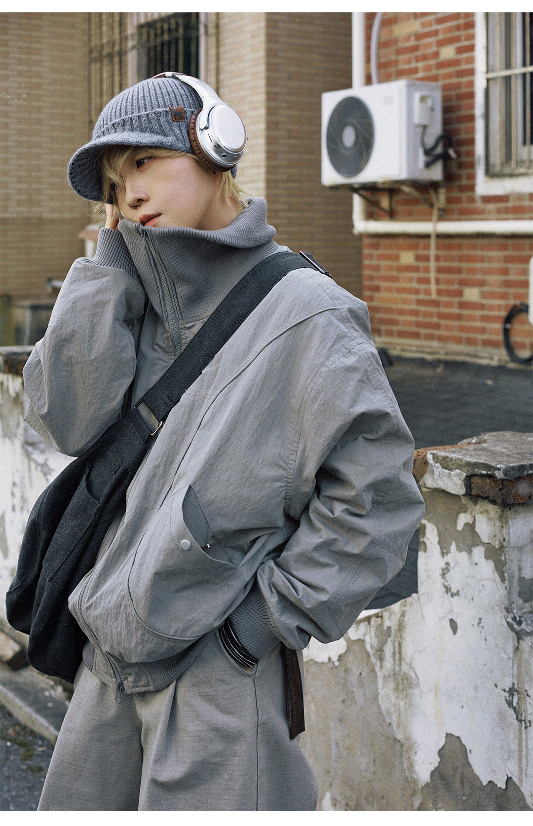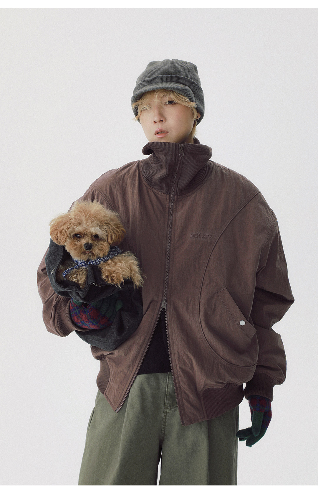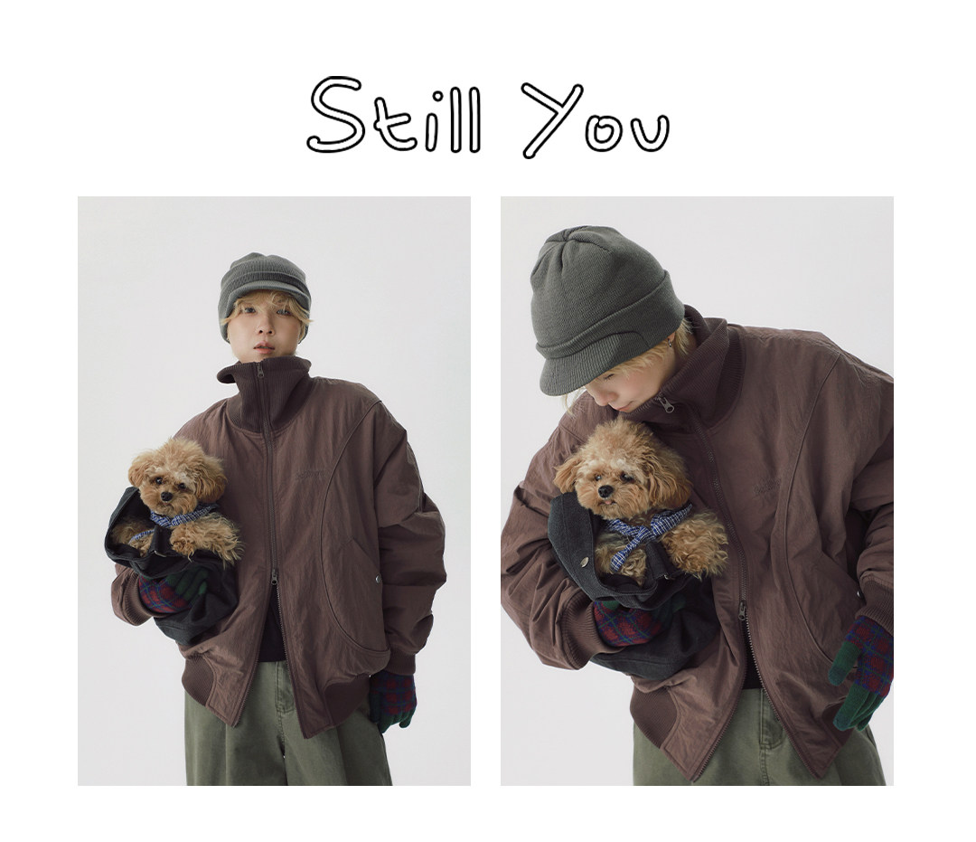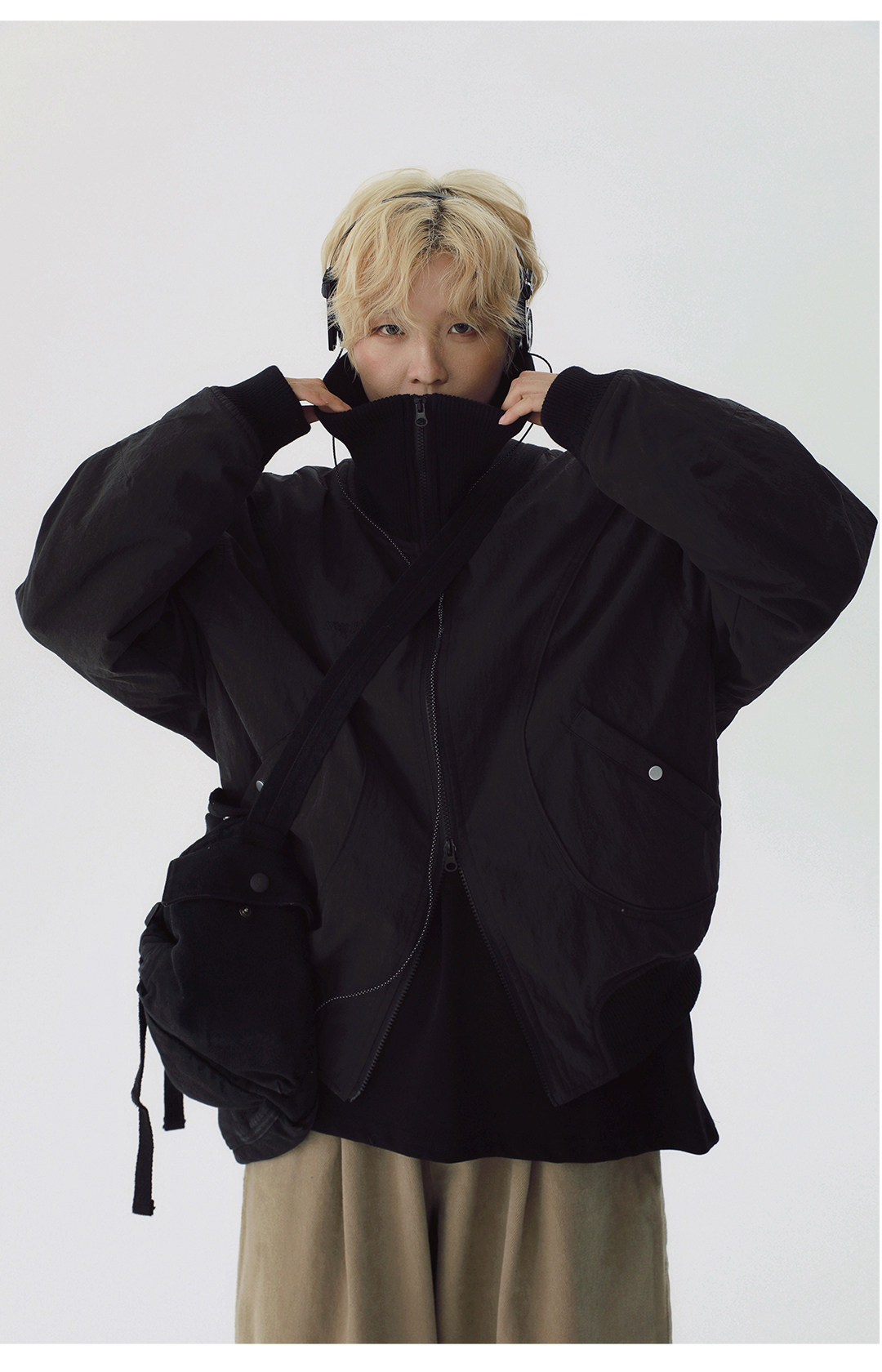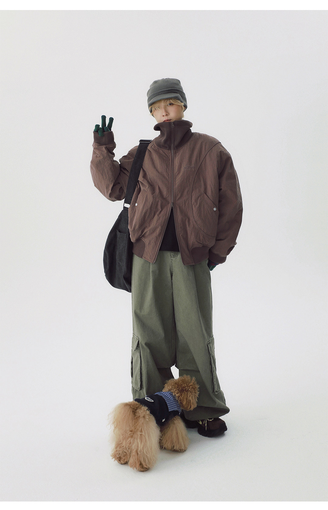 Stillyou Retro Street Style Handsome Knitted High-Neck Windproof Flight Jacket Cotton Short Loose Quilted Cotton Jacket