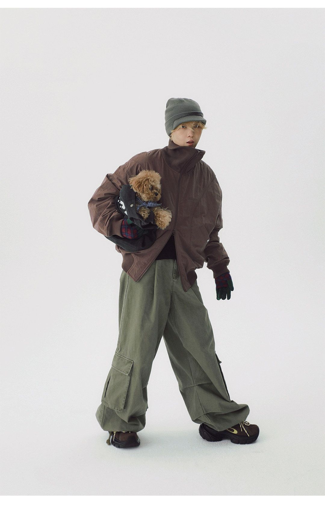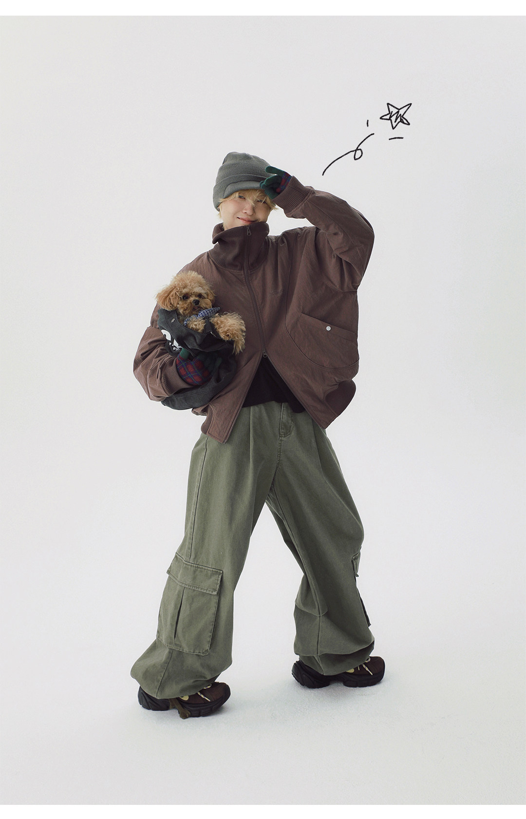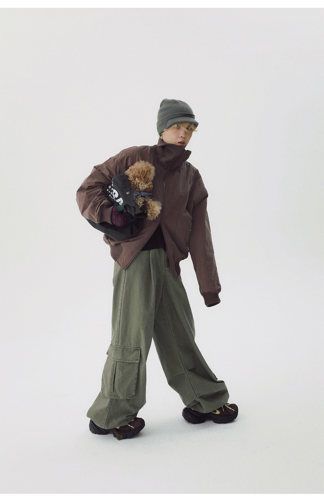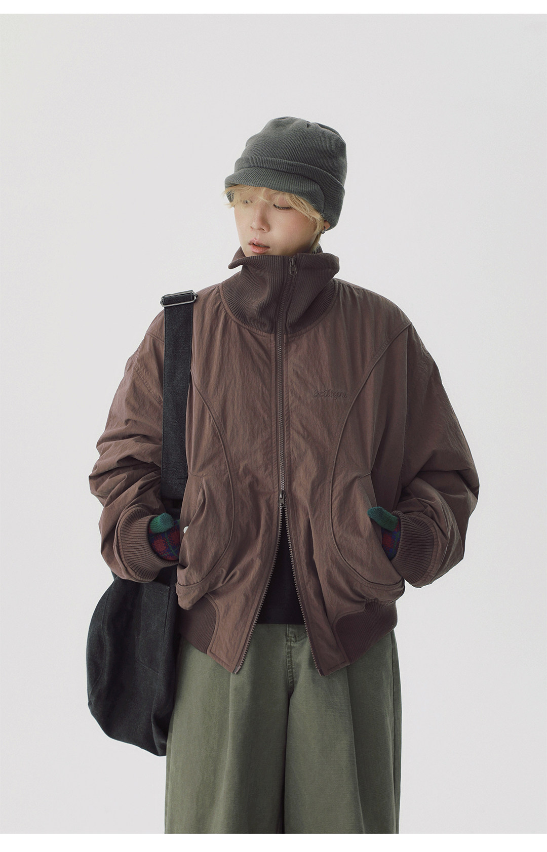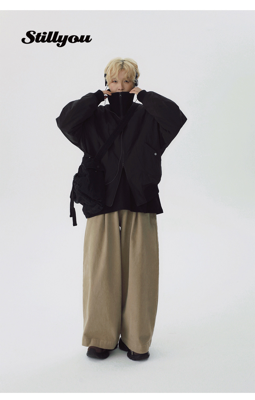 Stillyou Retro Street Style Handsome Knitted High-Neck Windproof Flight Jacket Cotton Short Loose Quilted Cotton Jacket