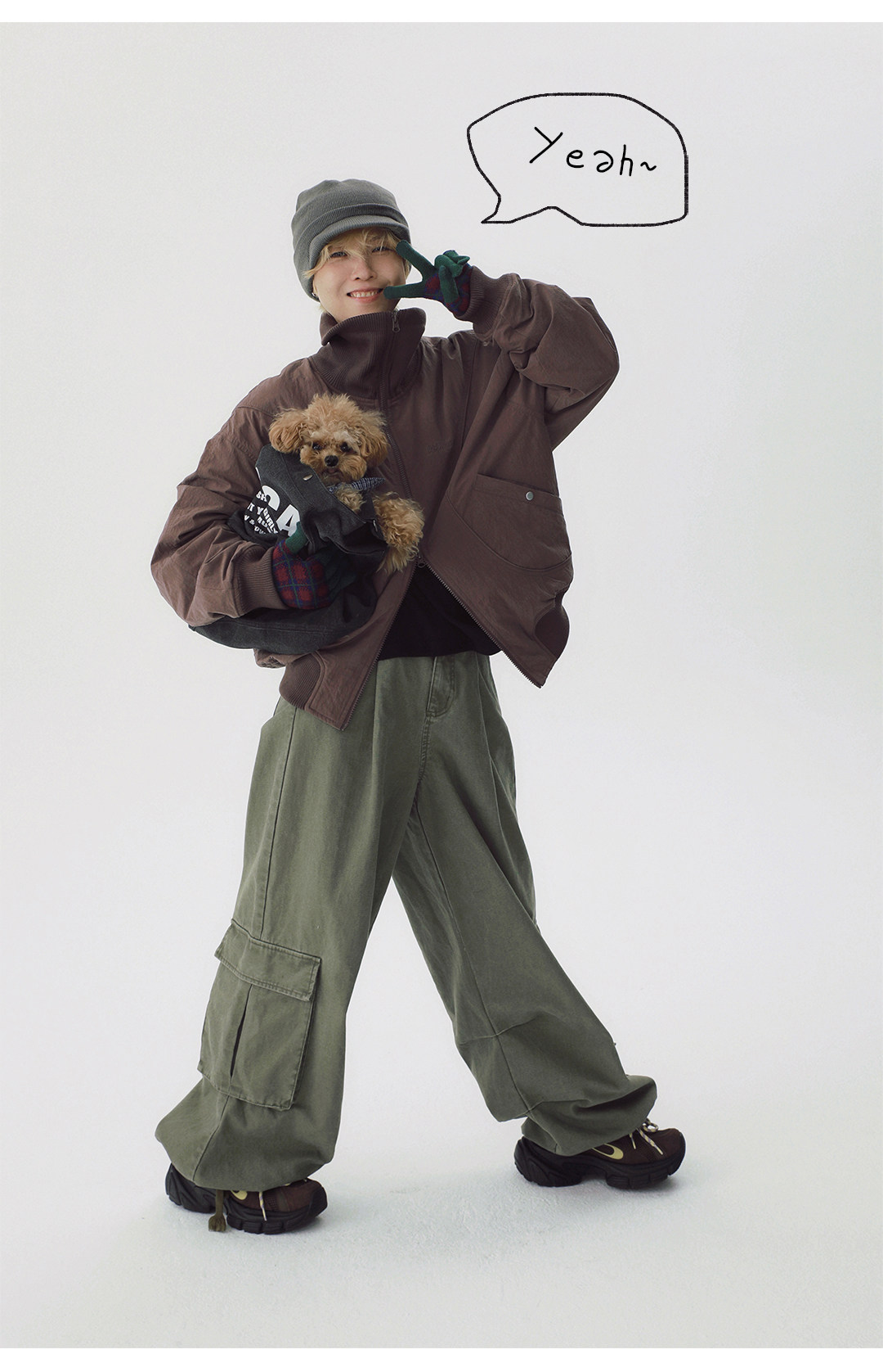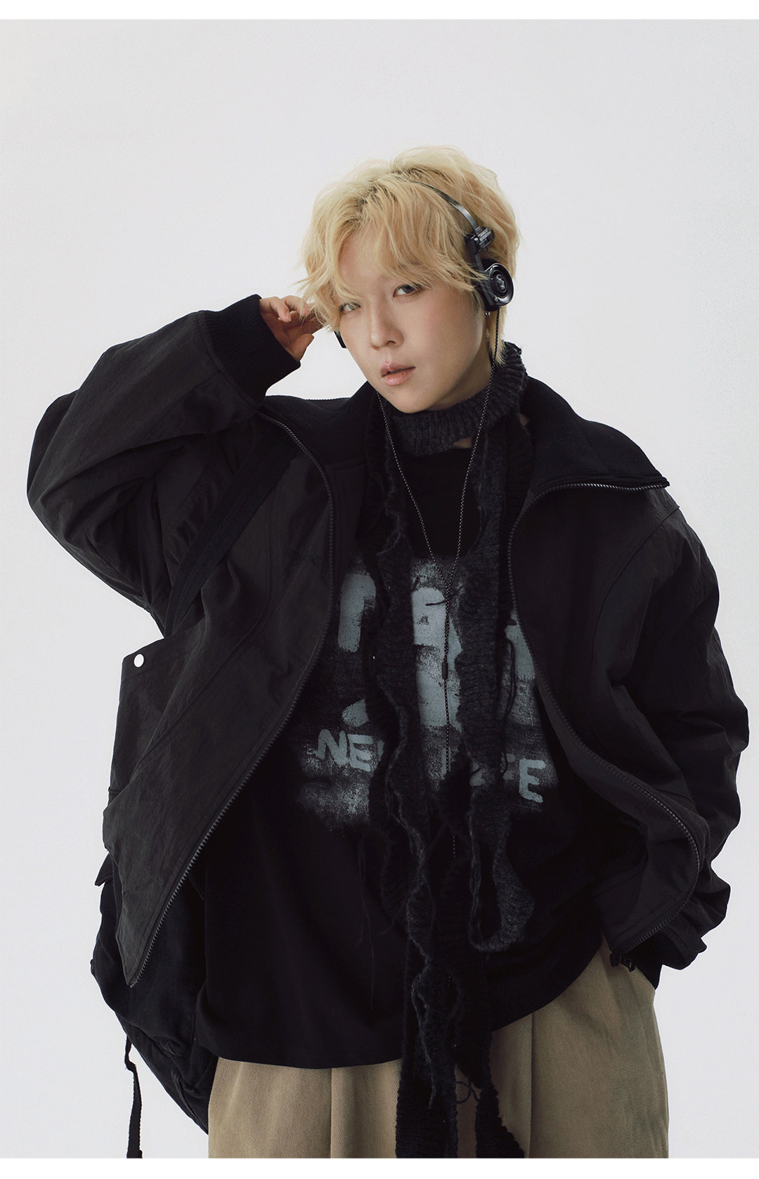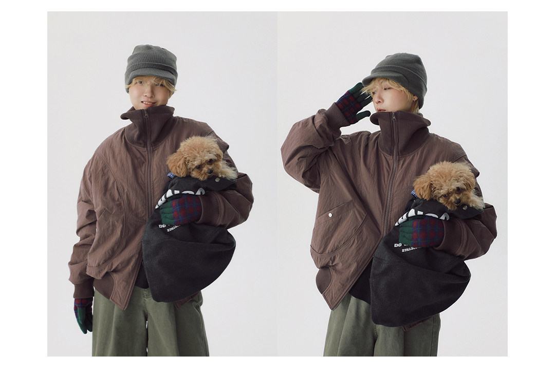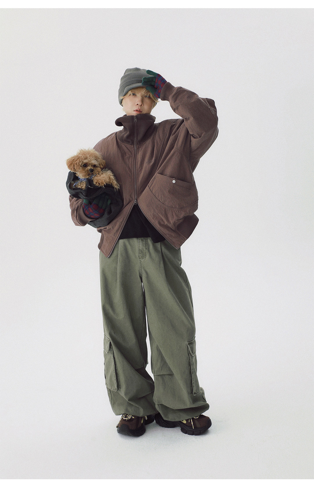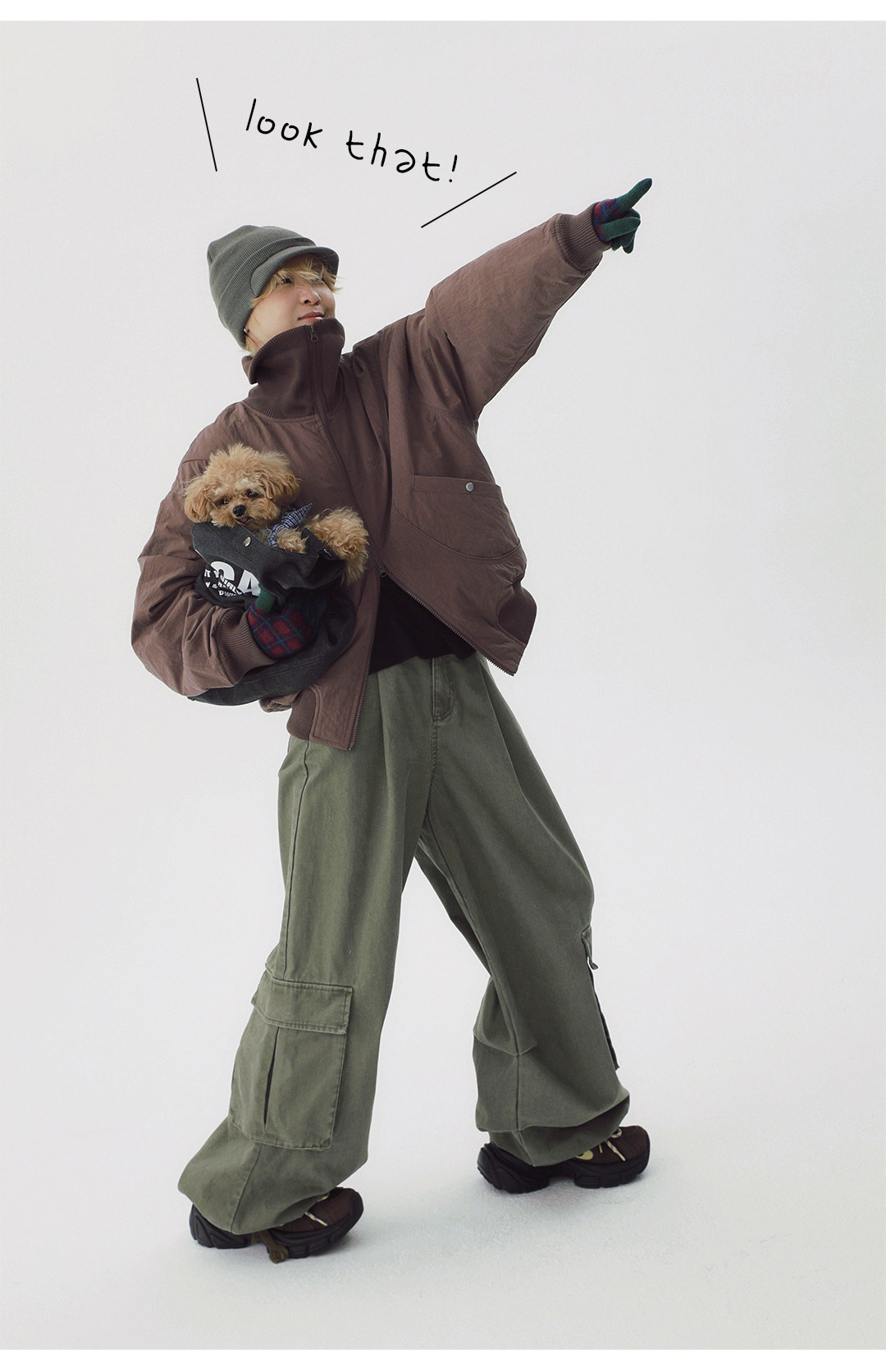 Stillyou Retro Street Style Handsome Knitted High-Neck Windproof Flight Jacket Cotton Short Loose Quilted Cotton Jacket
