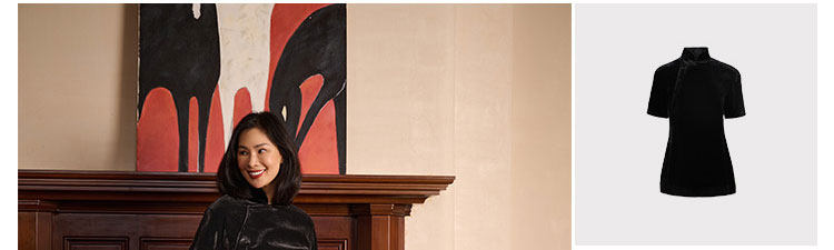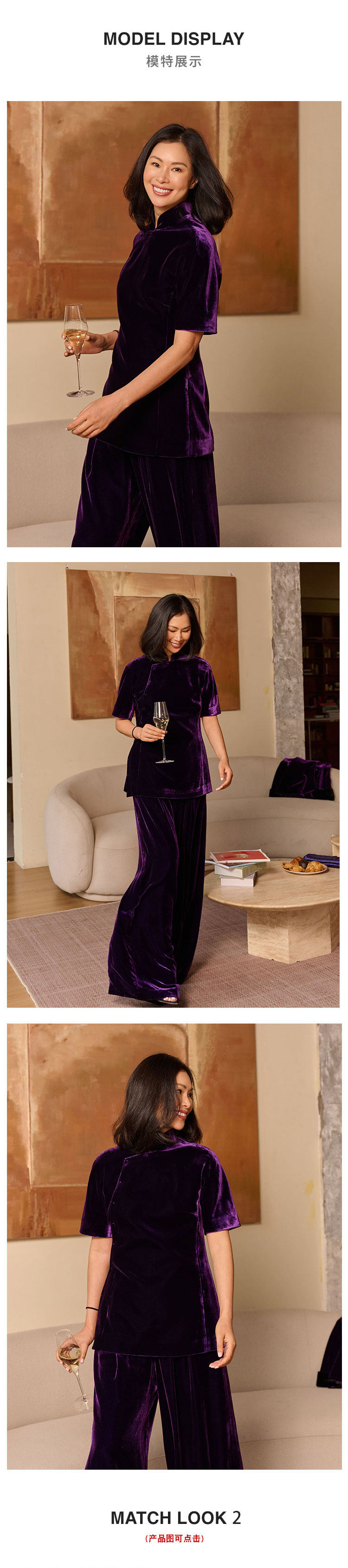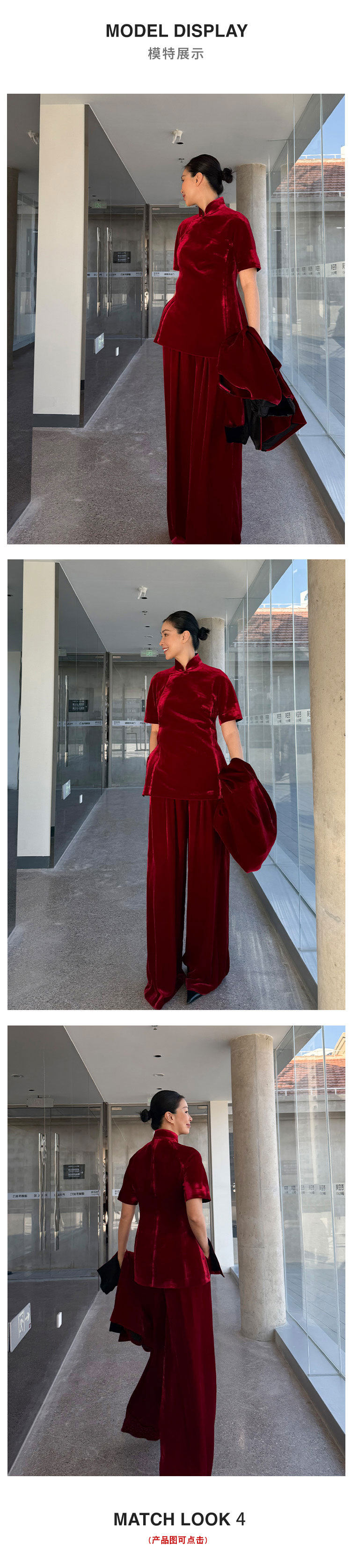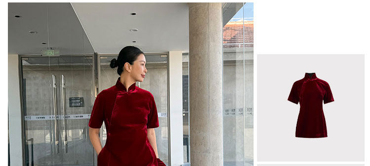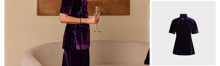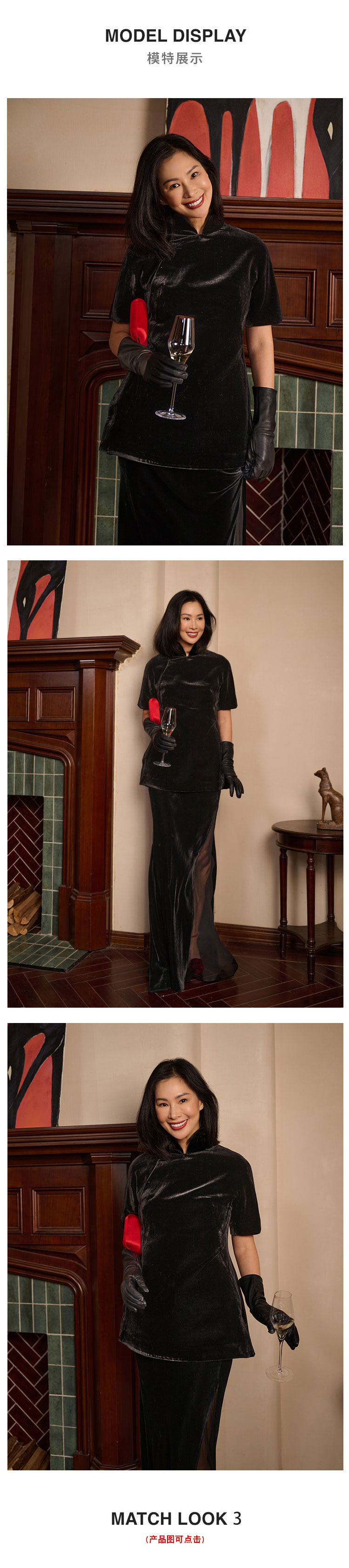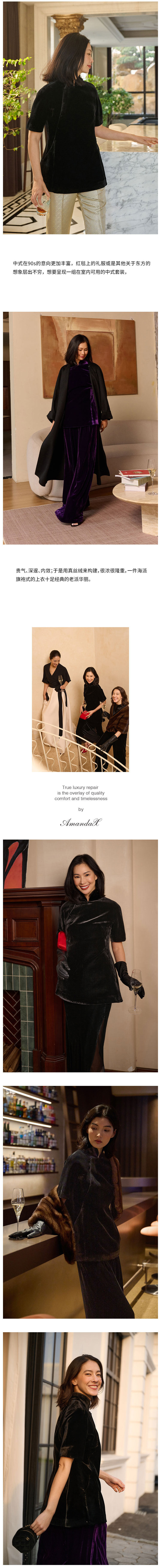 Amandax "Dream Back to the 90S" Series Silk Velvet Stand-Up Collar Diagonal Placket Cheongsam-Style Top/Dress