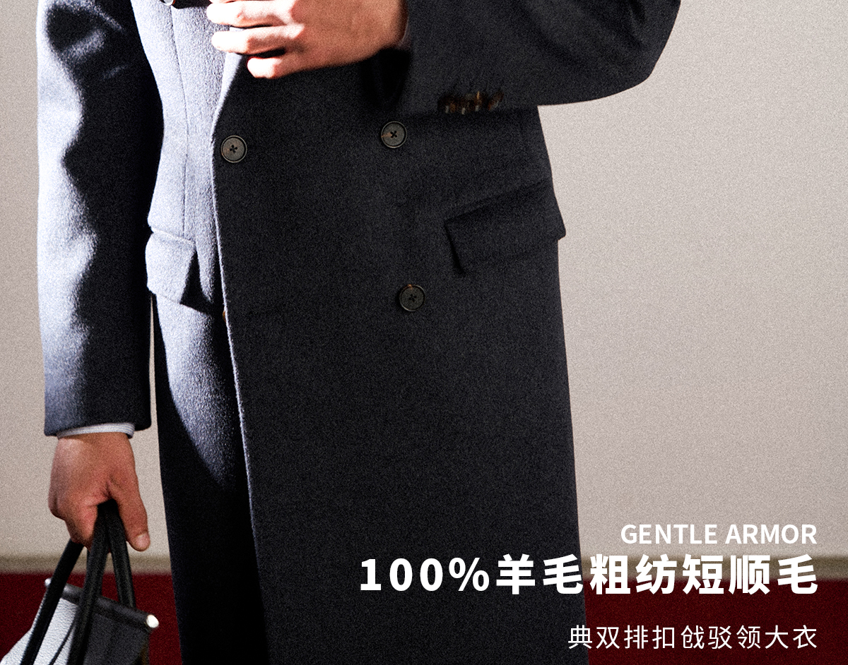 【100% Wool】Cultum Autumn and Winter Coat for Men, Mid-Length, Short Straight Wool, High-End Double-Breasted Thickened Jacket