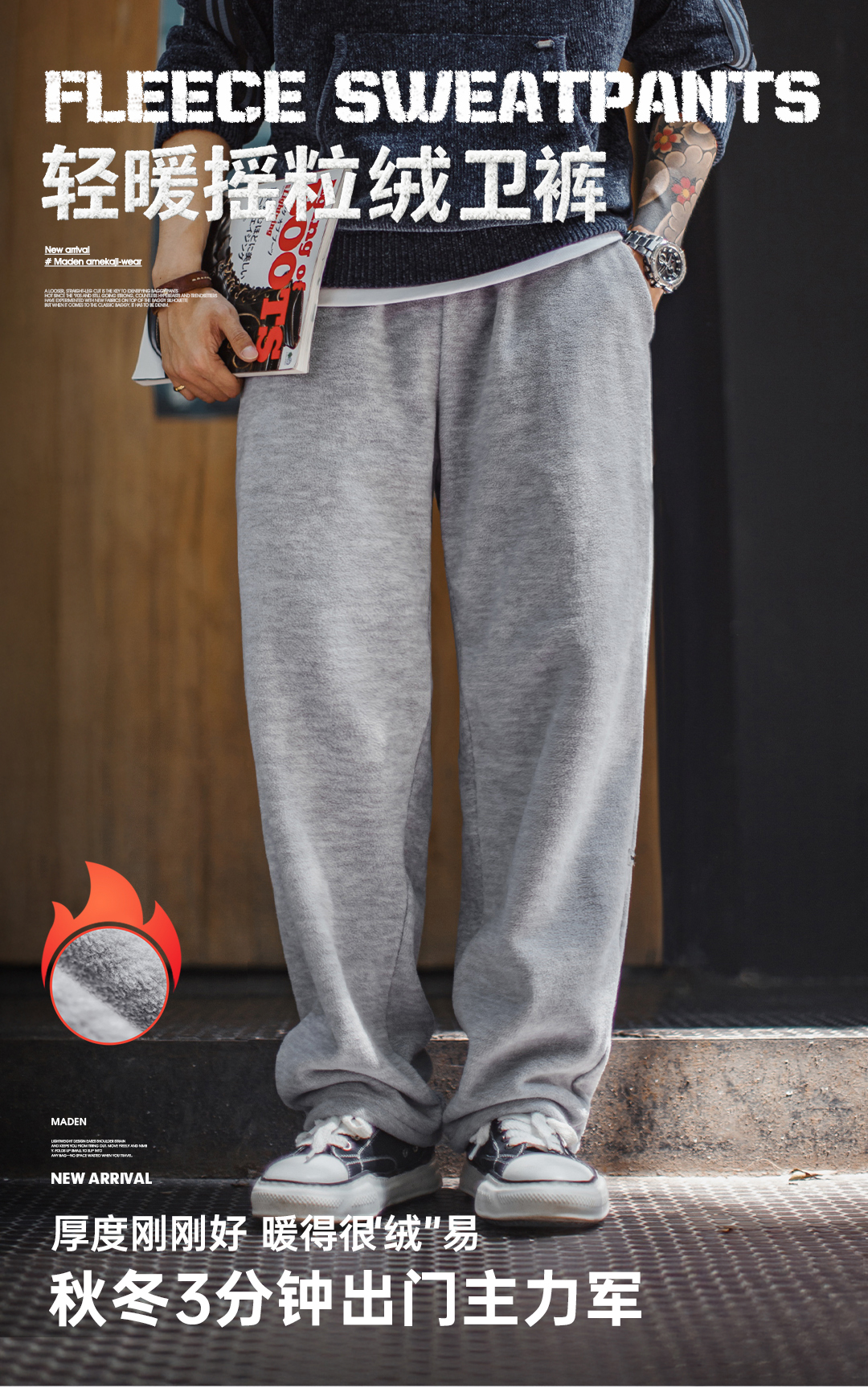 Madden Workwear American Casual High-End Fleece Sweatpants with Added Fleece and Thickened Straight-Leg Jogger Pants for Men in Autumn and Winter