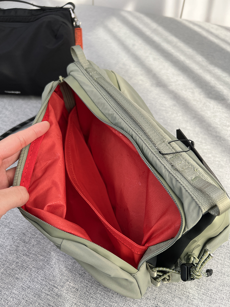 单肩斜挎设计 ,中间隔层可放水杯雨伞