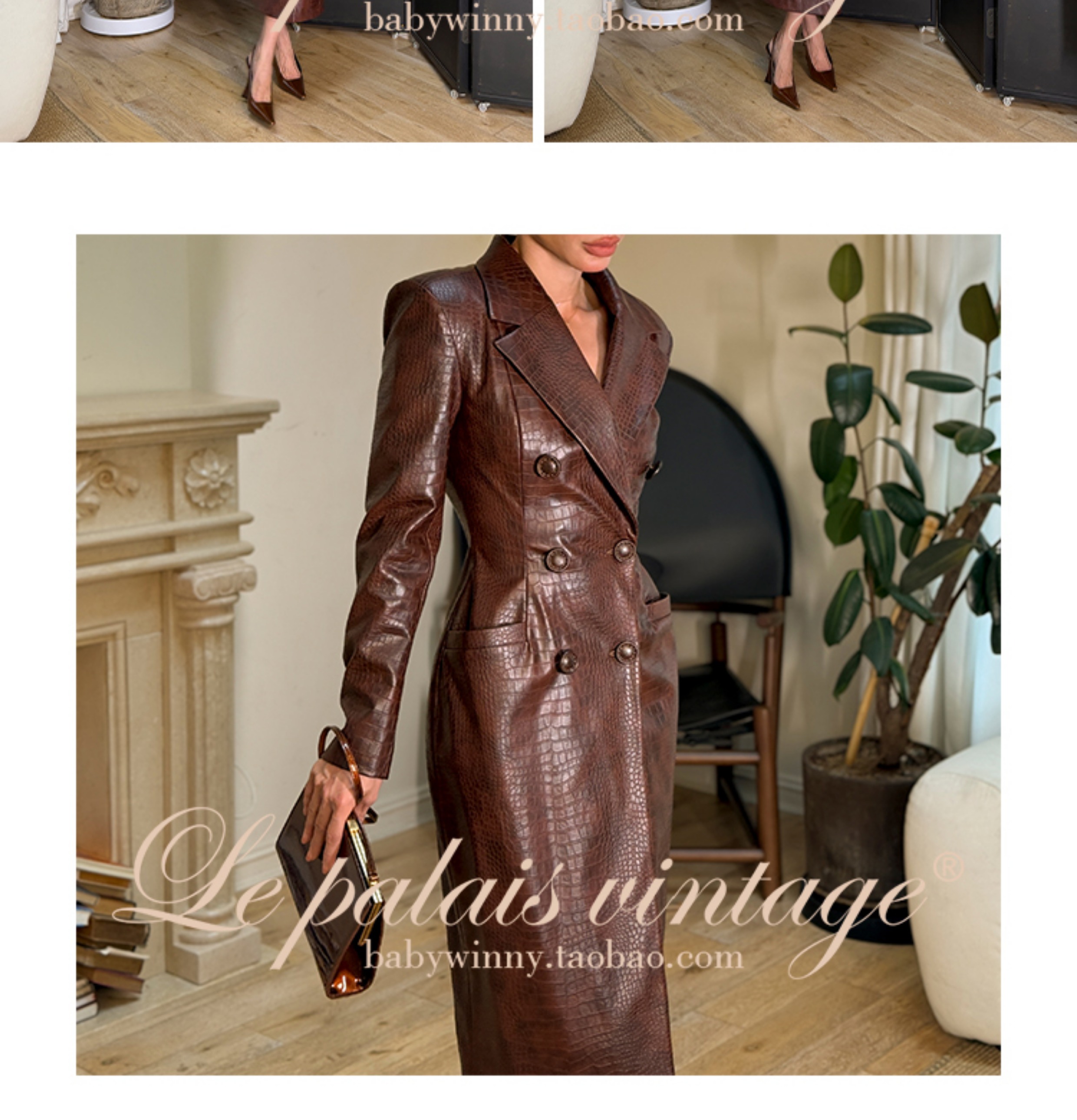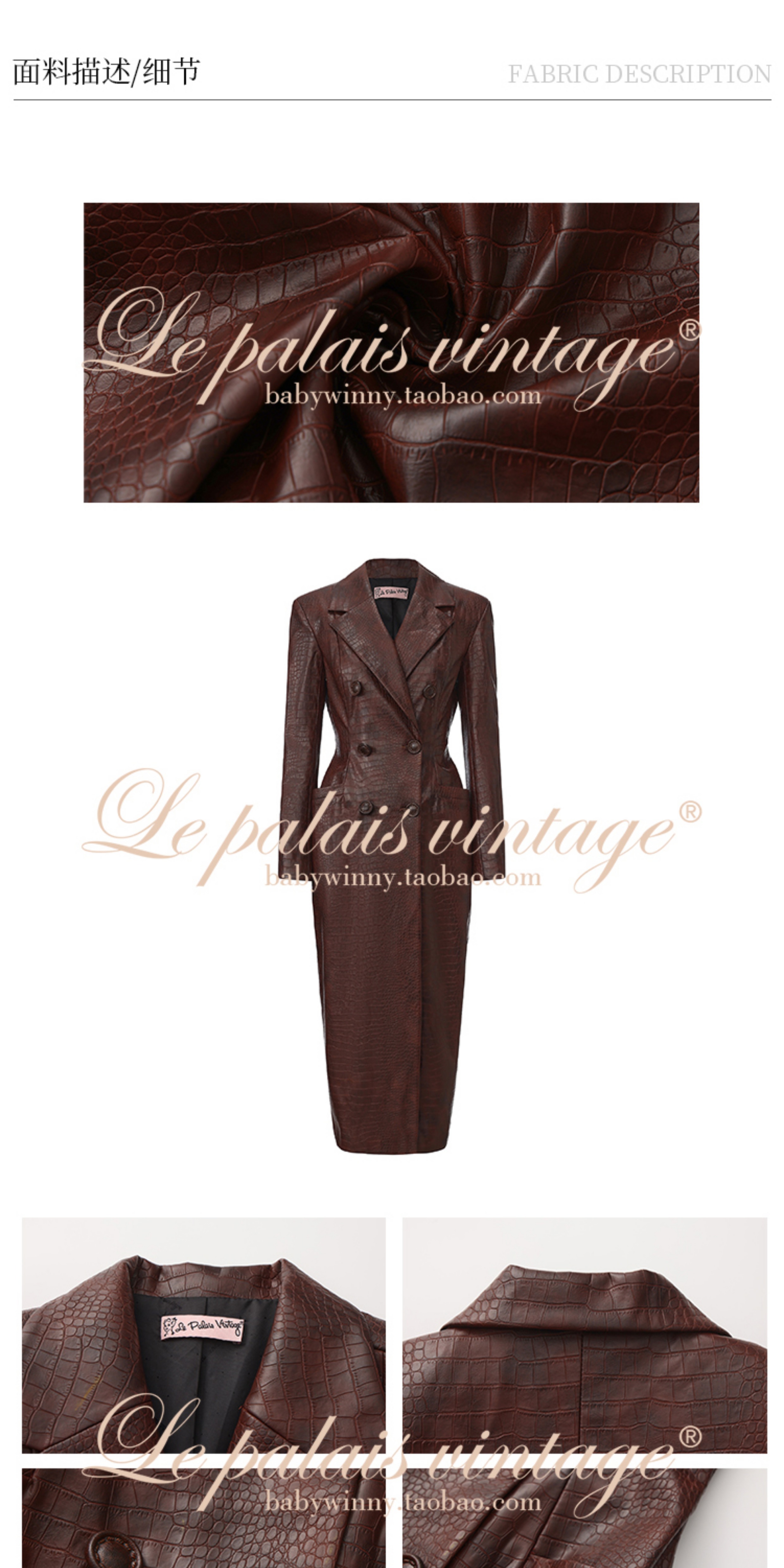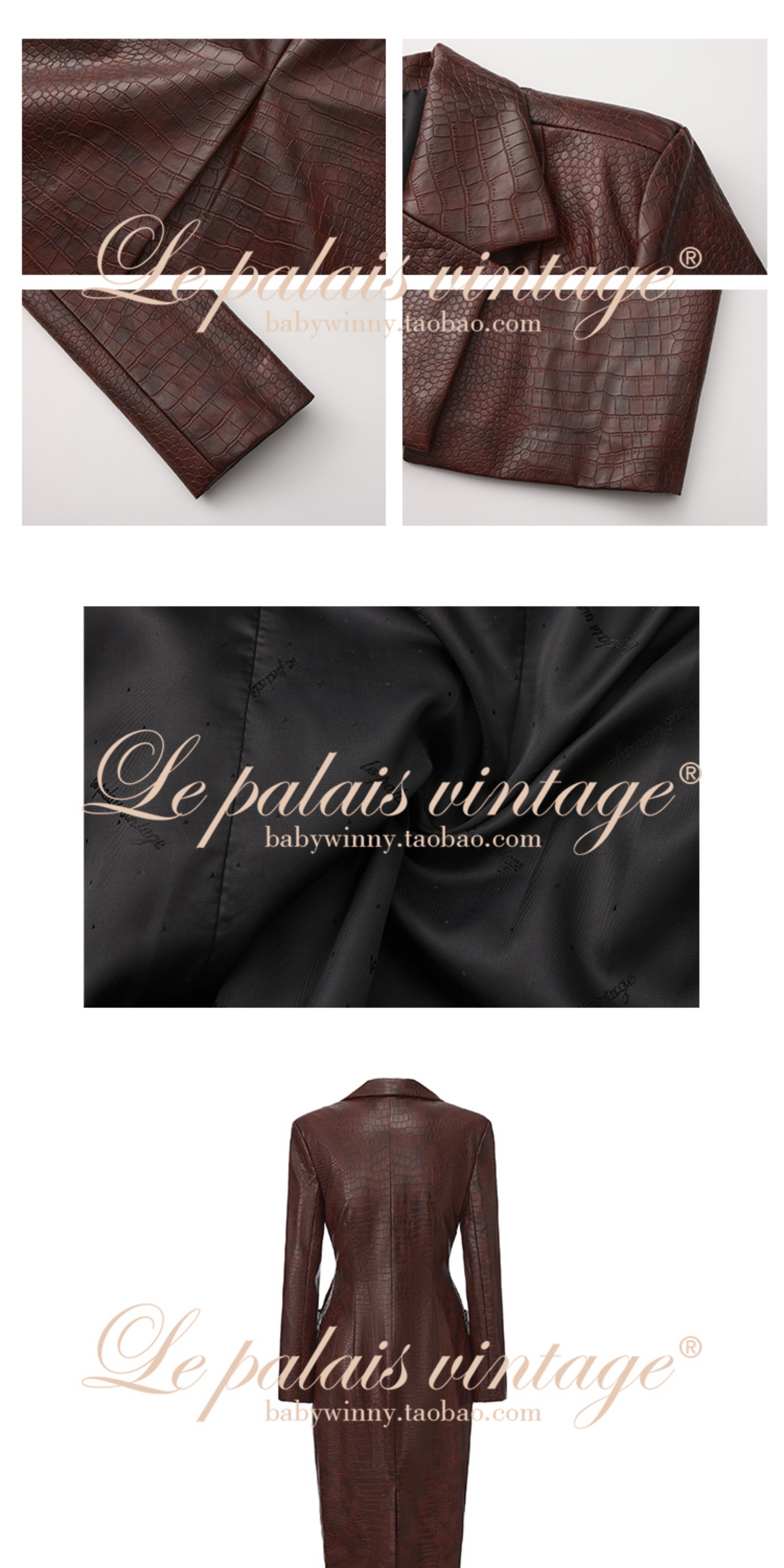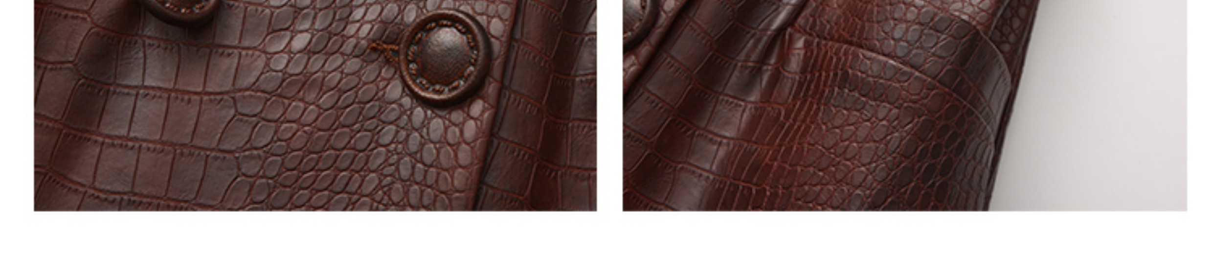 Le Palais Vintage Warm Brown Crocodile Pattern Embossed Pu Leather Slim Fit Jacket