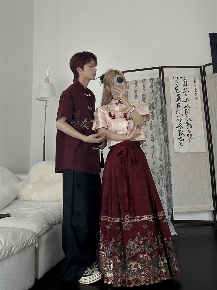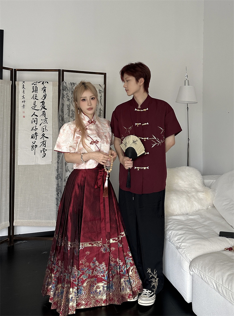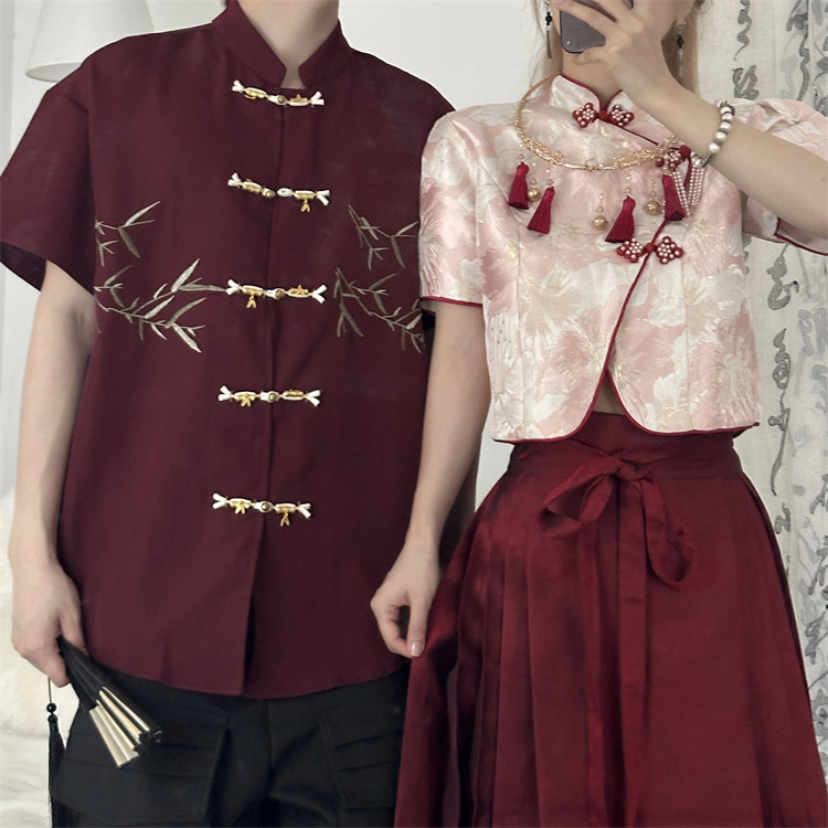 New Chinese-Style Couple Outfits Summer 2026 New Red Hanfu Tang Suit Engagement Short-Sleeved Shirt National Style Suit for Men and Women