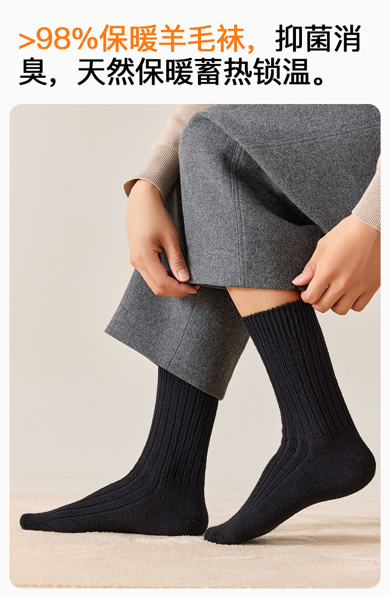 [98% Merino Wool] Men's Winter Warm Mid-Calf Socks, Odor-Resistant, Sweat-Absorbent, Thickened for Cold Temperatures in Northeast