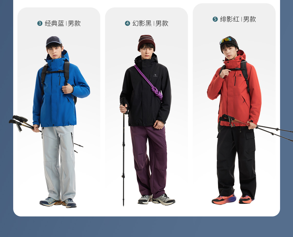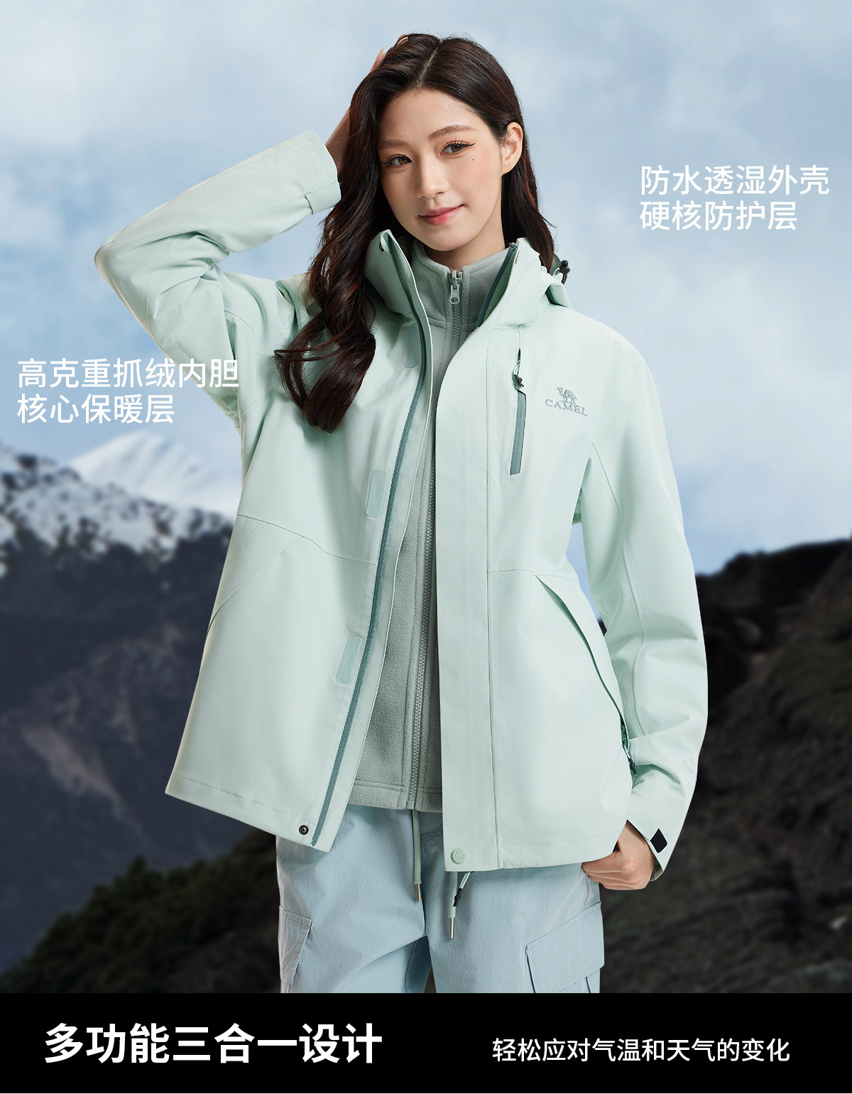 Camel 3514Pro Jacket for Men and Women, 3-in-1 Fleece Two-Piece Set, Waterproof and Rainproof Mountaineering Jacket