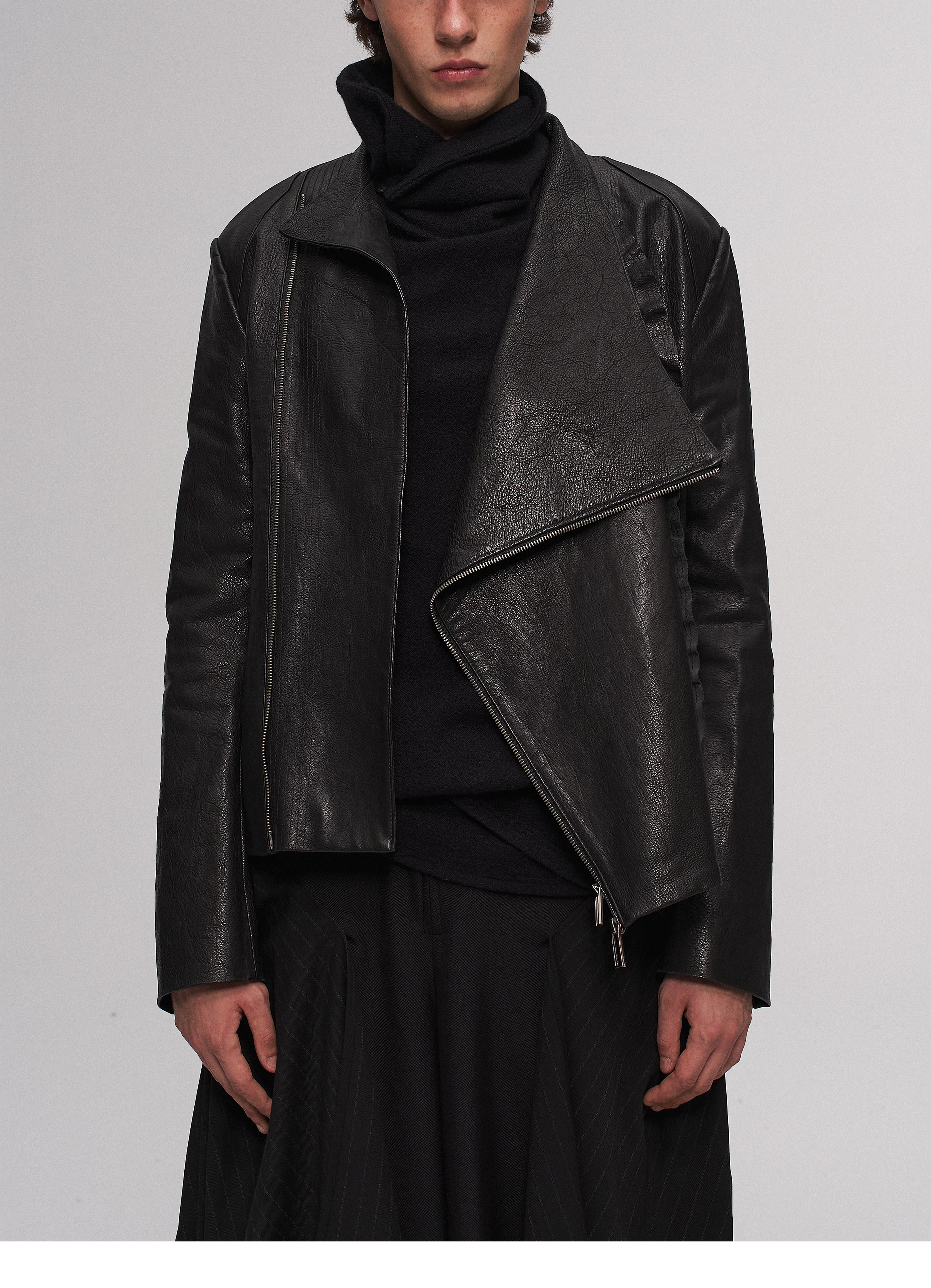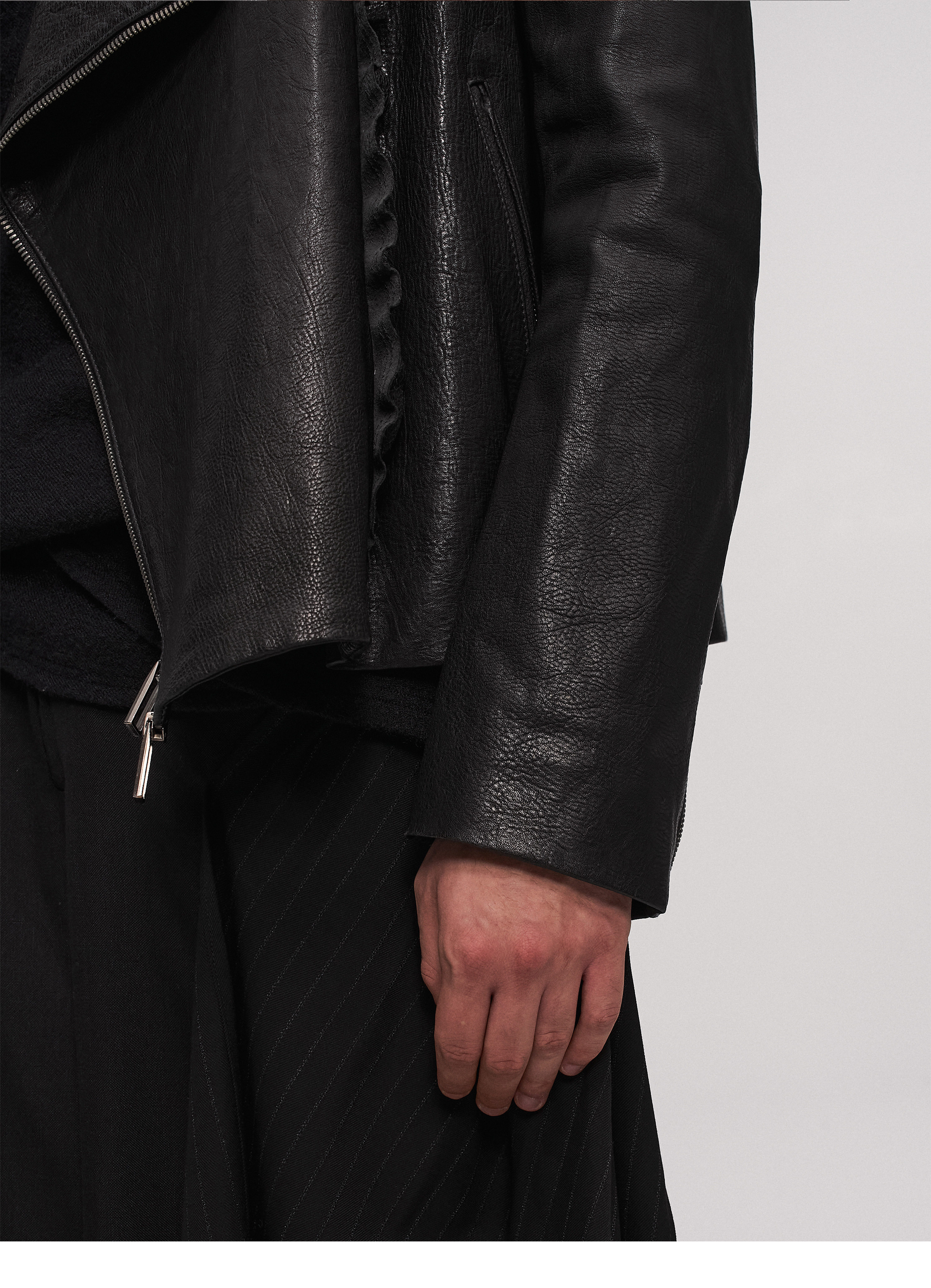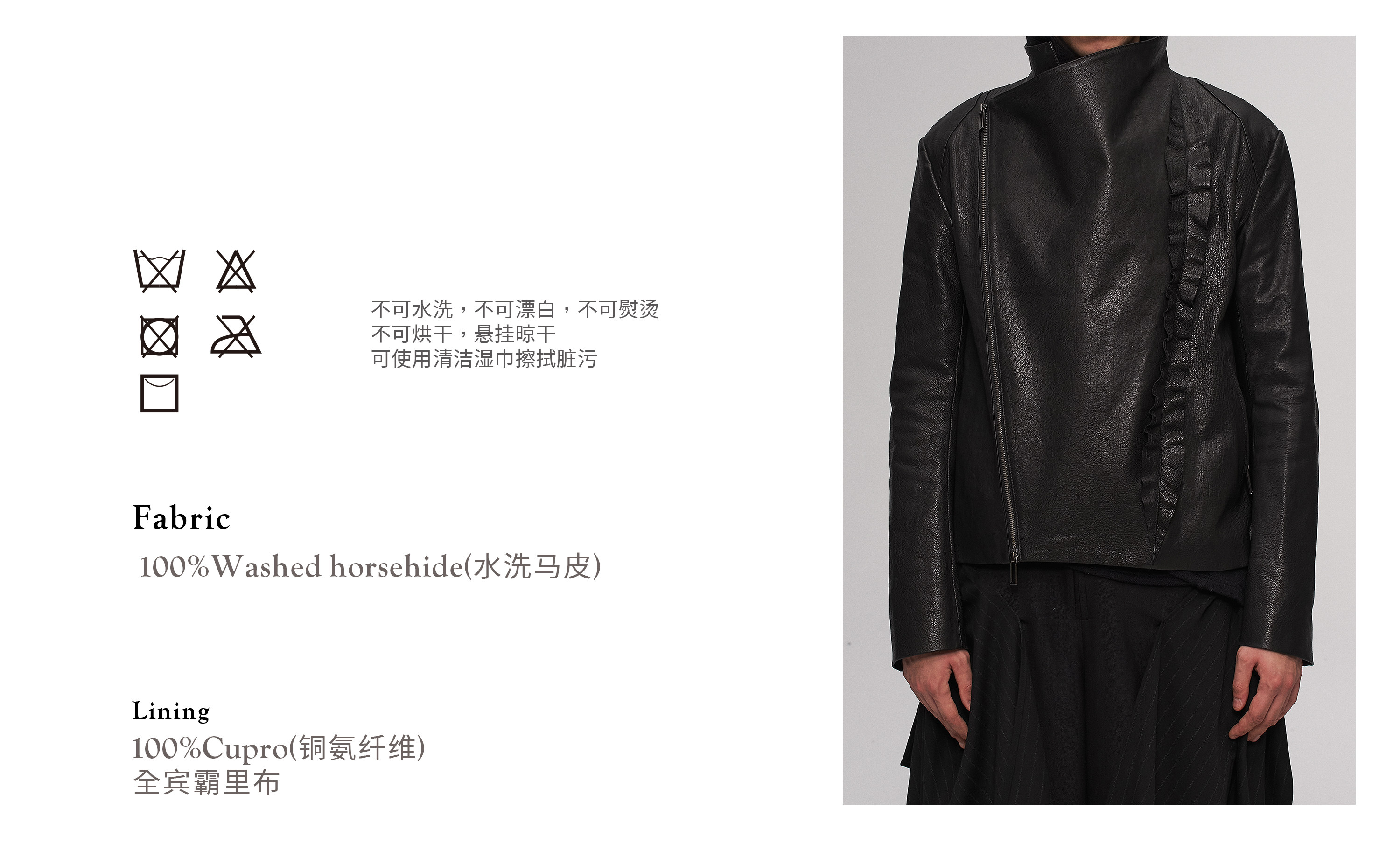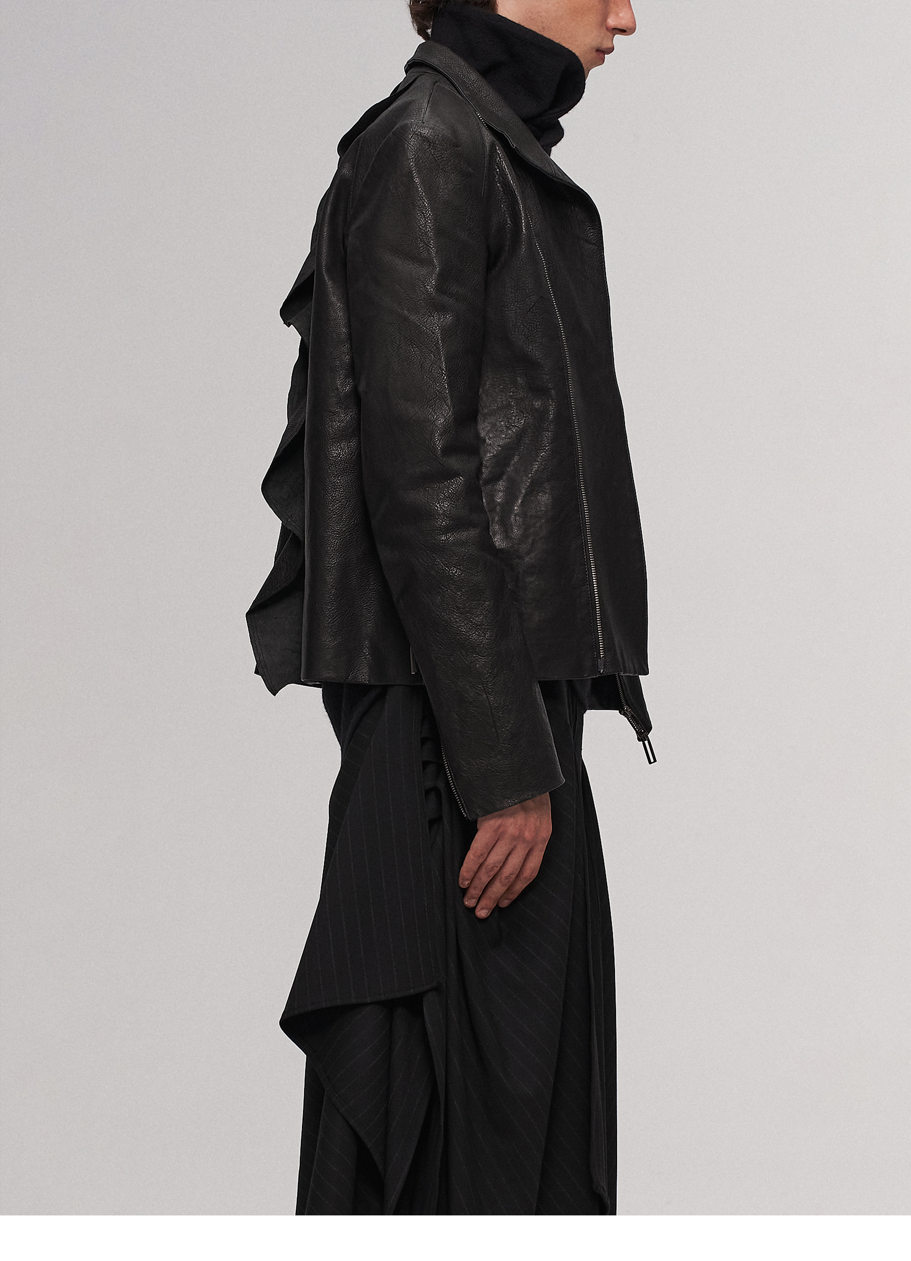 "Ilnya" Black Lace Jacket, Washed Horsehide Leather Jacket with Lace Trim