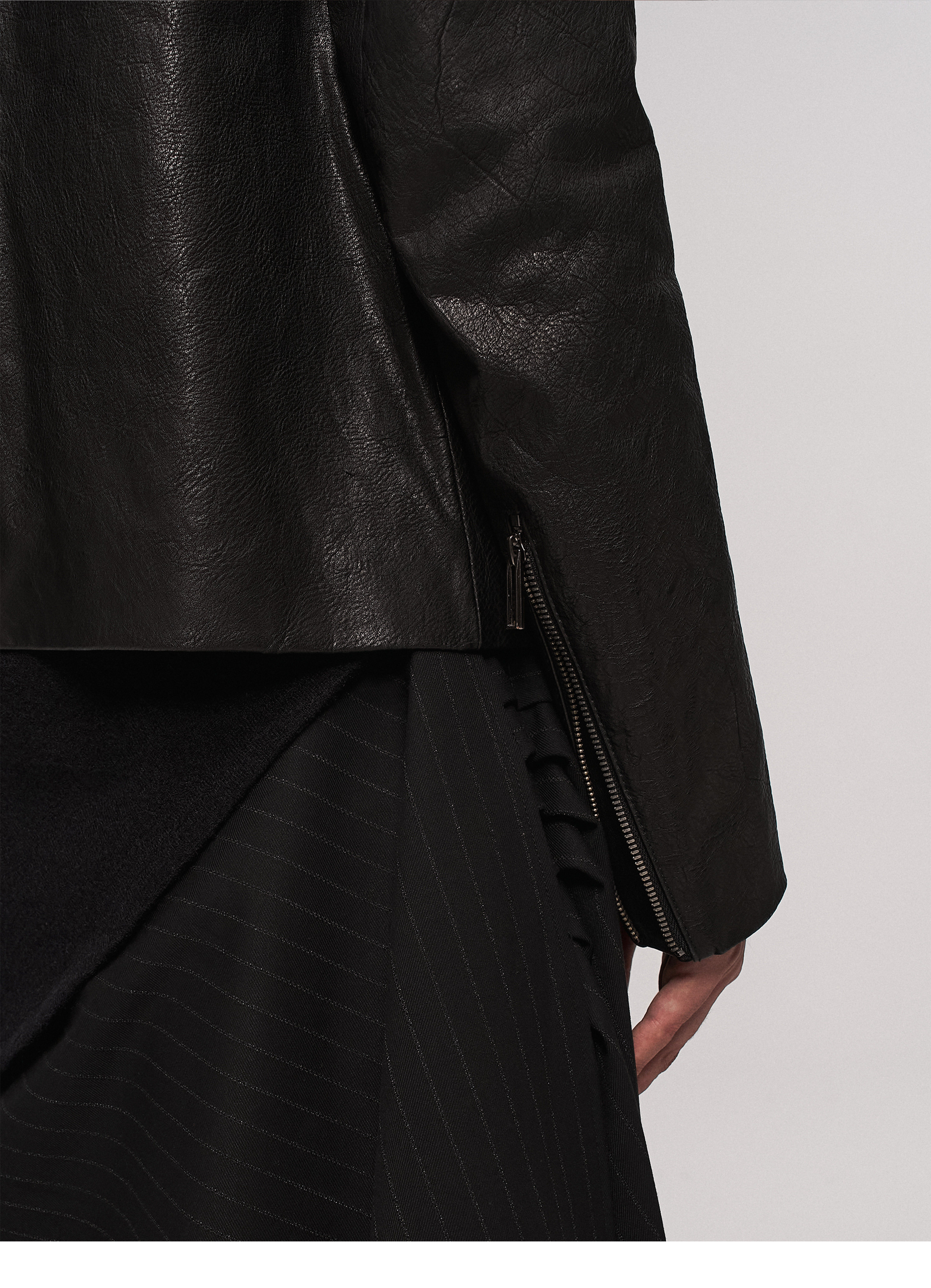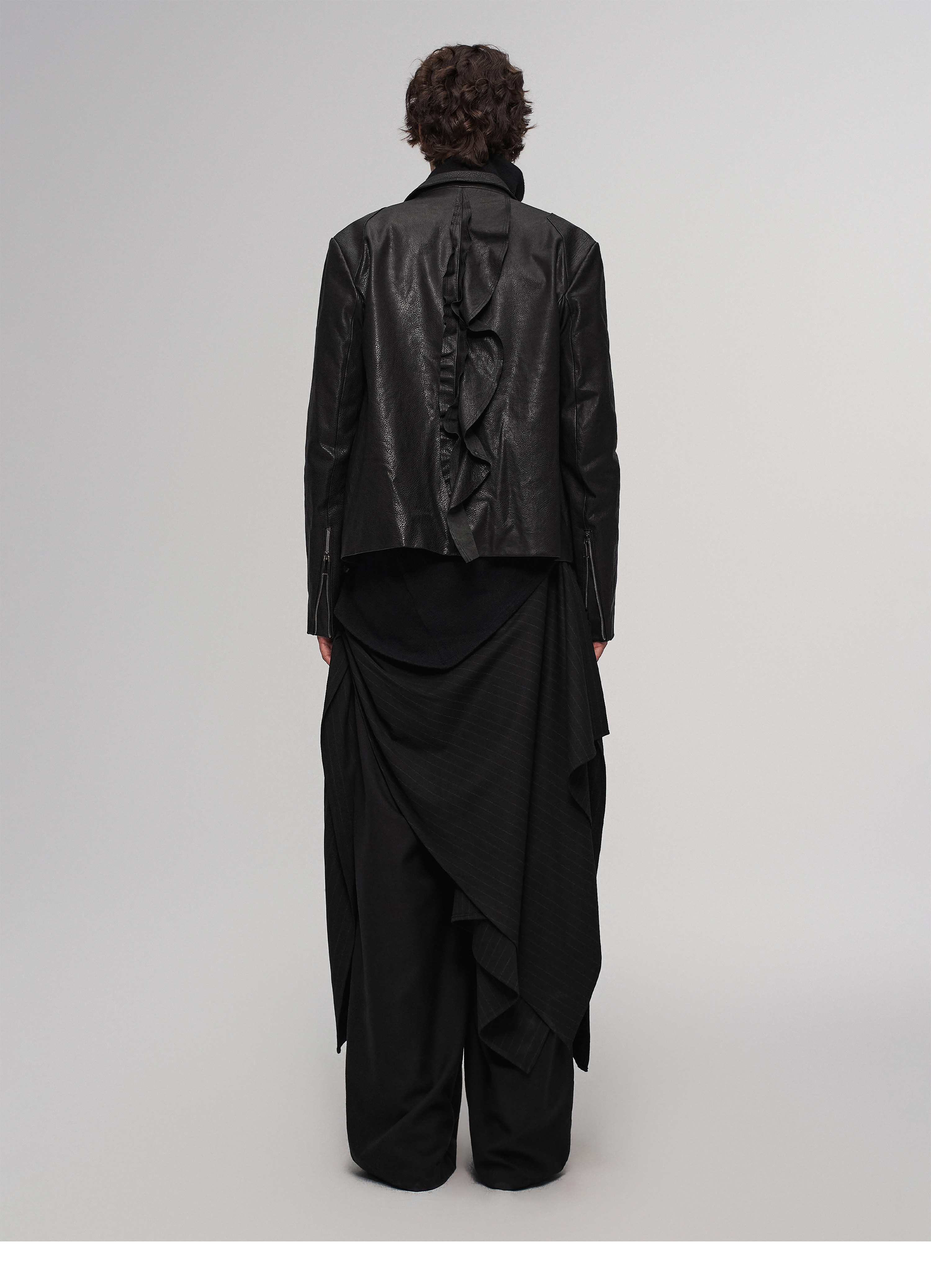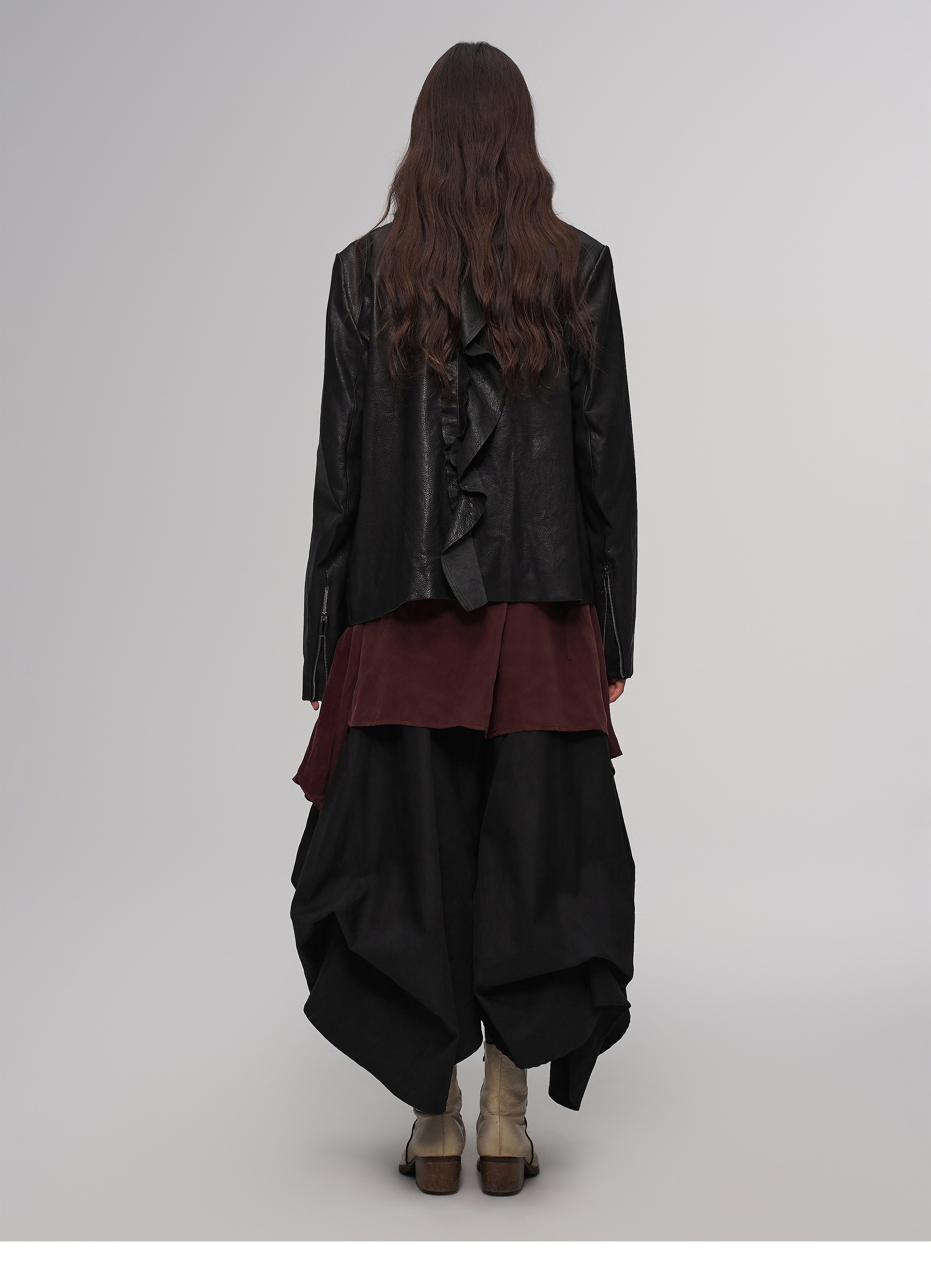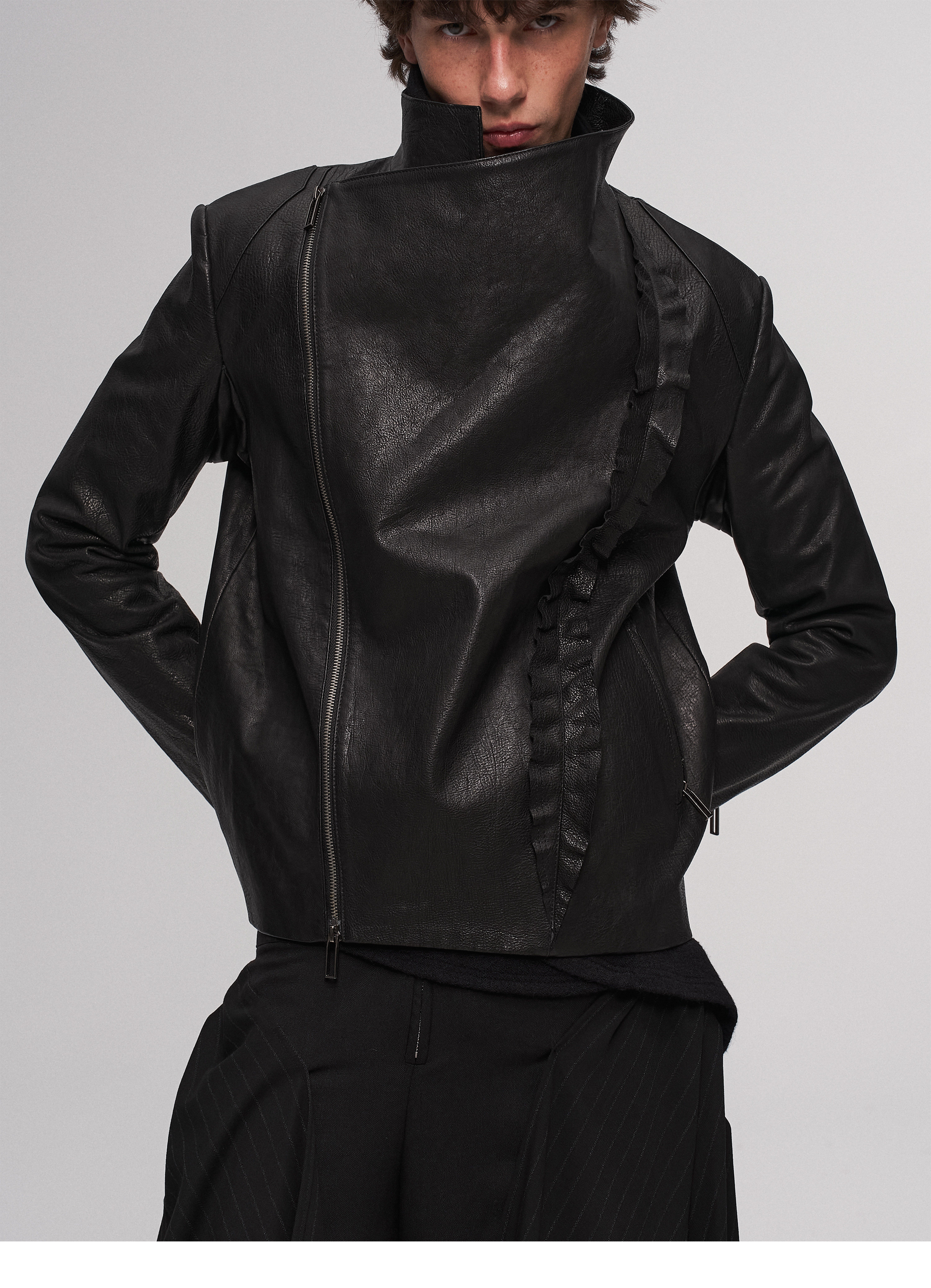"Ilnya" Black Lace Jacket, Washed Horsehide Leather Jacket with Lace Trim