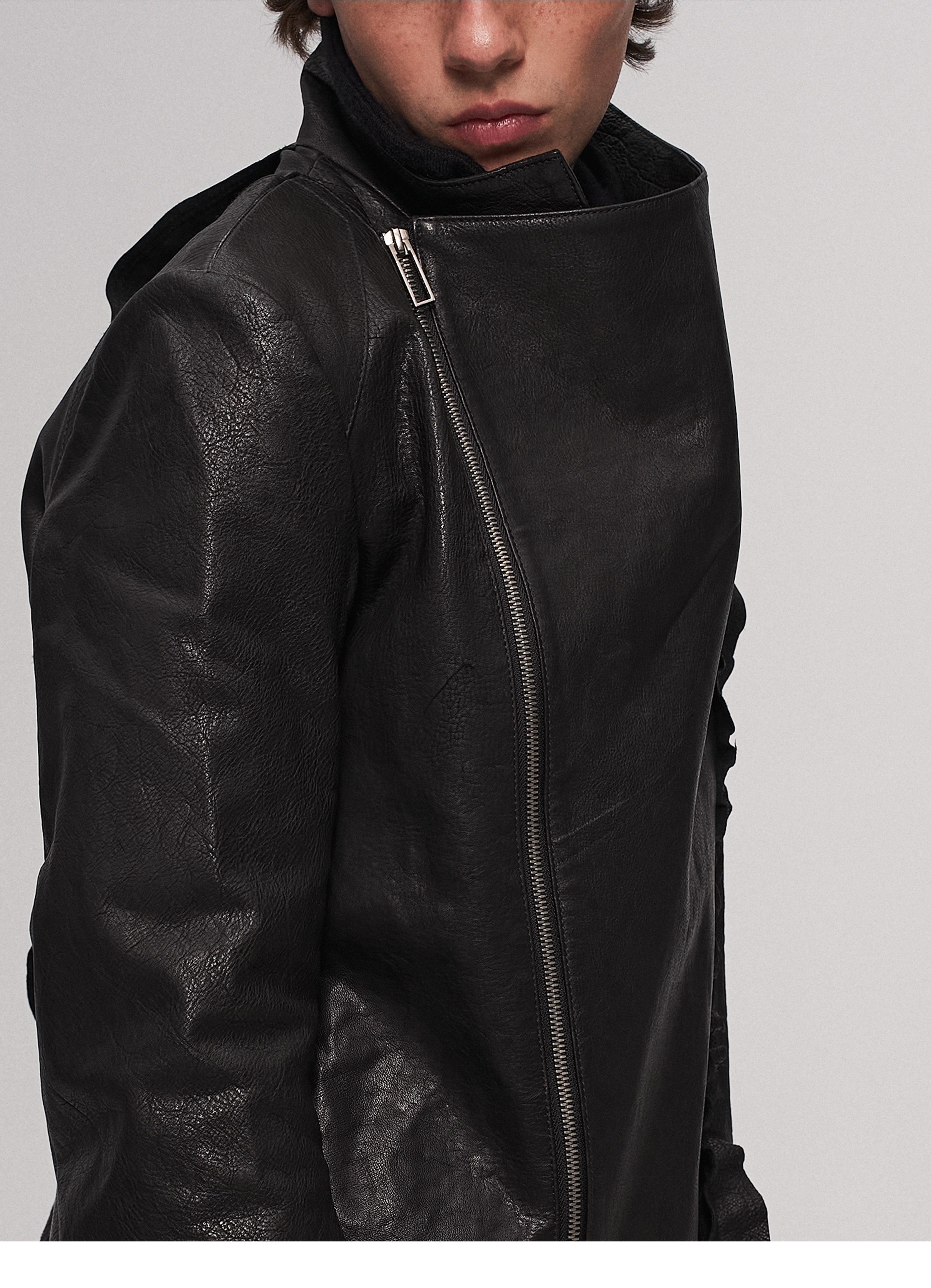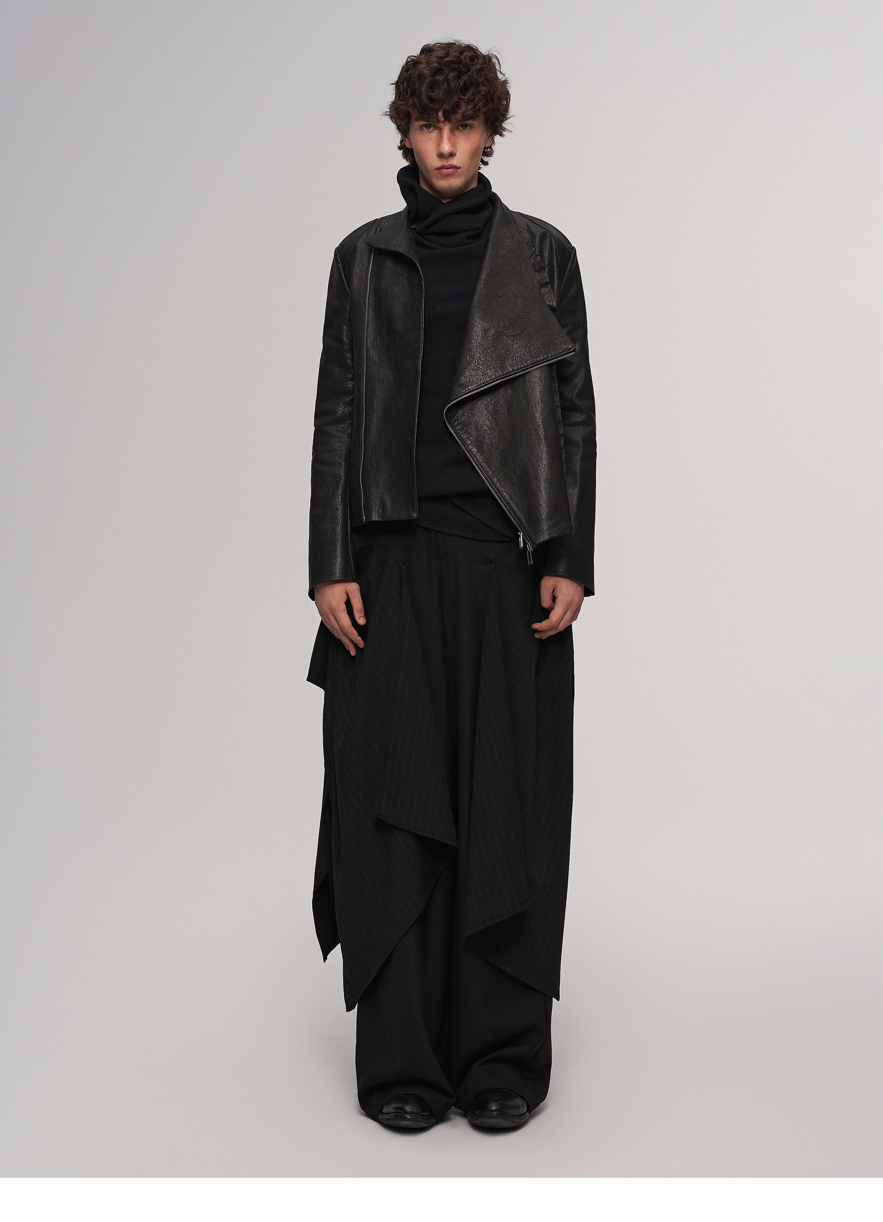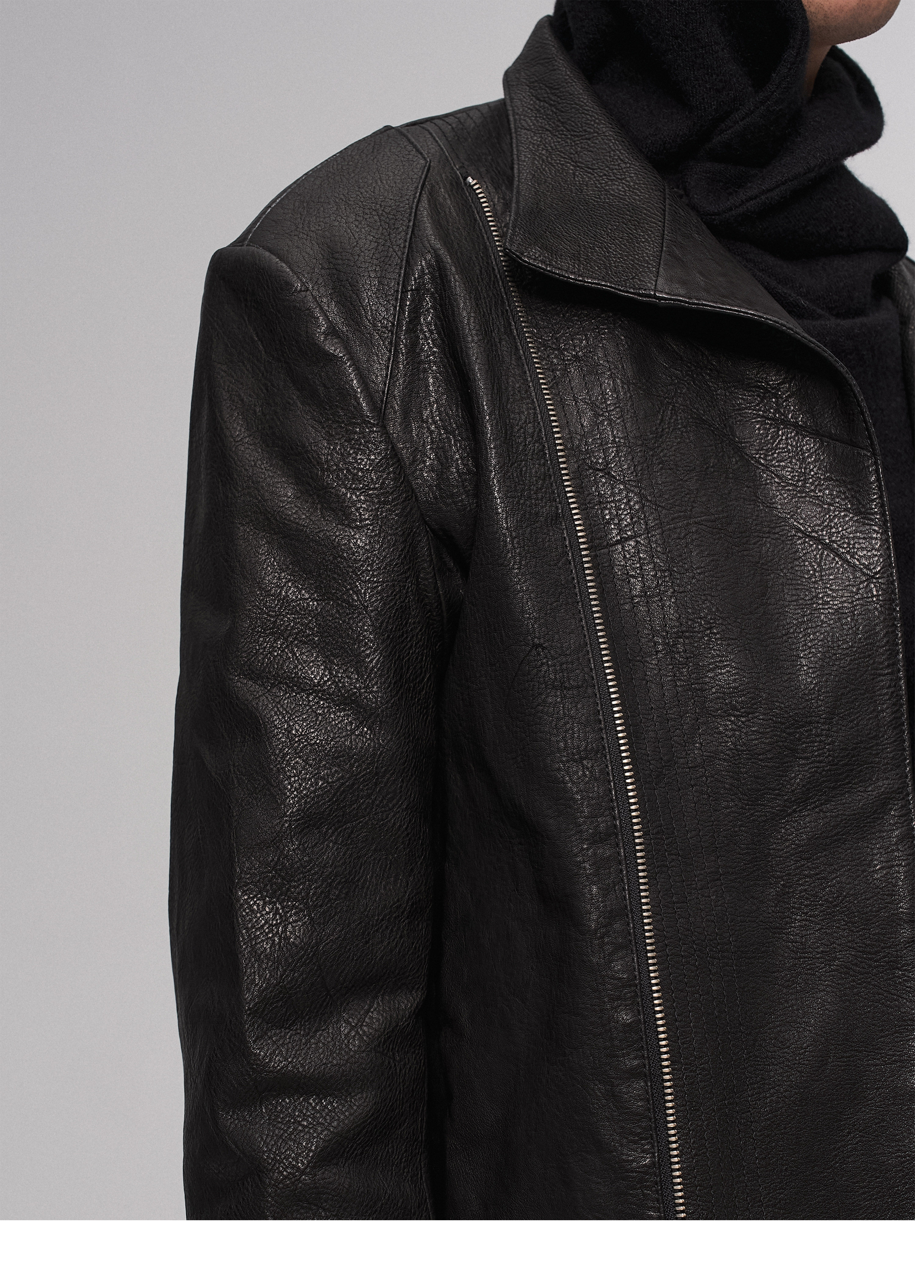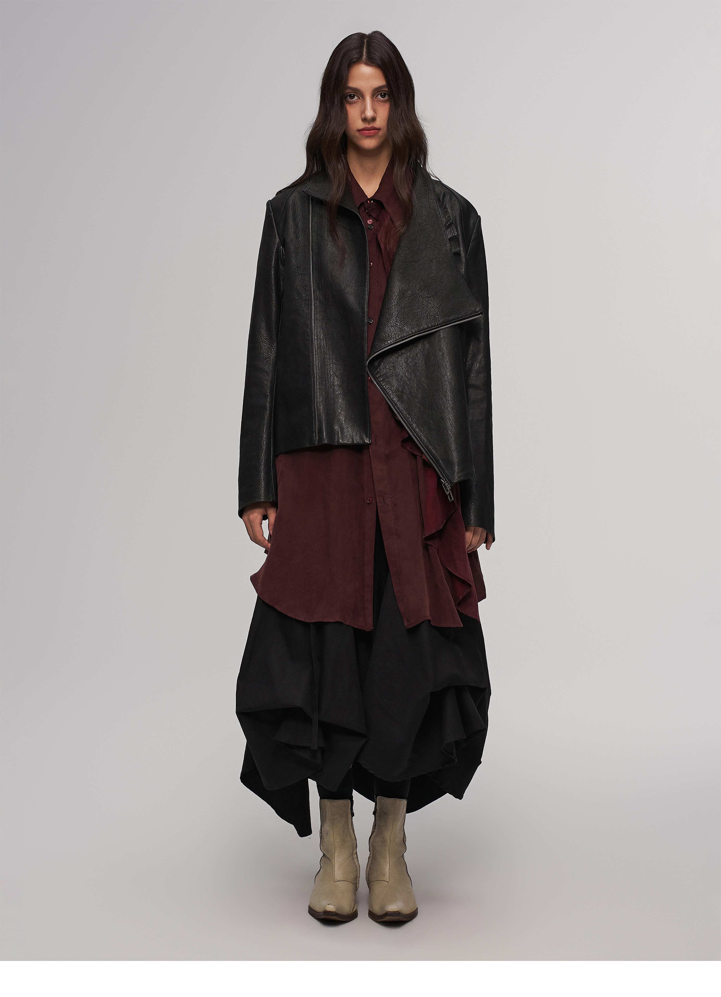 "Ilnya" Black Lace Jacket, Washed Horsehide Leather Jacket with Lace Trim