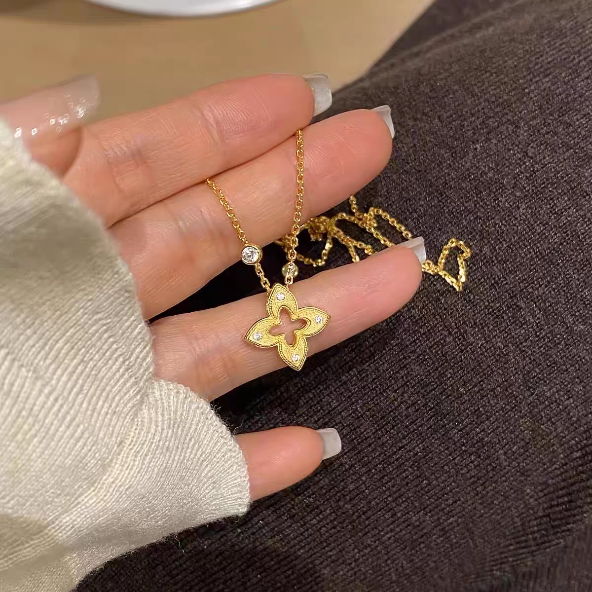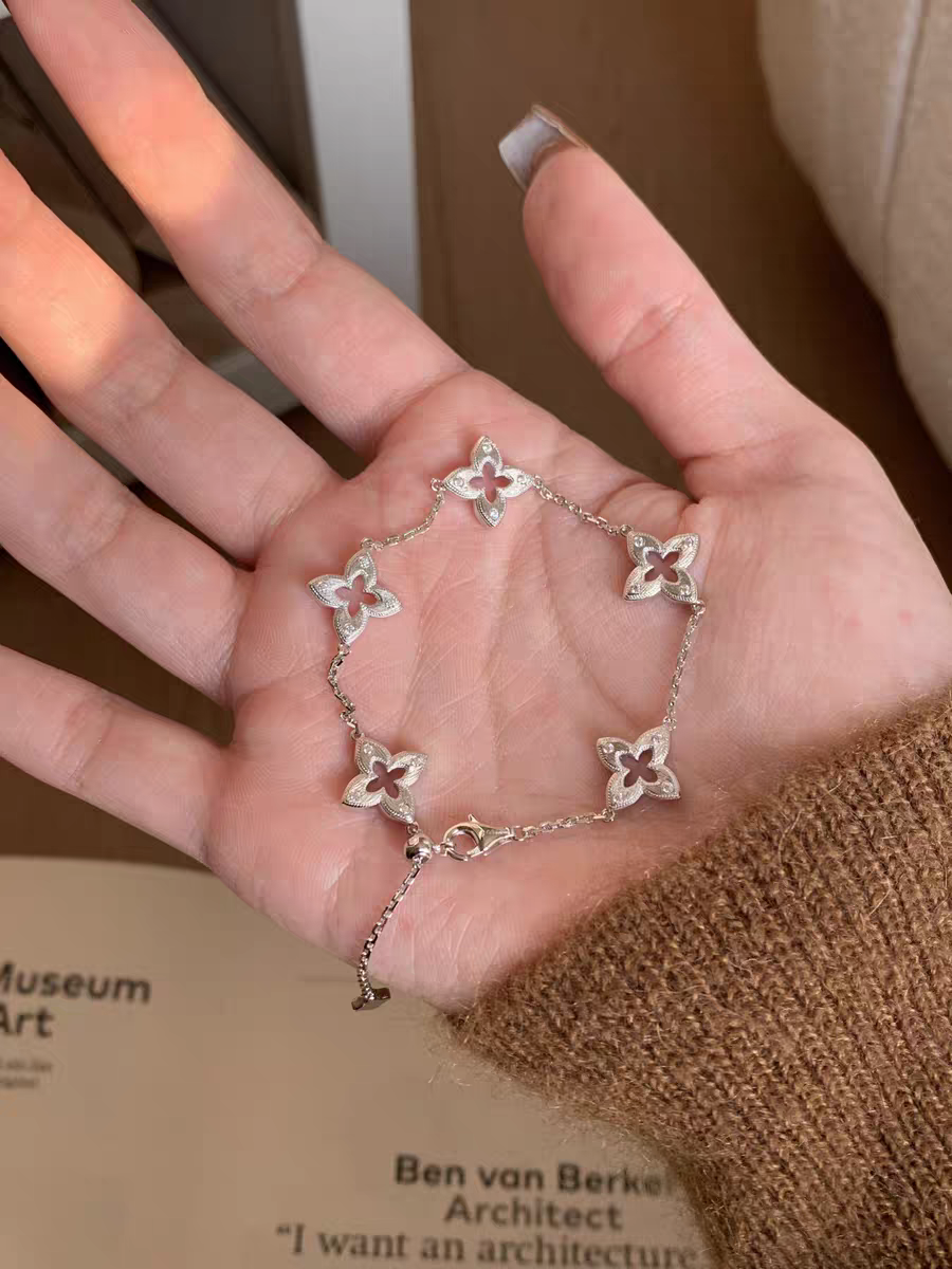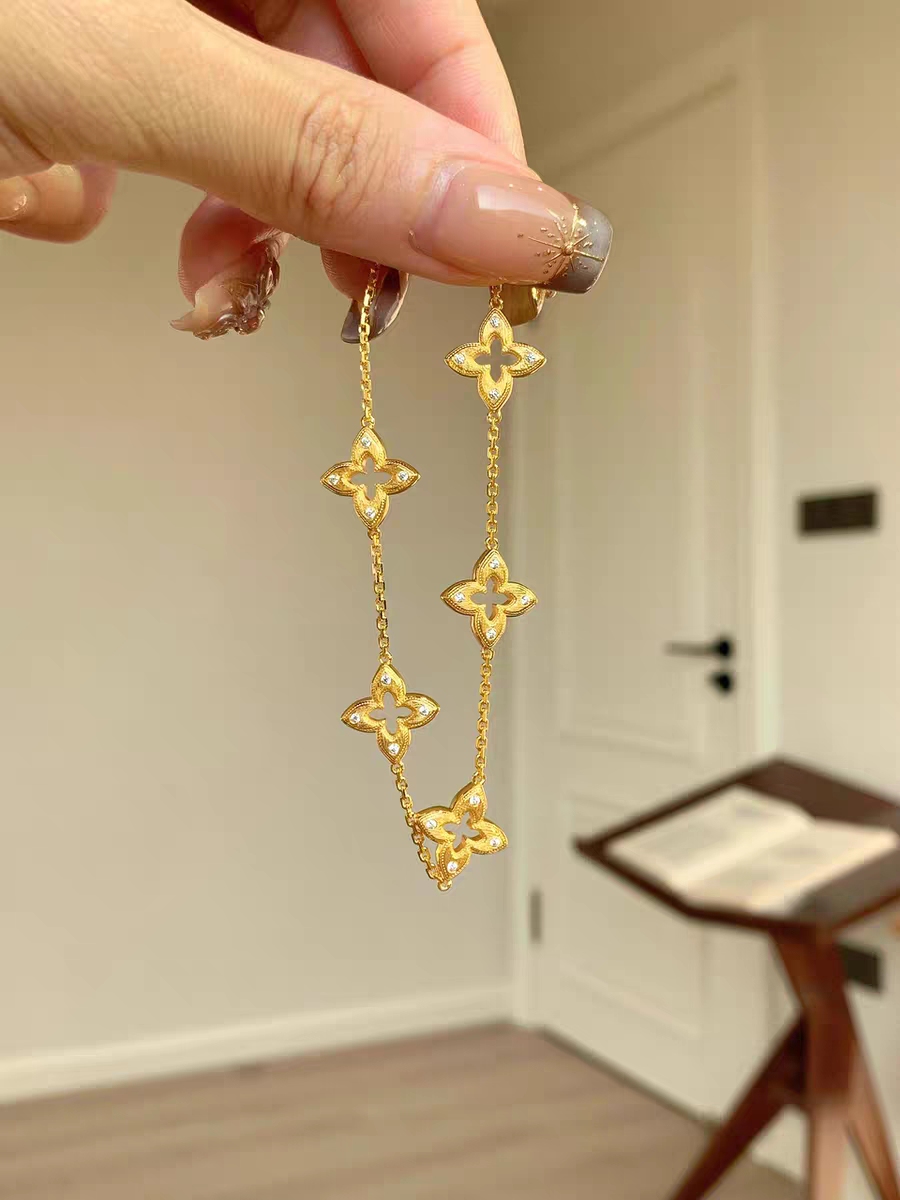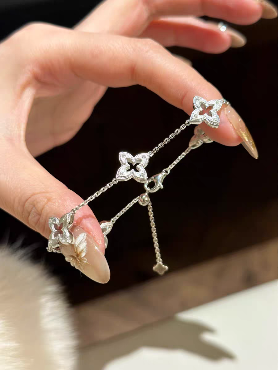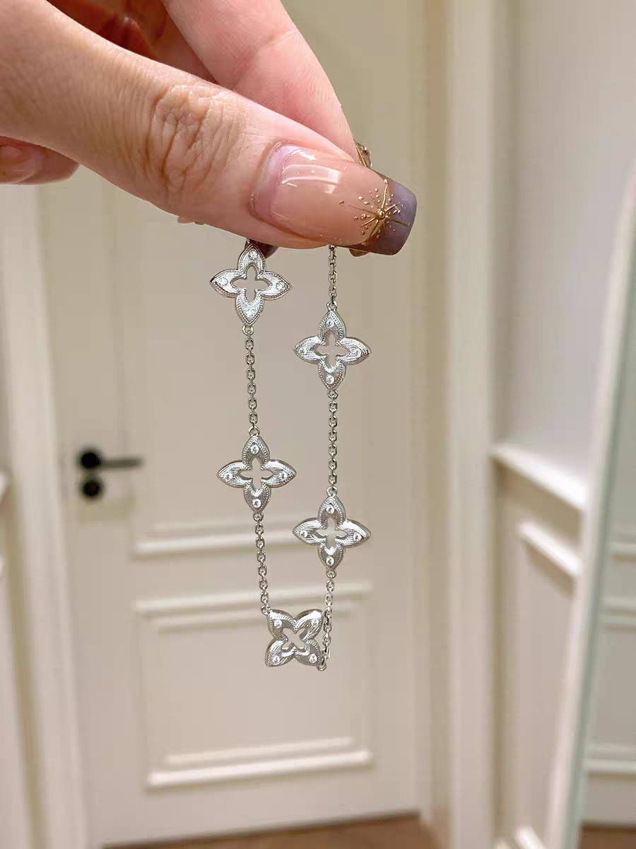 S925 Sterling Silver! Lucky Four-Leaf Clover Necklace, Bracelet, and Earrings with Vintage Brushed Craftsmanship, Light Luxury Versatile Sterling Silver Set