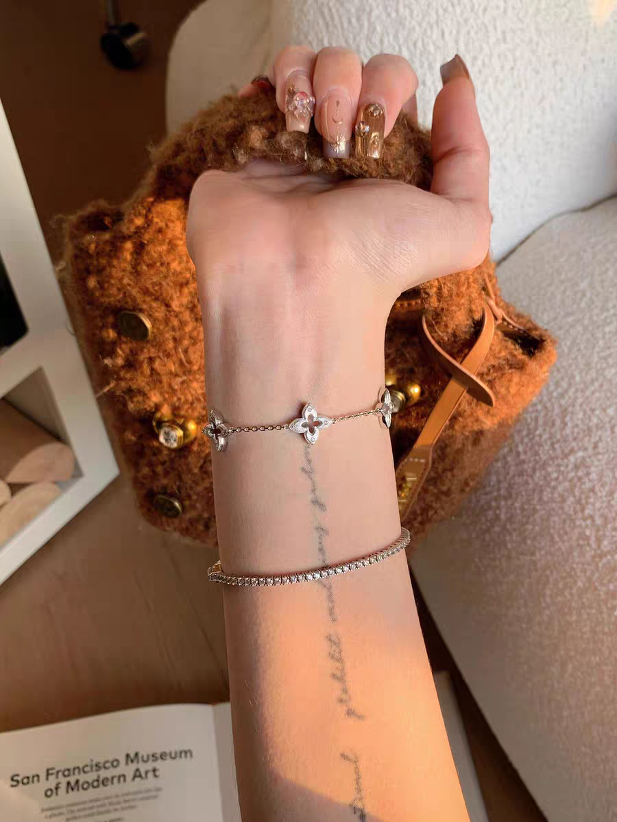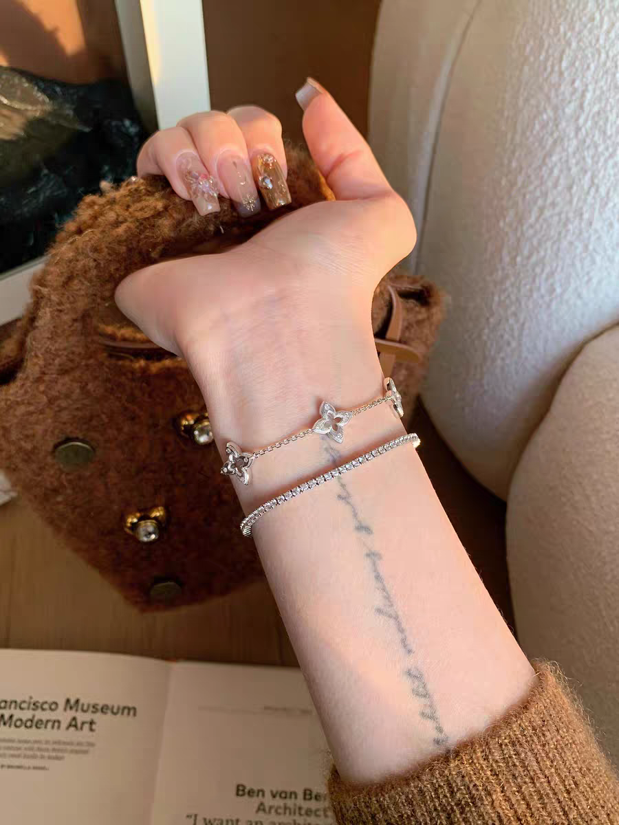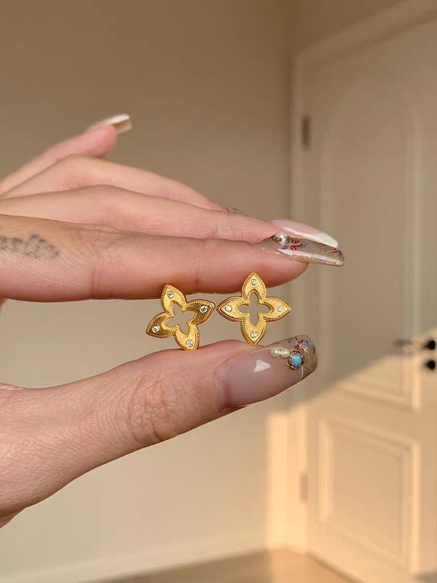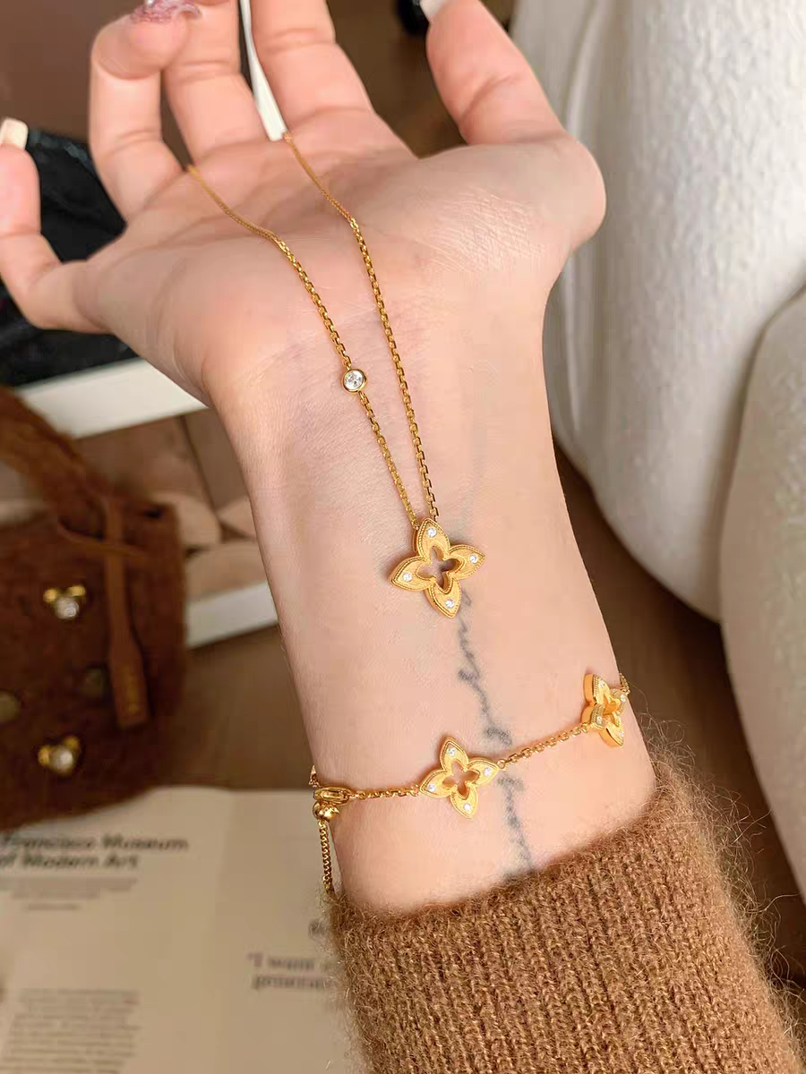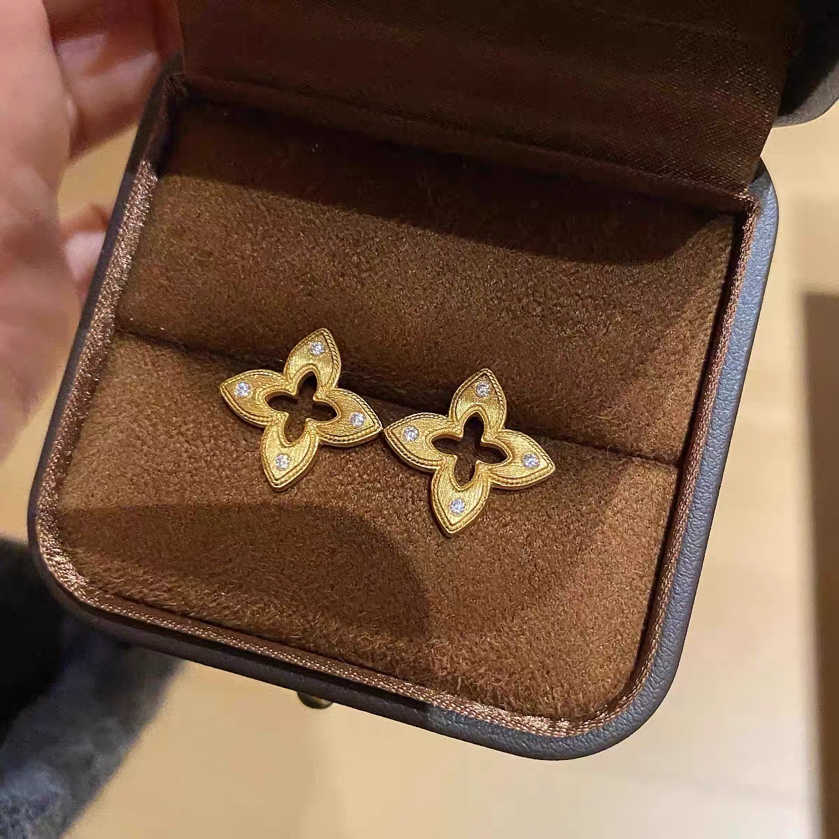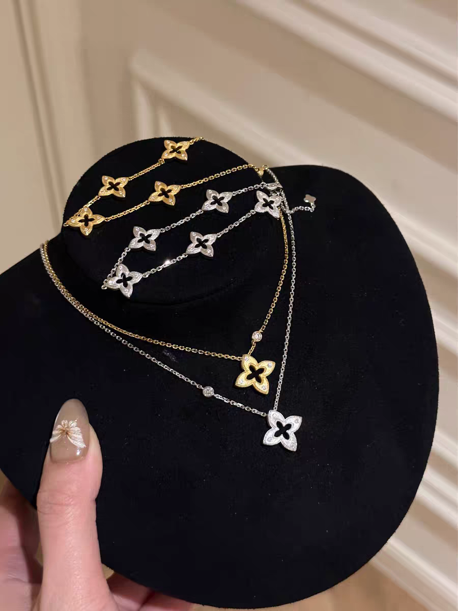 S925 Sterling Silver! Lucky Four-Leaf Clover Necklace, Bracelet, and Earrings with Vintage Brushed Craftsmanship, Light Luxury Versatile Sterling Silver Set
