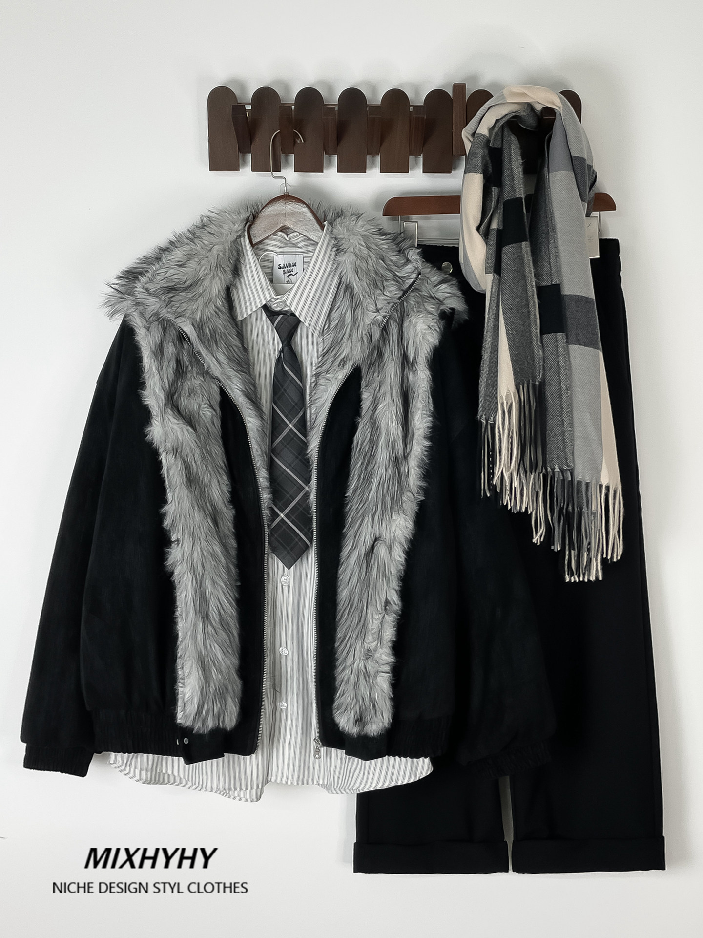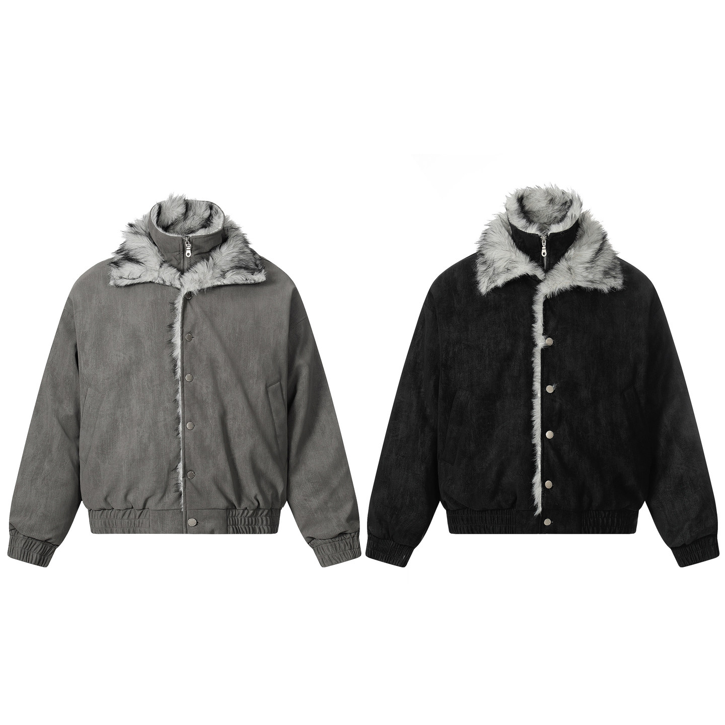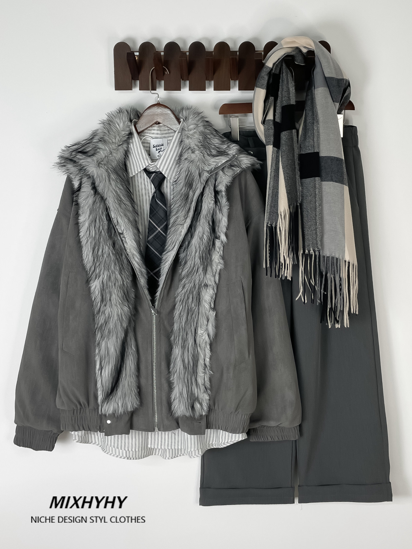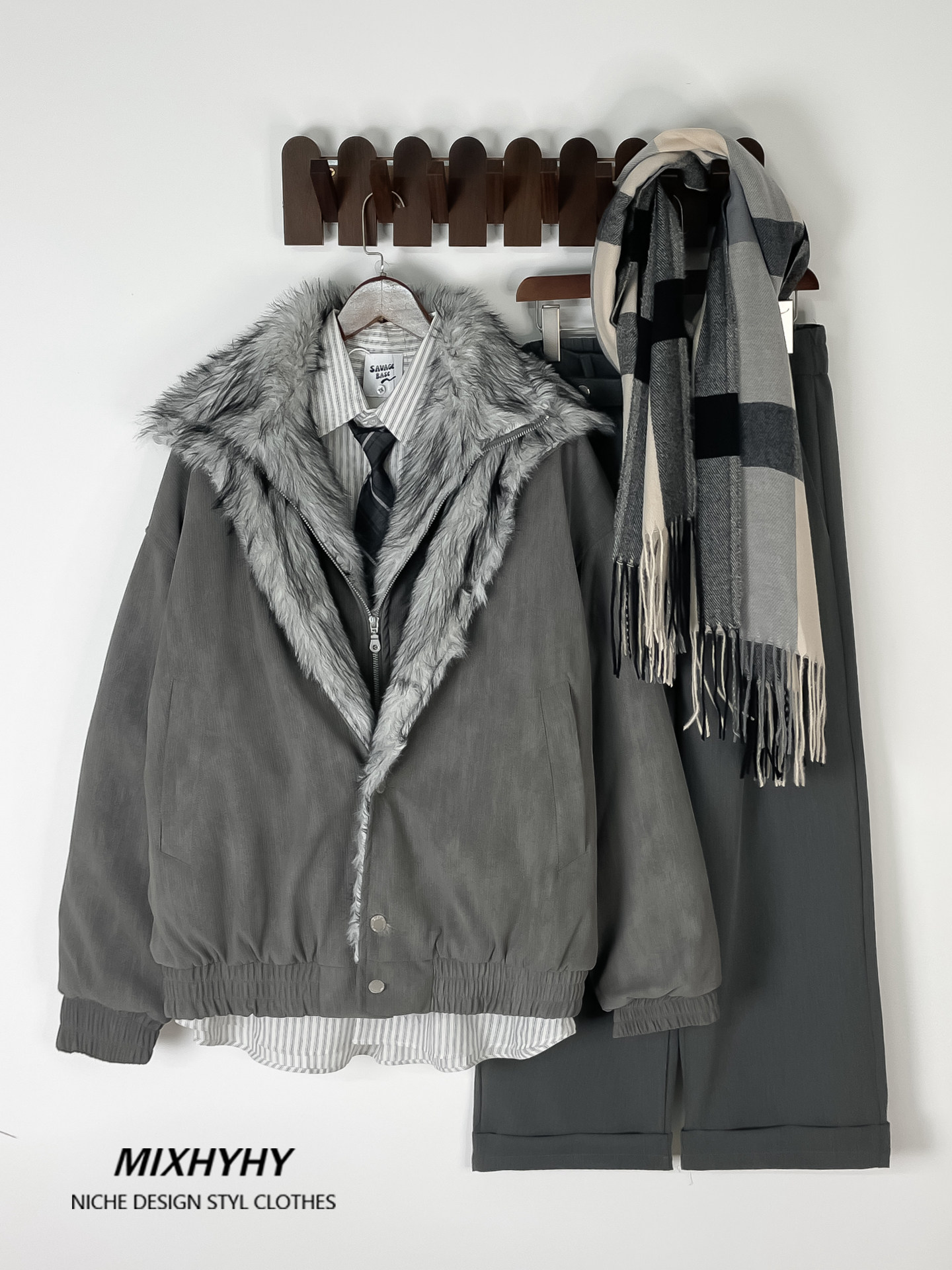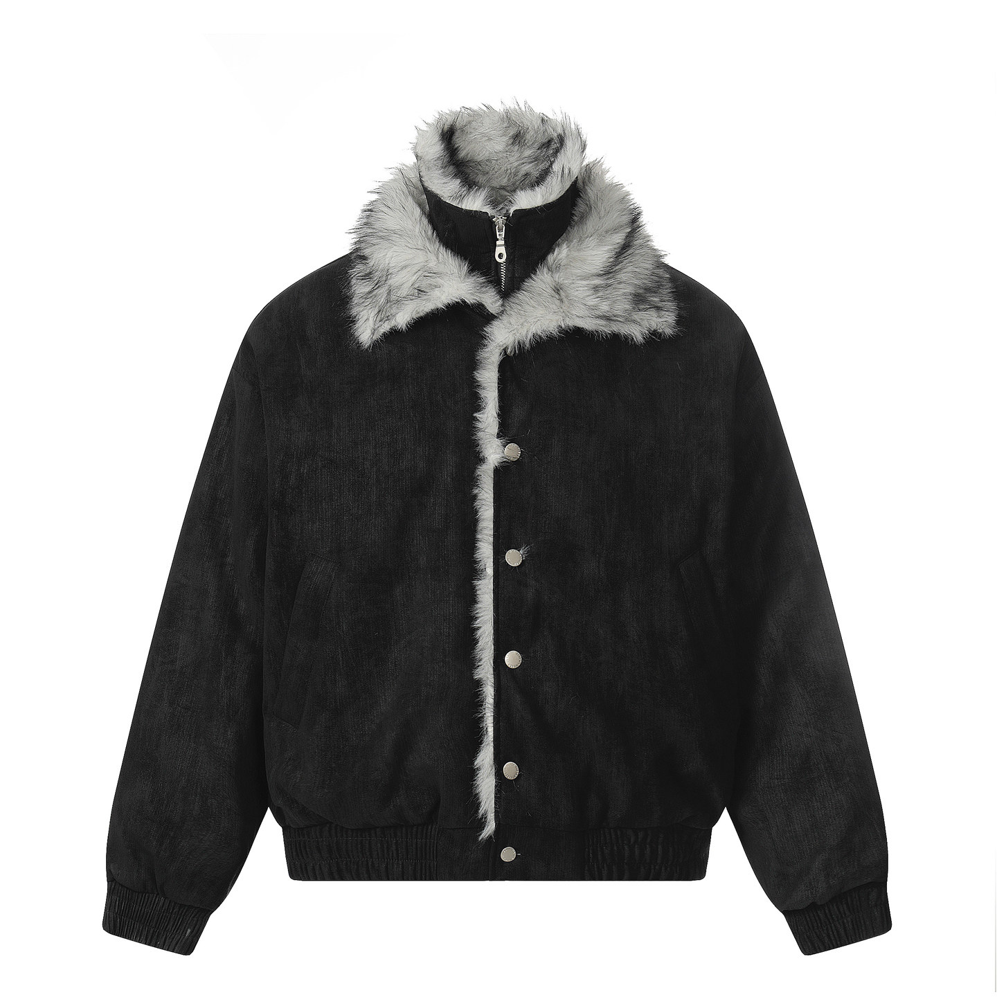 Mixhyhy American Retro Double-Layer Fur Collar Padded Cotton Jacket for Men, Winter Thickened Warm Parka Short Coat