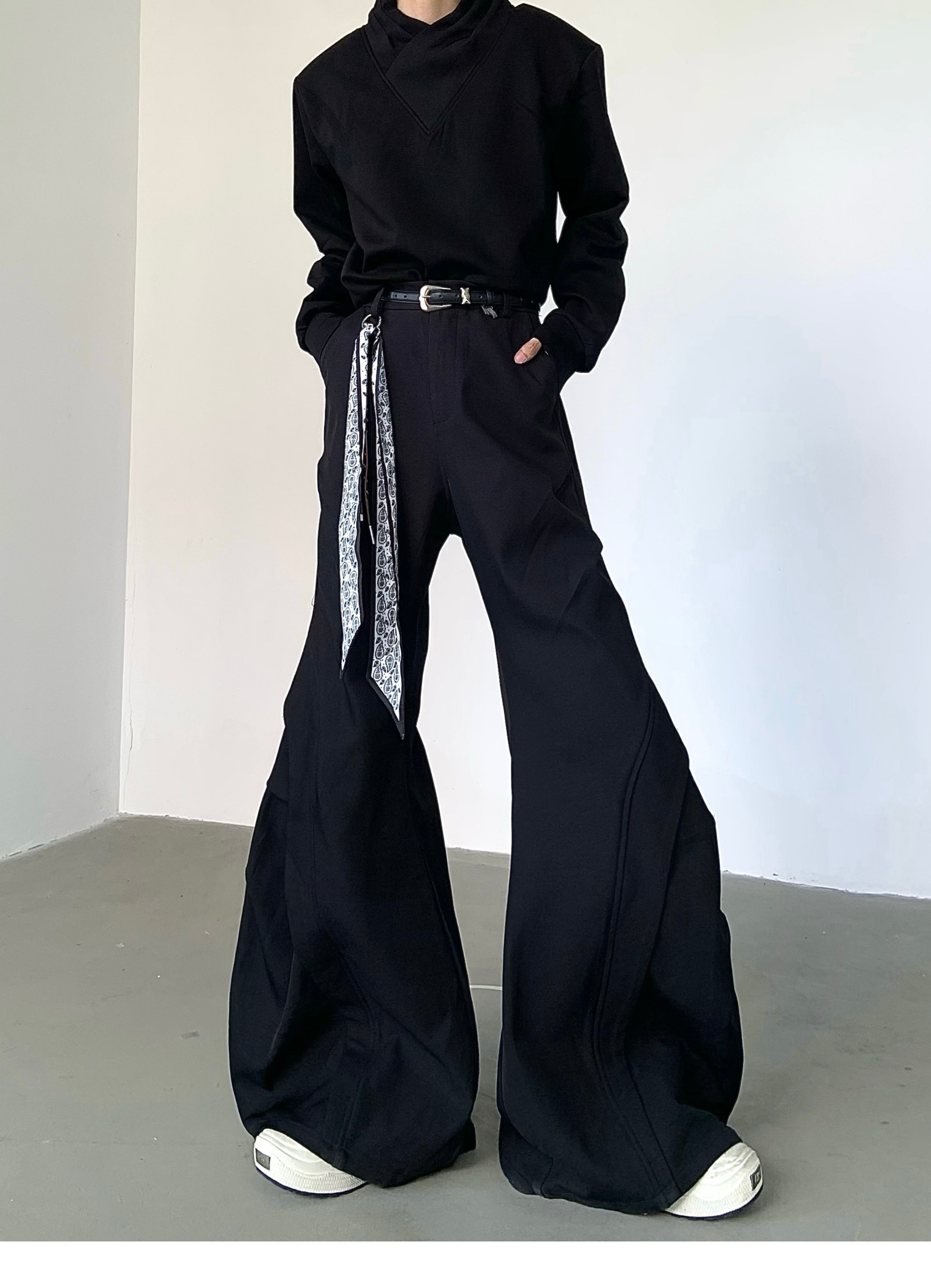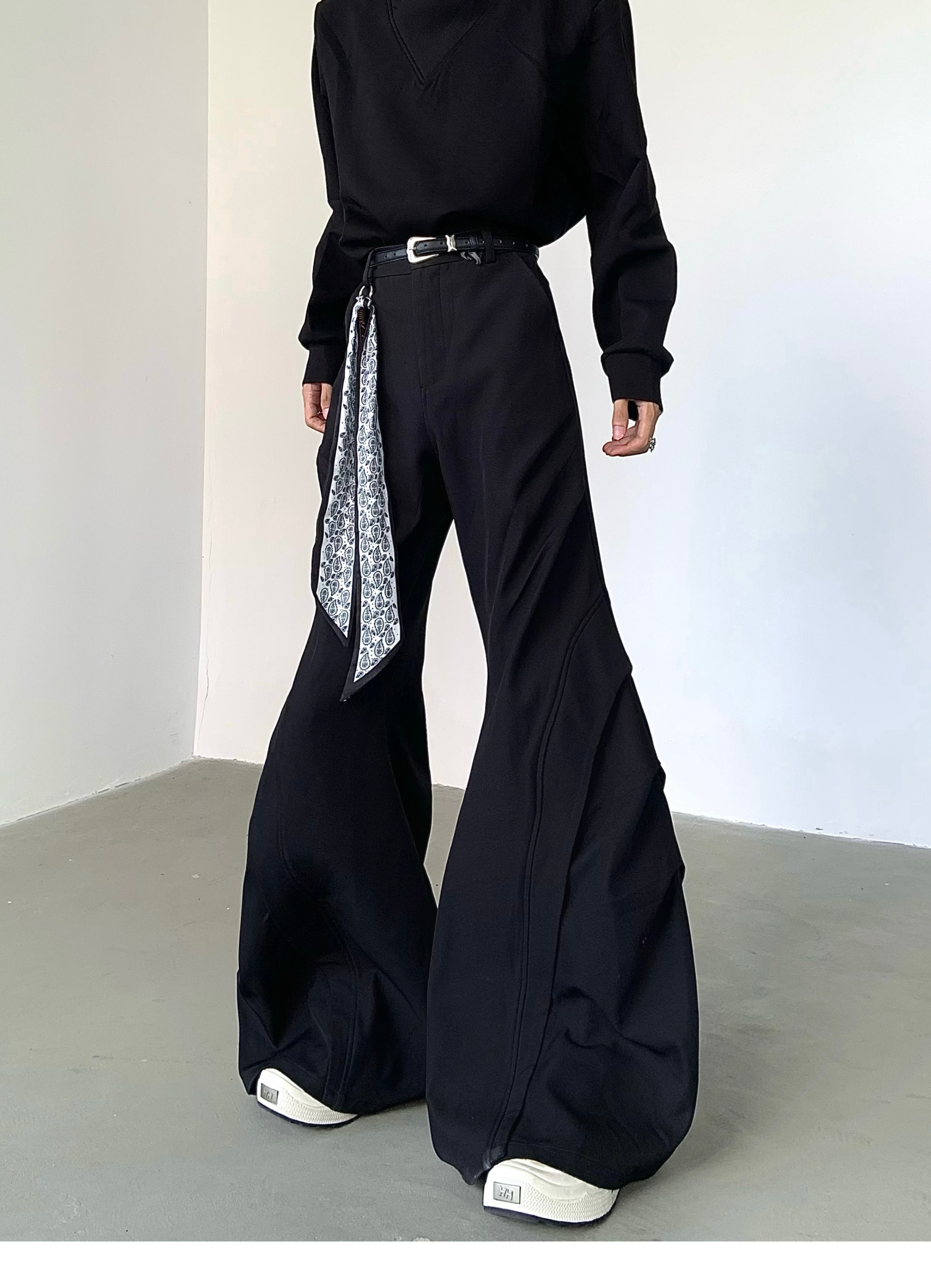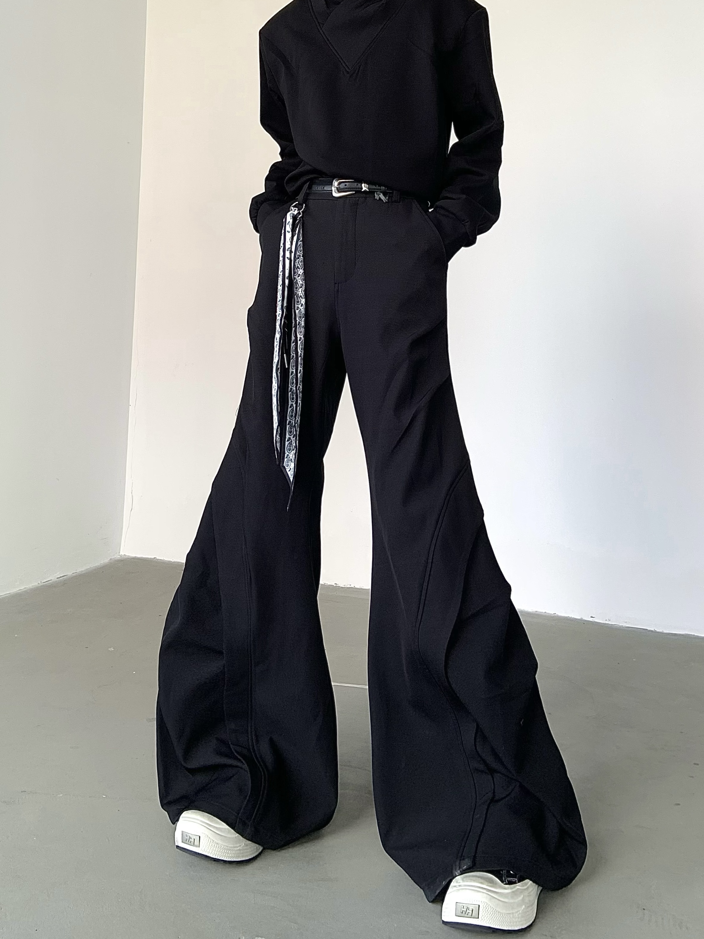 Hany Original Niche Deconstructed Heavy-Duty Pleated Large Flared Micro-Flared Dress Pants for Men with a High-End Feel, Loose and Floor-Length