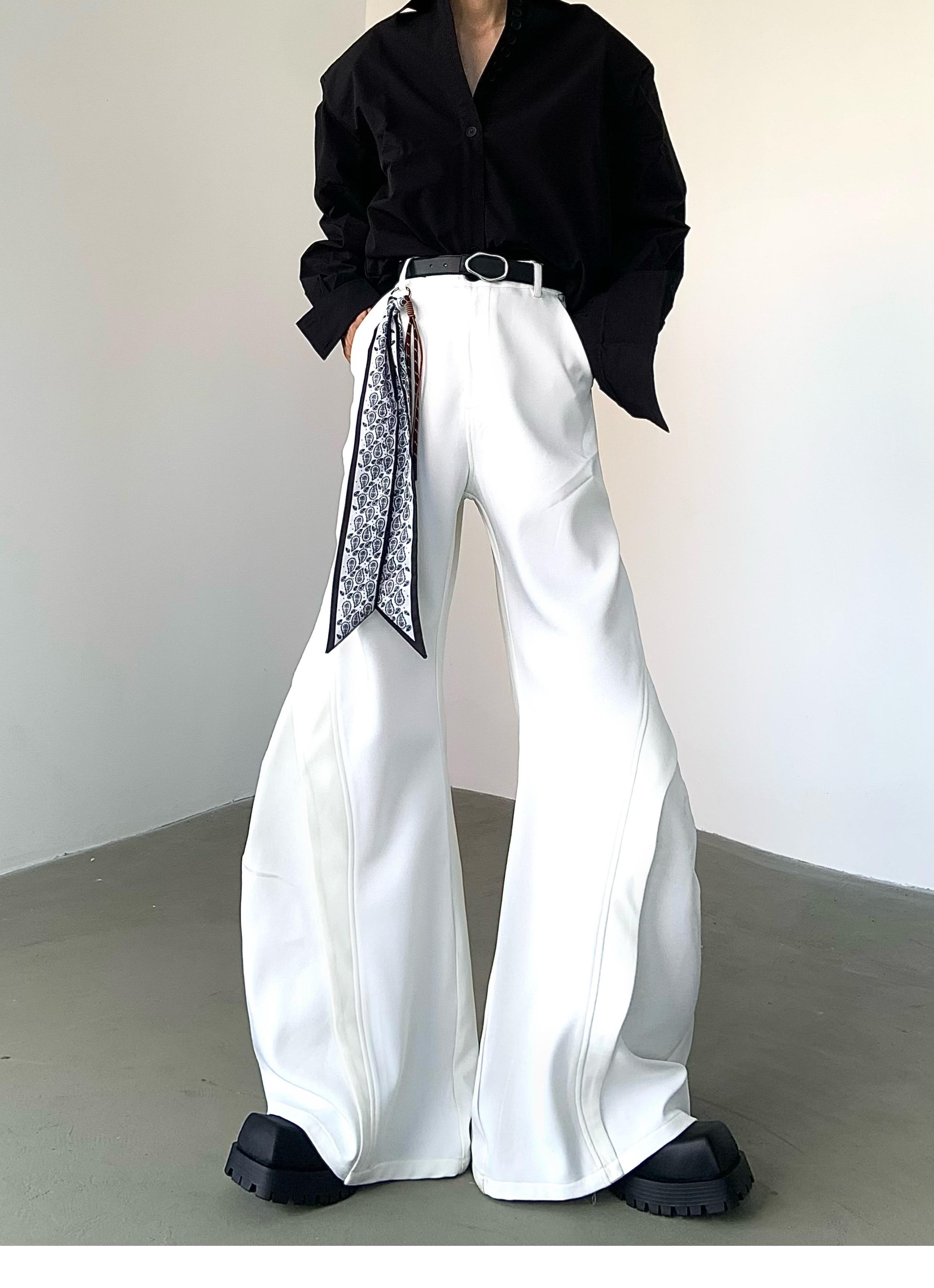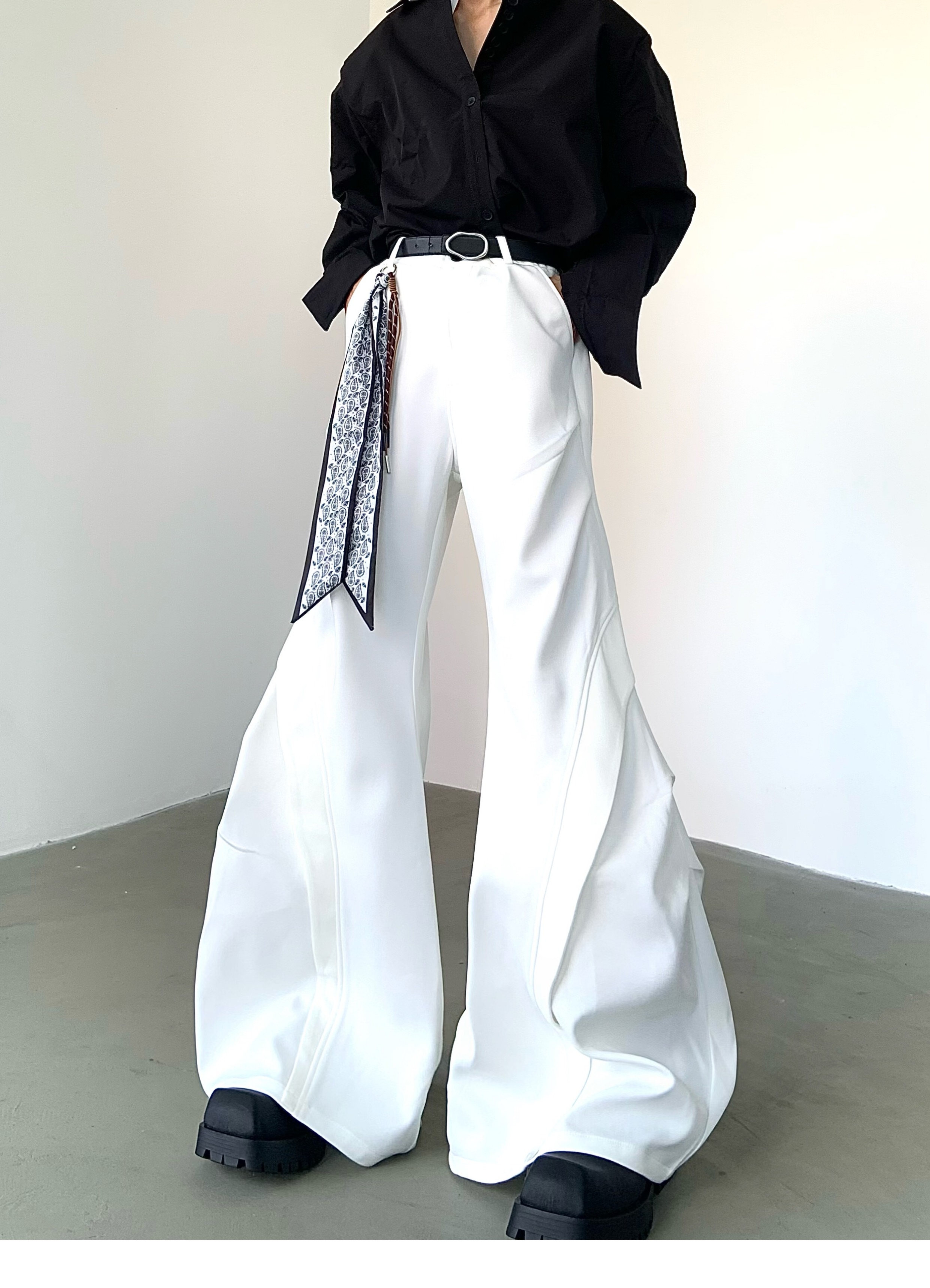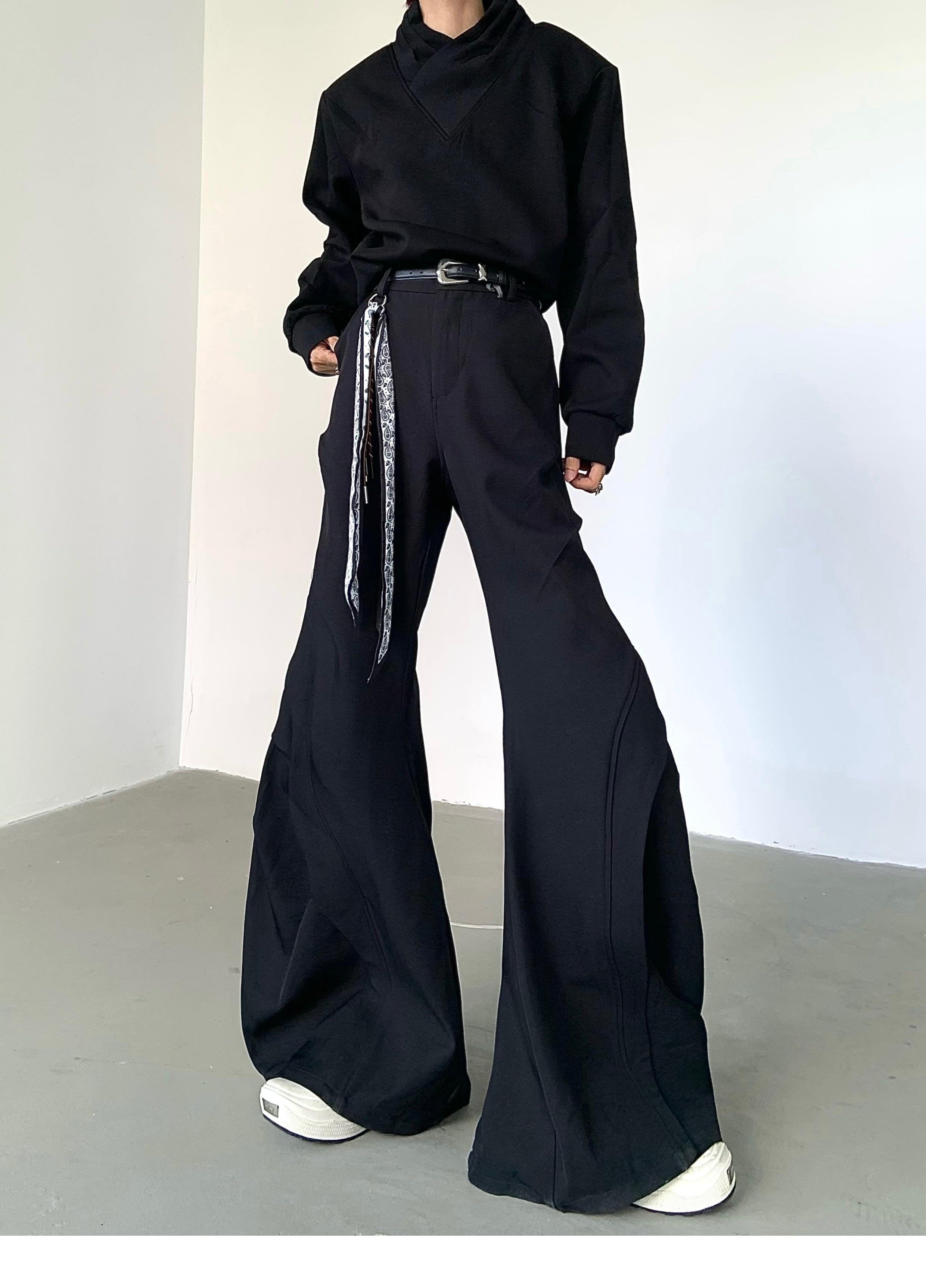 Hany Original Niche Deconstructed Heavy-Duty Pleated Large Flared Micro-Flared Dress Pants for Men with a High-End Feel, Loose and Floor-Length