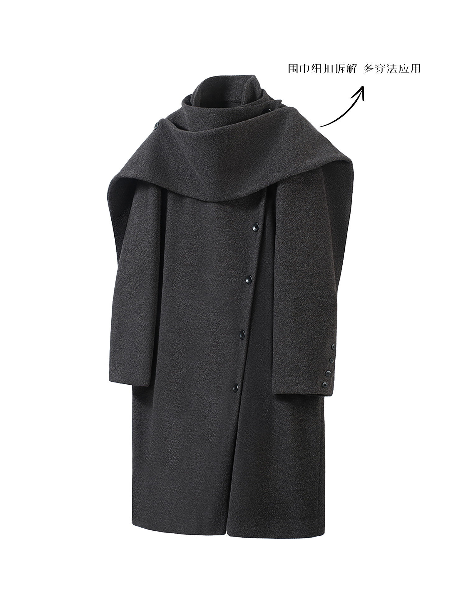 Solemass Scarf Coat Button-Deconstructed Scarf Coat Wool Deconstructed Multi-Wear Warm Winter Coat