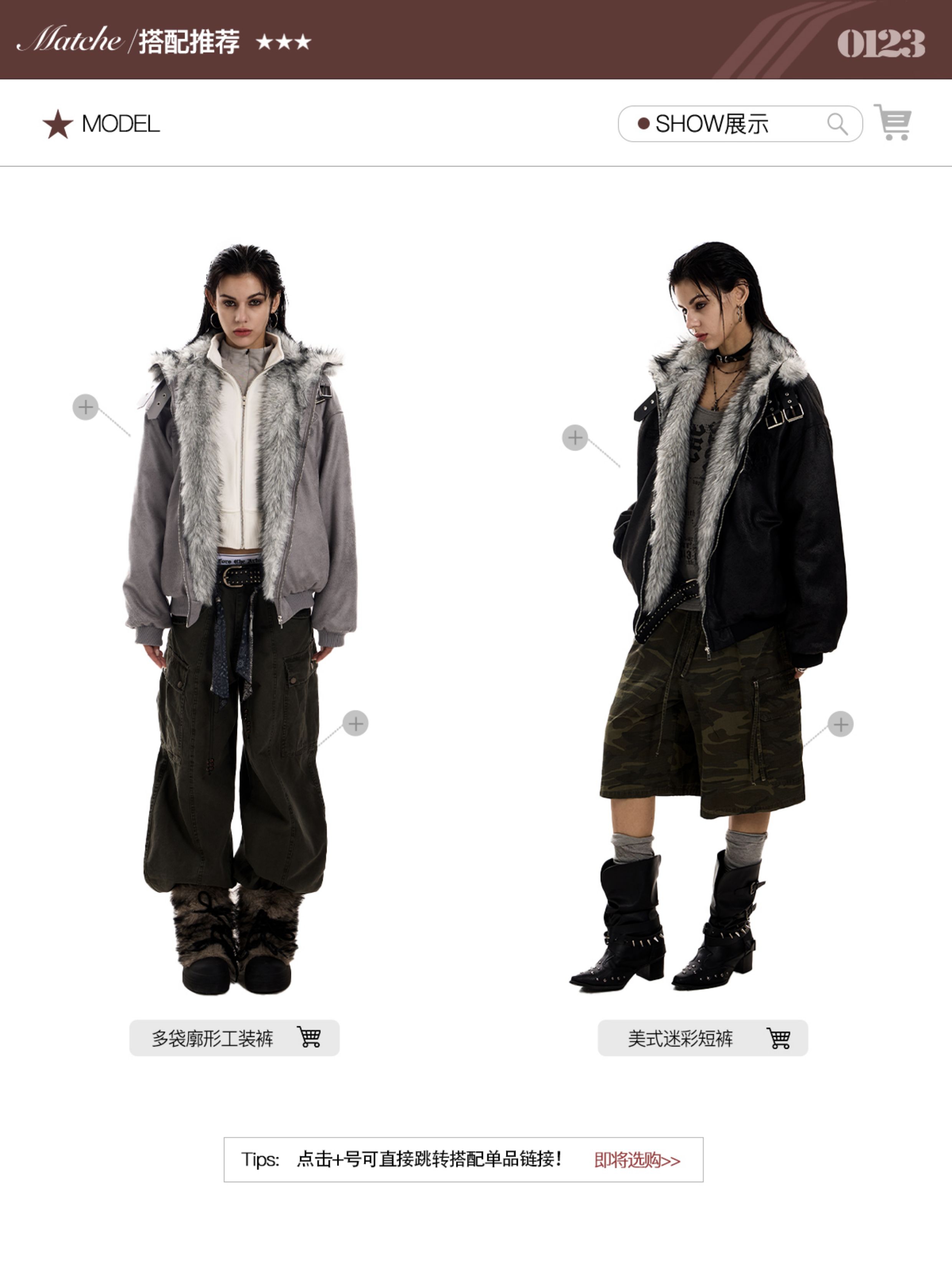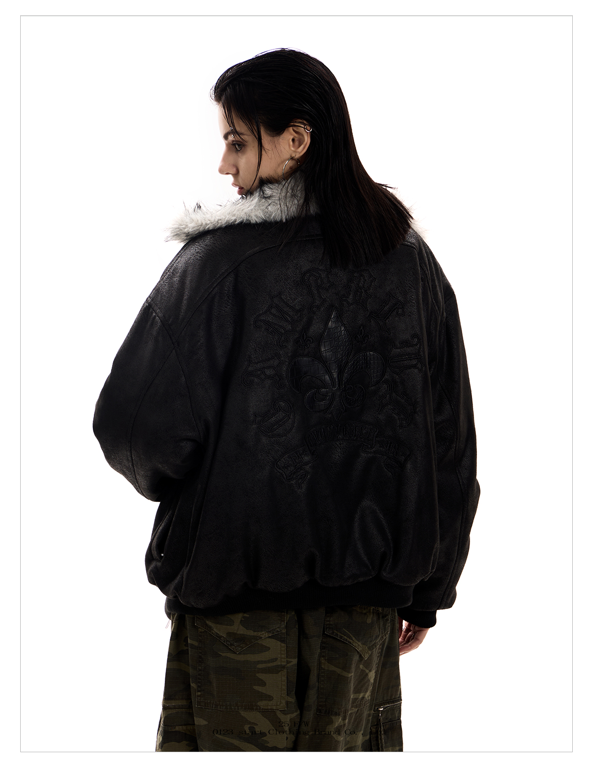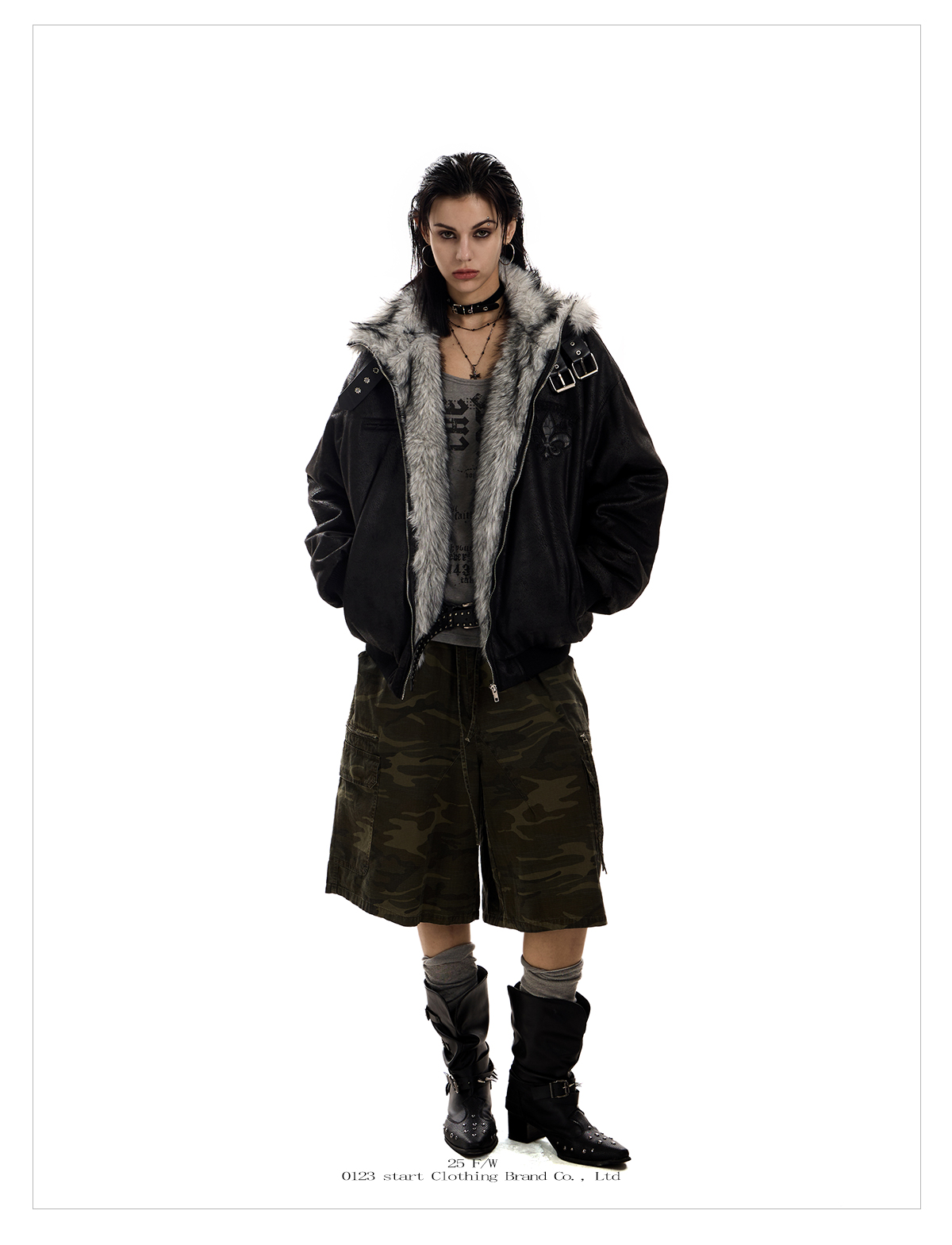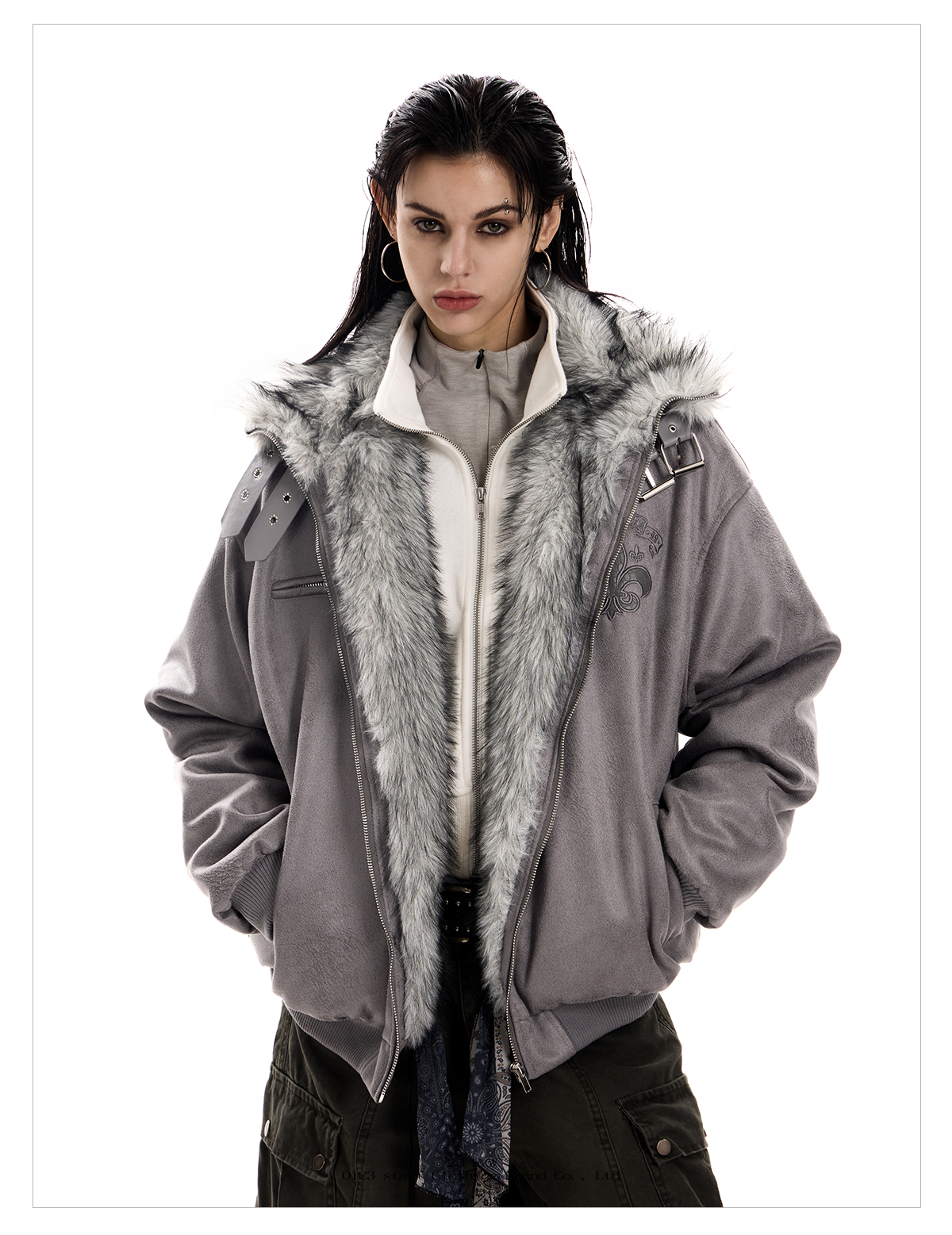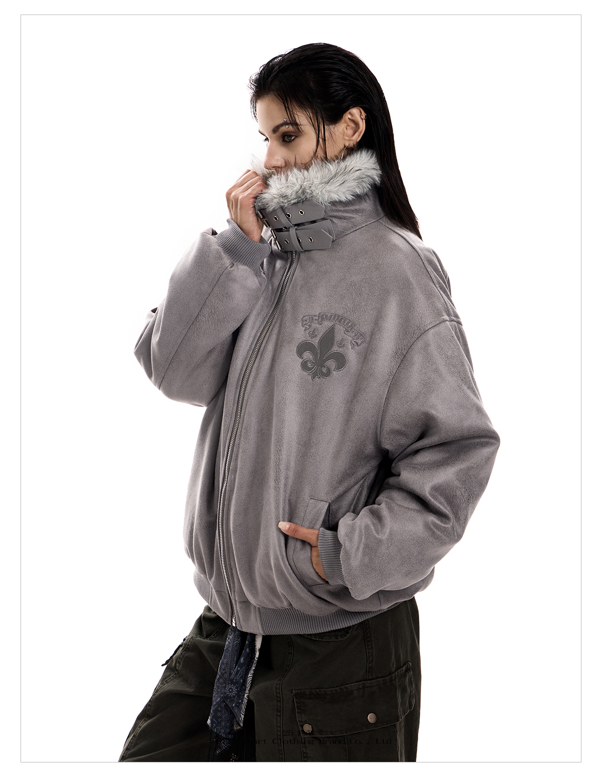 0123Start Suede Mountain Carving Jacket Cotton Coat Women's Gothic Style Fleece Lined Thickened Stand Collar Workwear Jacket Winter