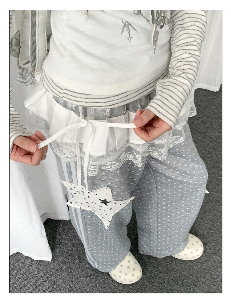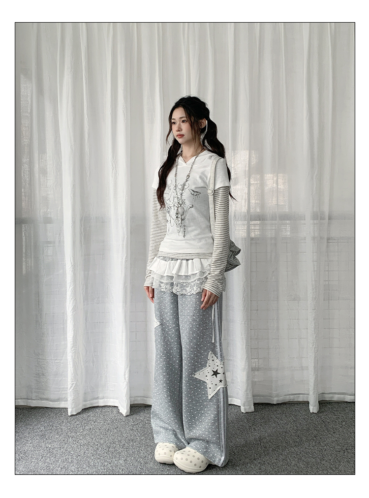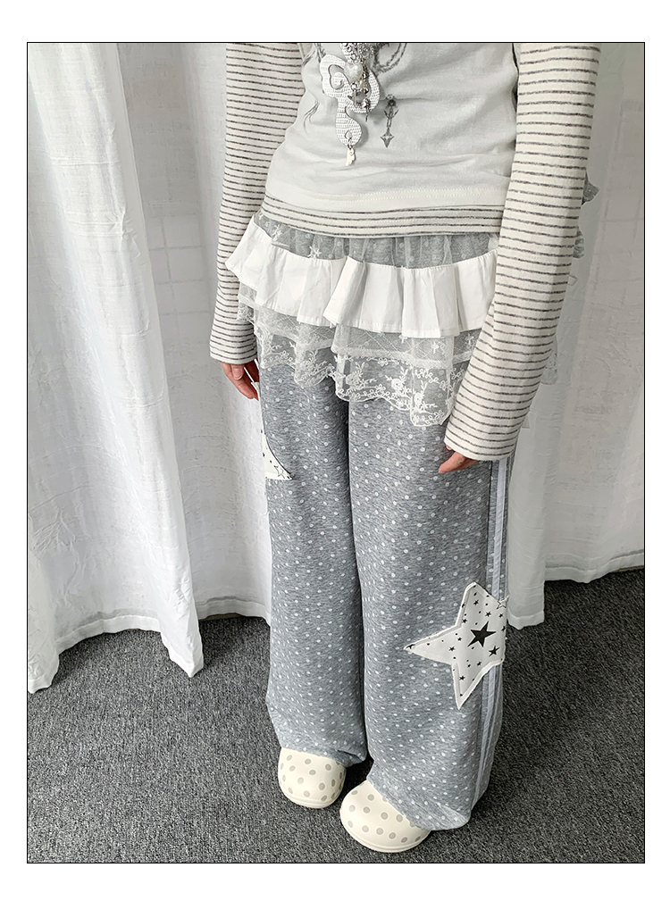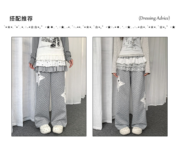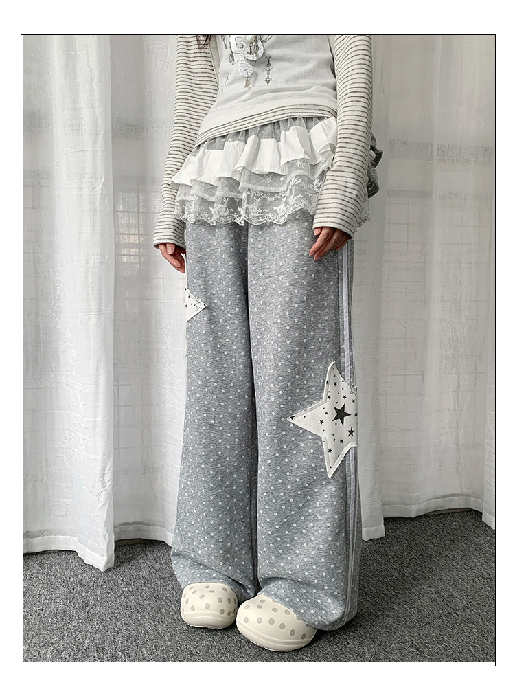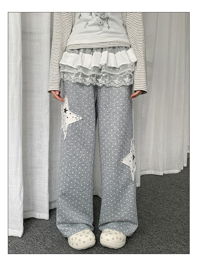 Solkatt All-Over Polka Dot and Star Patch Sweatpants for Women, Light Subculture Loose Straight-Leg Pants, Slimming Casual Pants