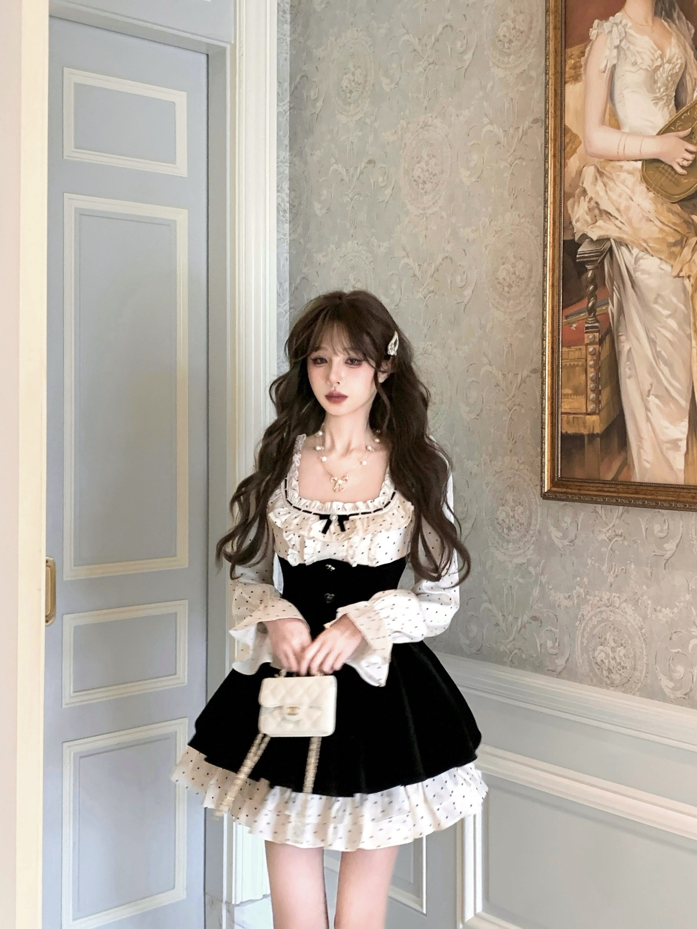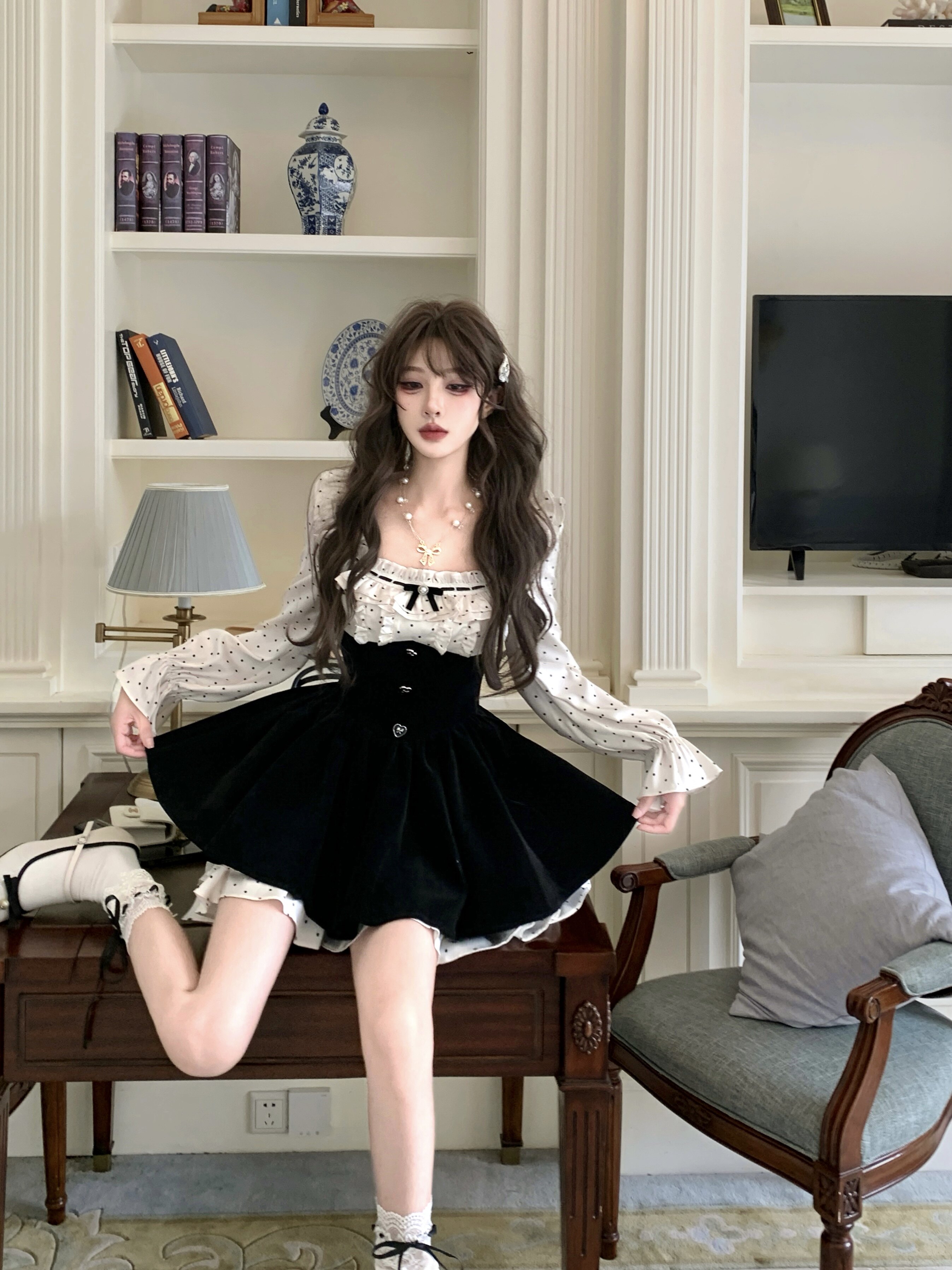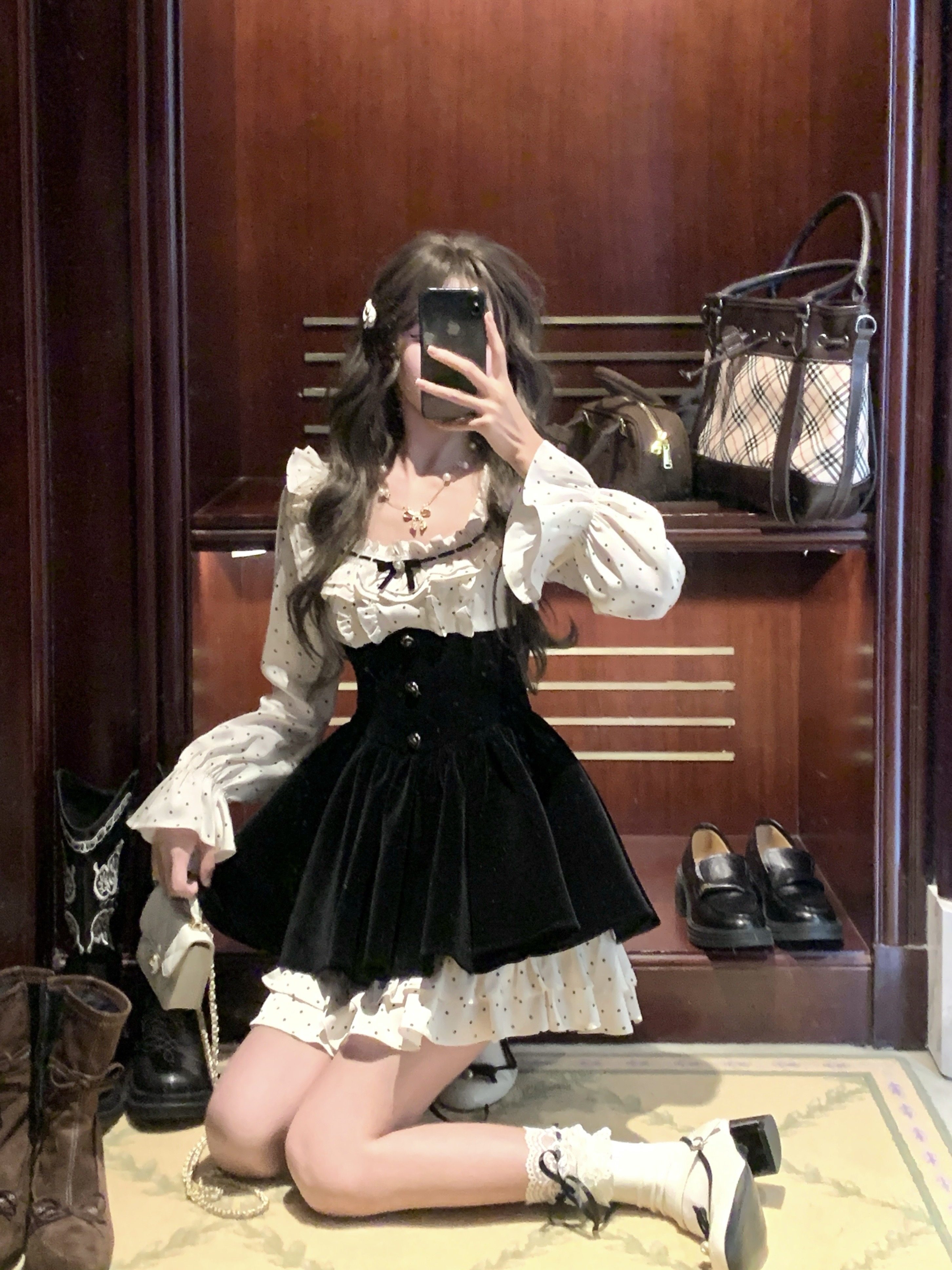Bull0313【One Three】Castle Heiress French Style Girl's Dress Polka Dot High-End Heiress Fake Two-Piece