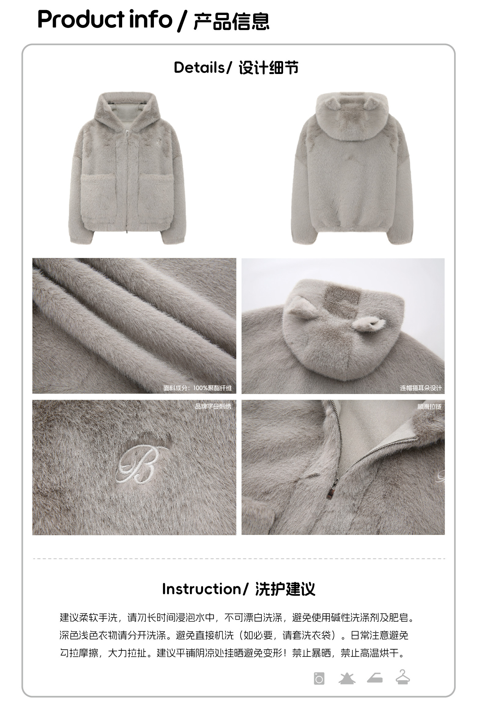Bubbleley Winter Plush Warm Jacket with Cat Ear Design, Cute and Lazy Style Hooded Top for Girls
