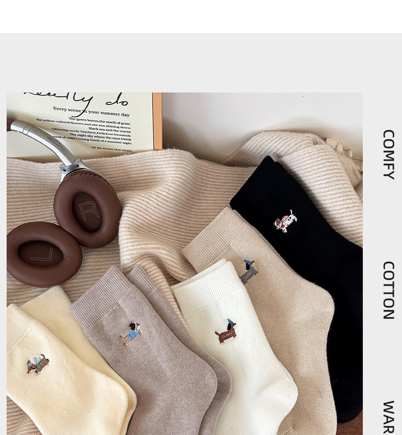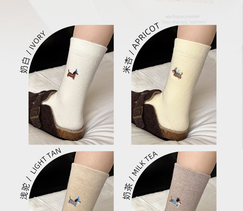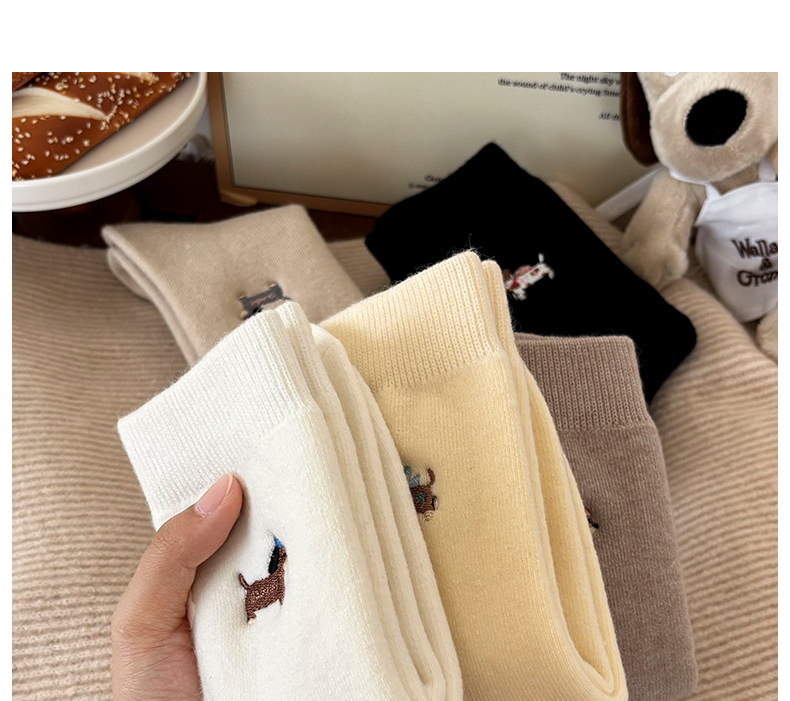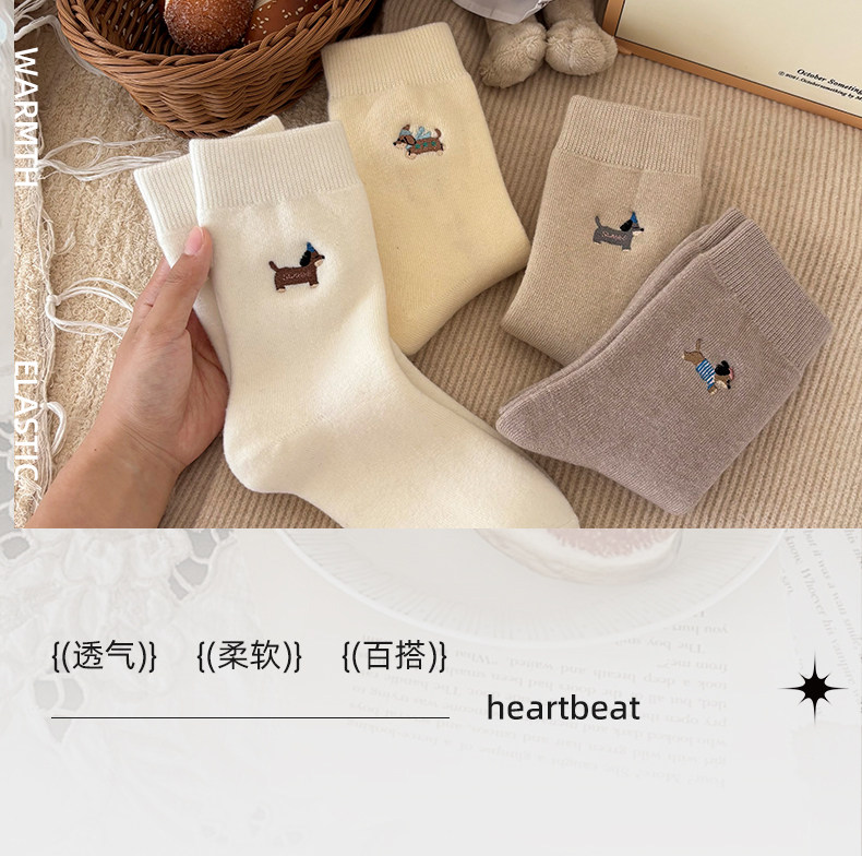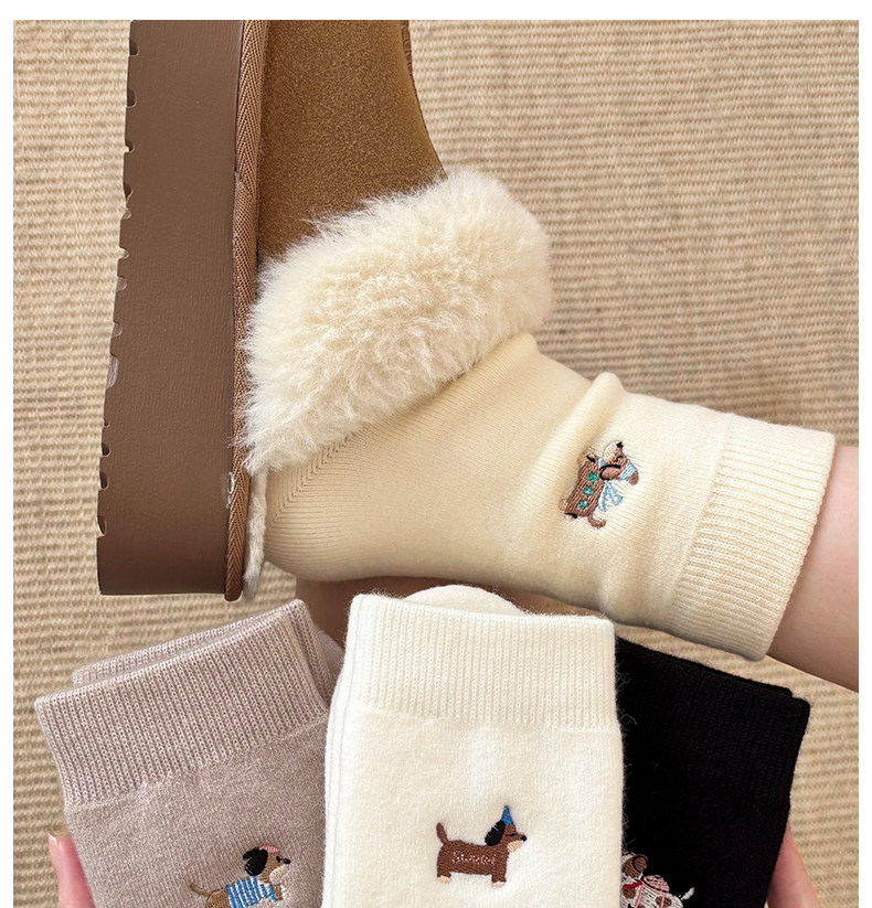 Cute Socks for Women, Mid-Calf Socks for Autumn and Winter, Girls' Puppy Wool Long Socks, 2025 New Thickened Women's Socks