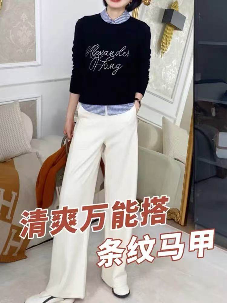 【Layering for All Seasons】New Autumn/Winter Versatile Striped Sleeveless Shirt Layered with Vest and Collared Shirt for a Slimming Effect