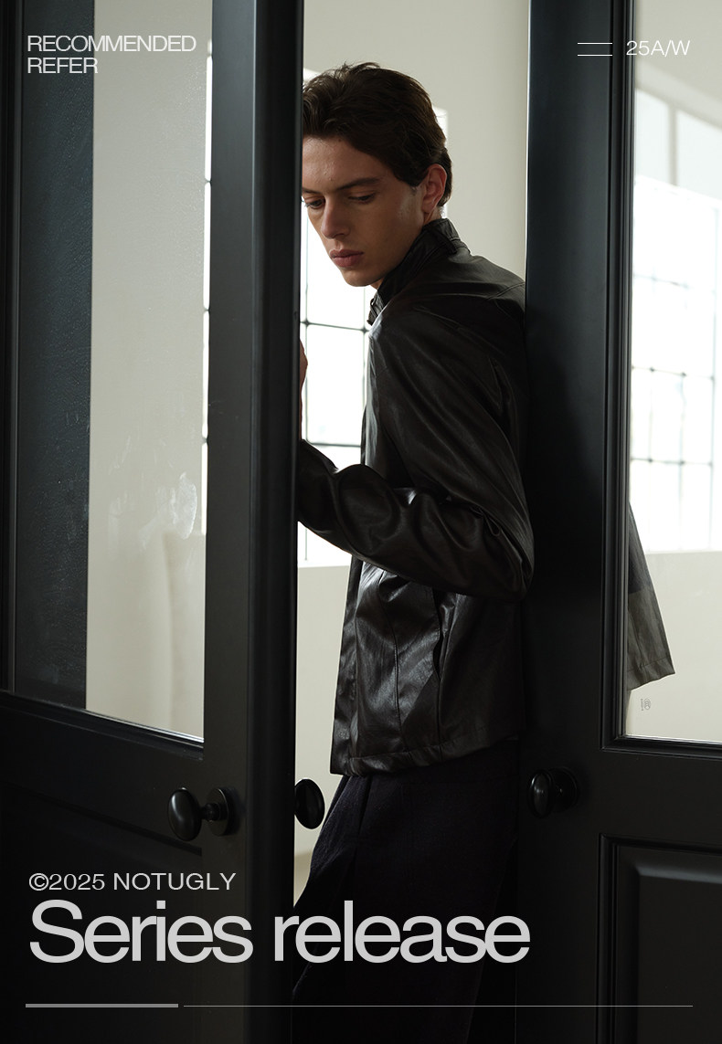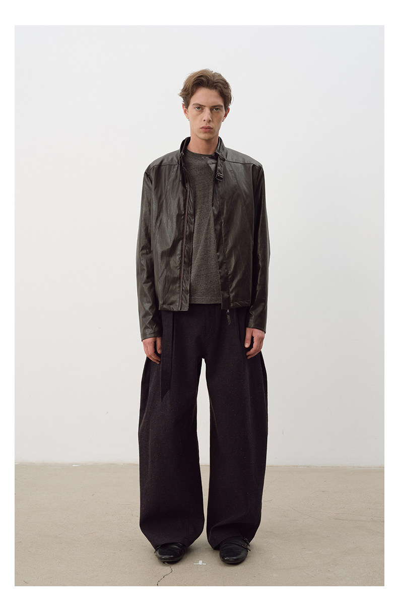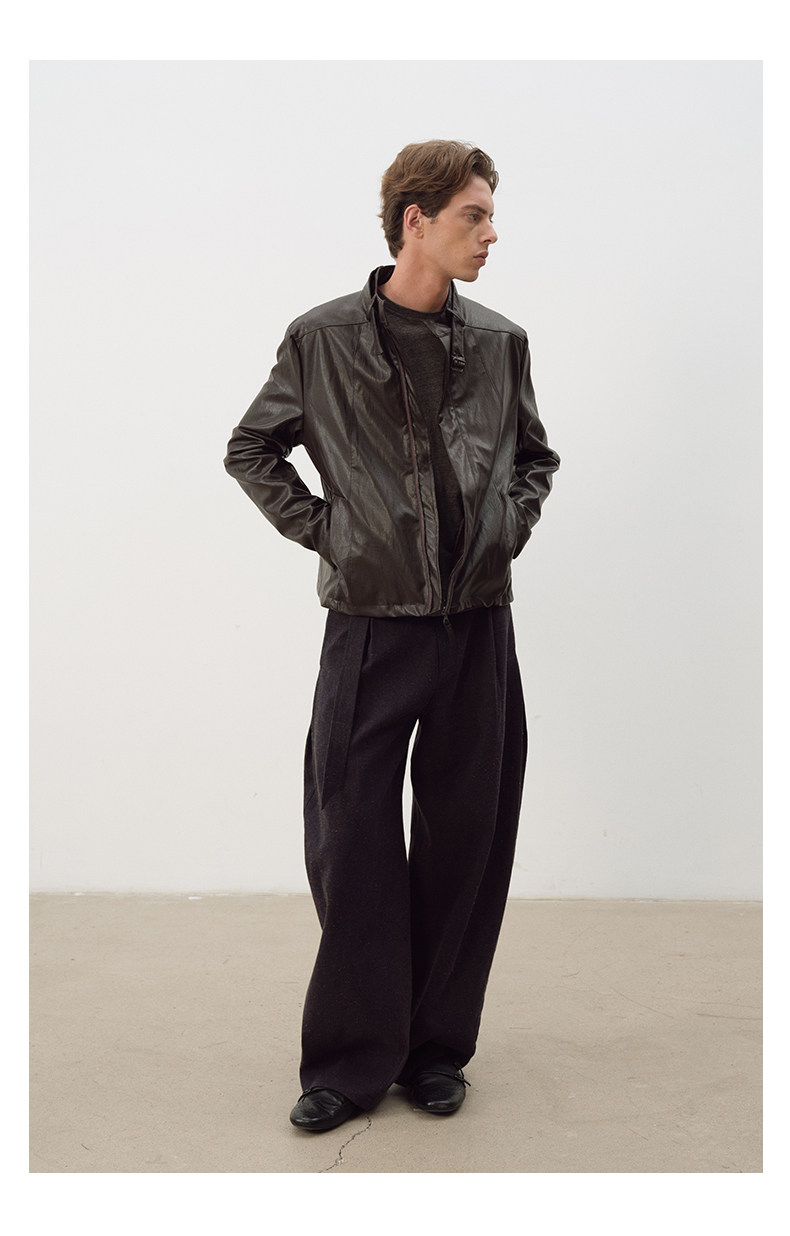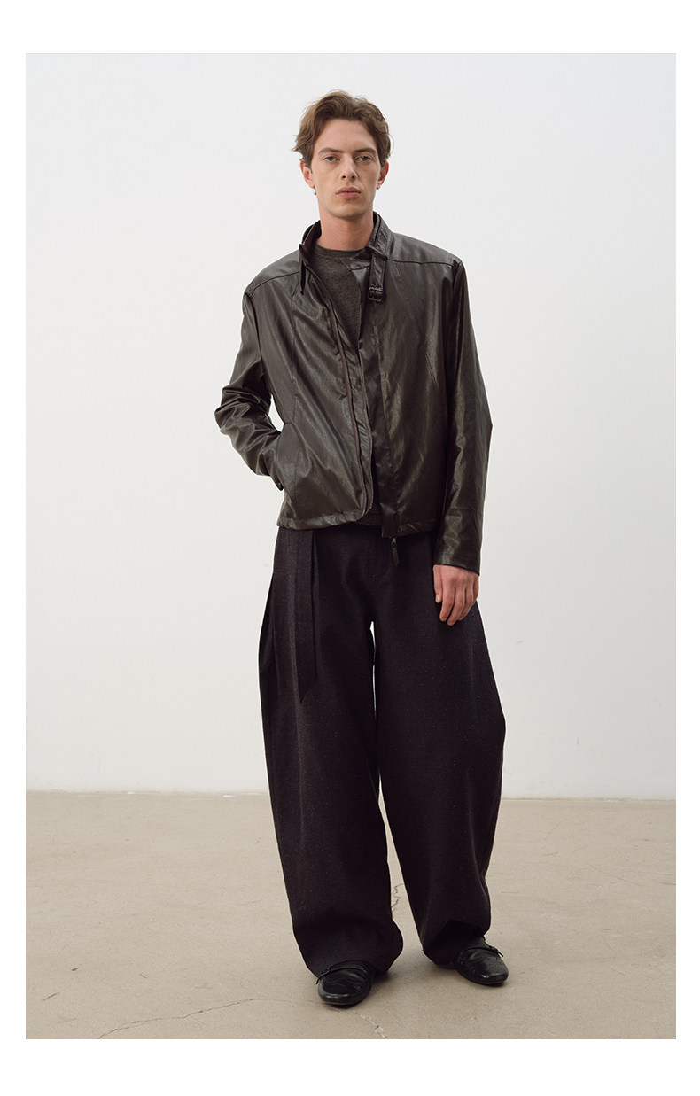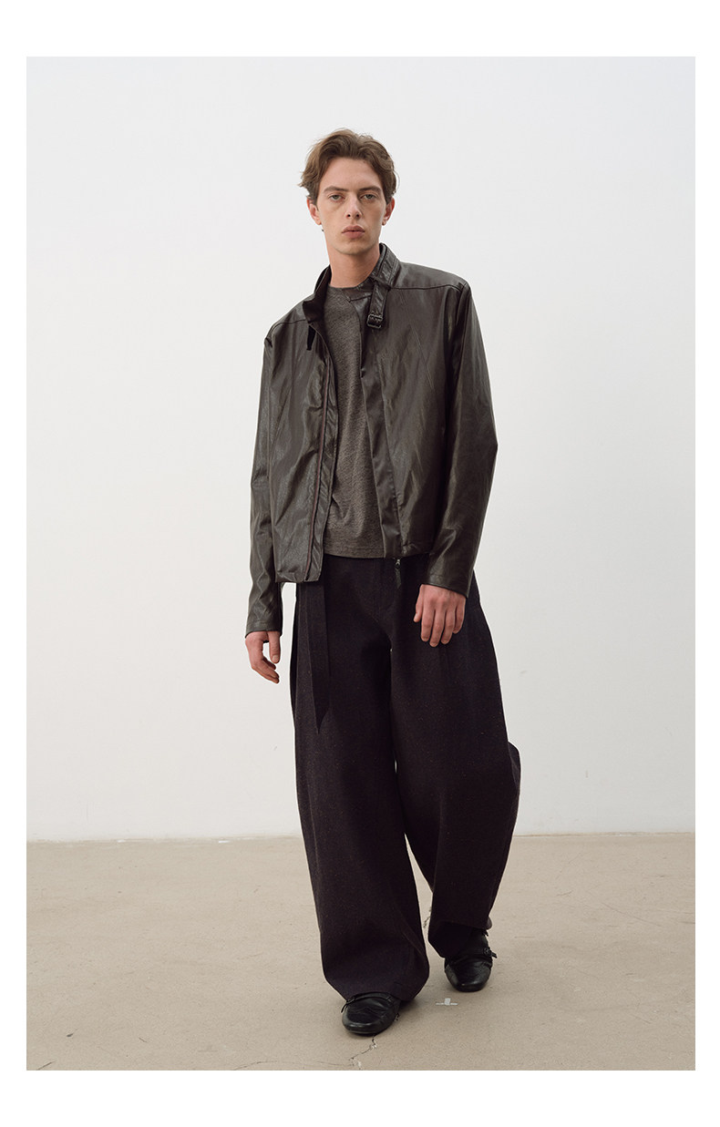 Not Ugly 25Aw Silver Ring Metal Wire Stand Collar Segmented Three-Dimensional Reddish Brown Leather Vintage Jacket