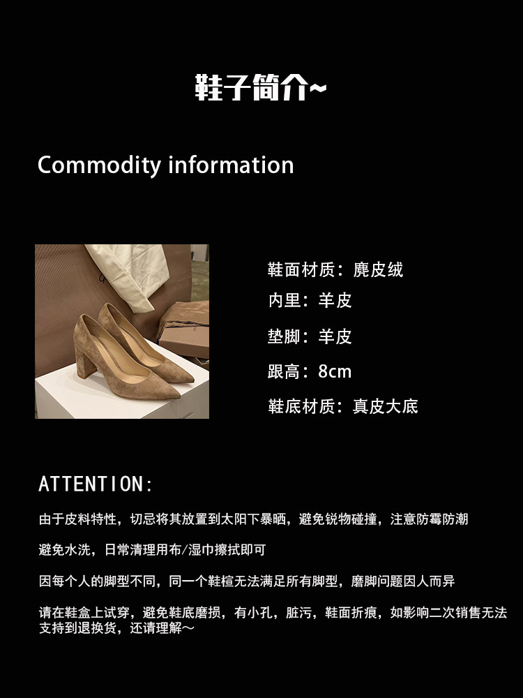 Mr. Shoe Leebart~Gr Suede Thick Heel Pointed Toe Shoes