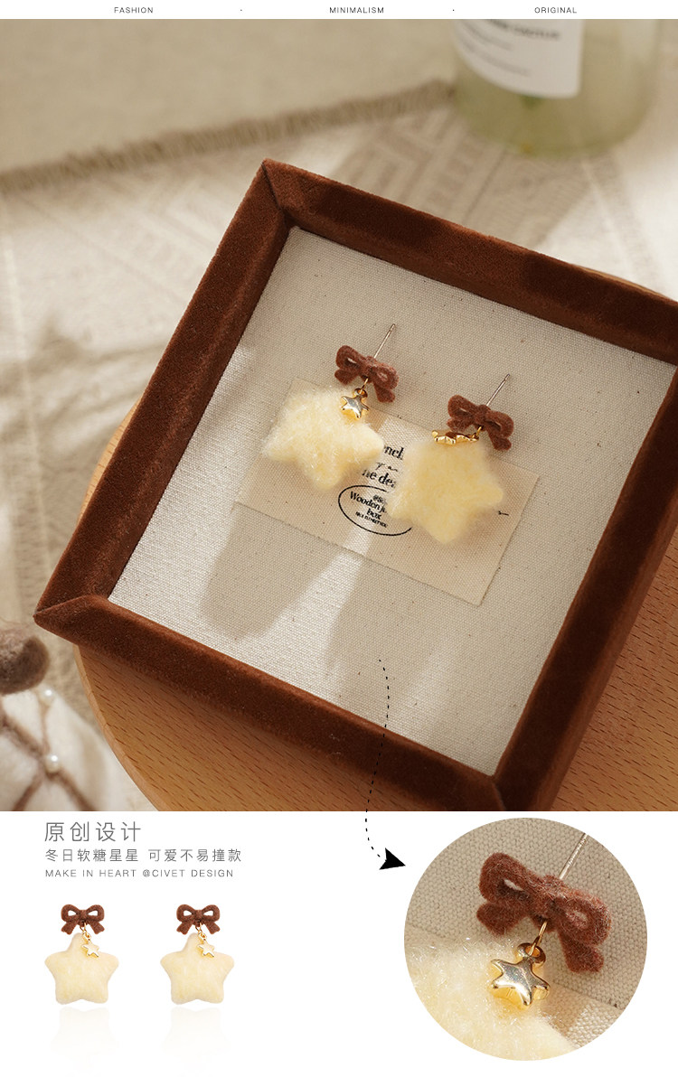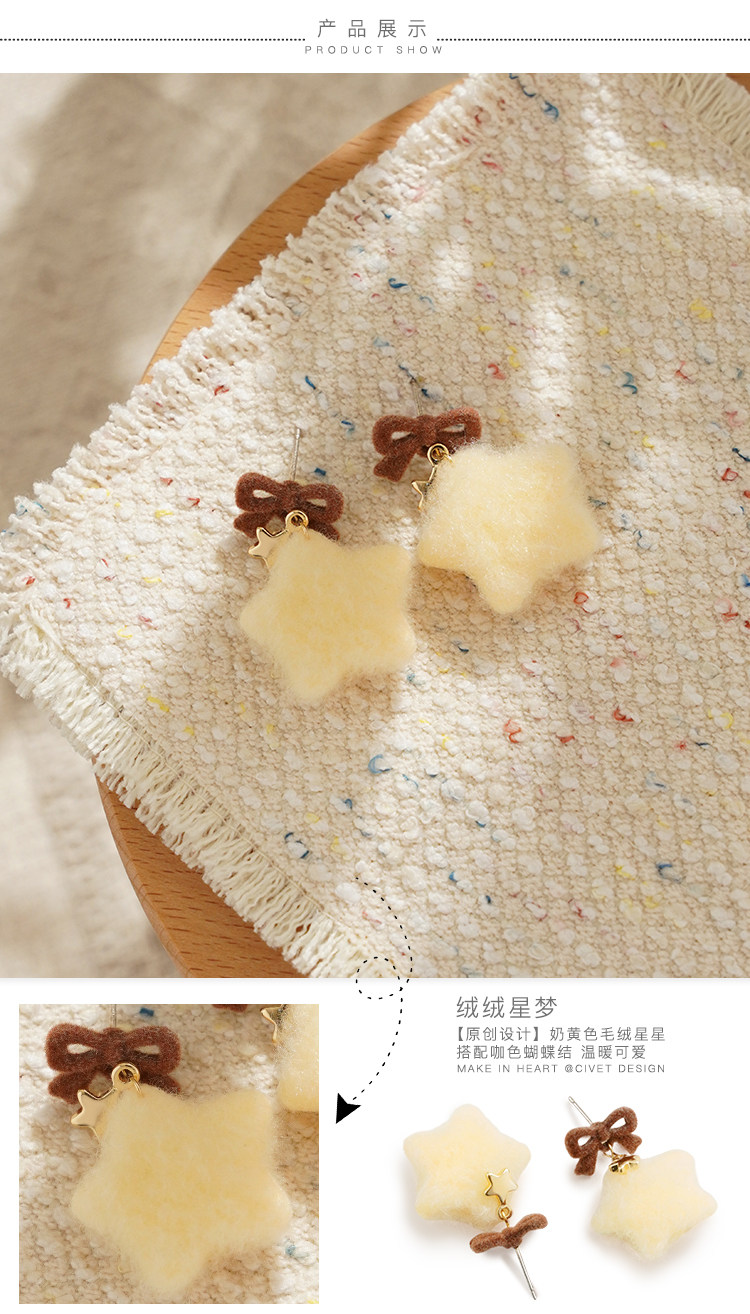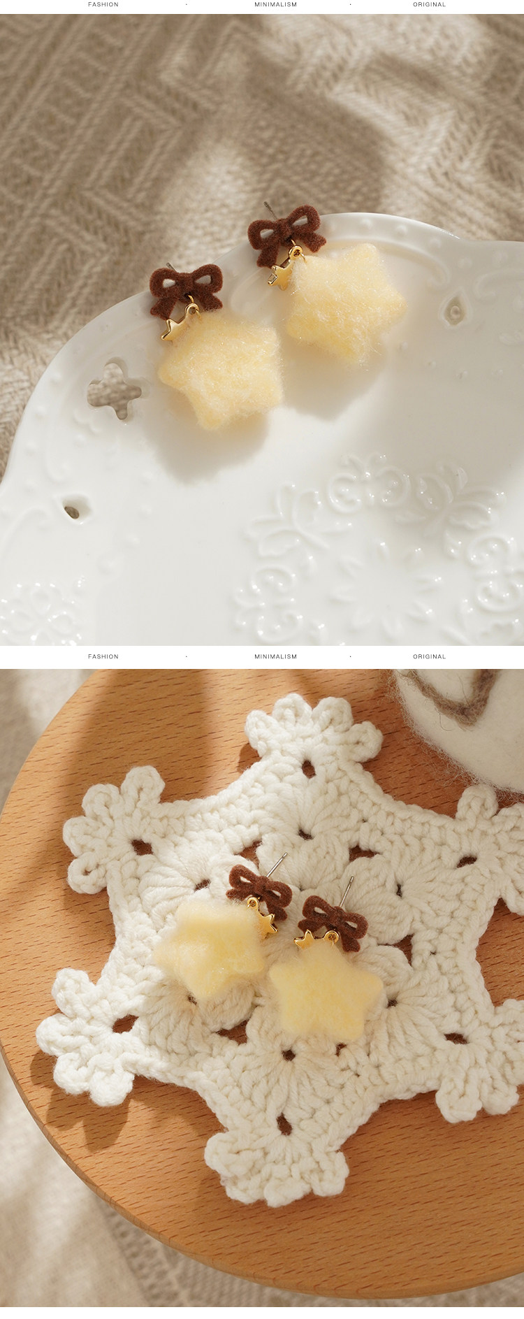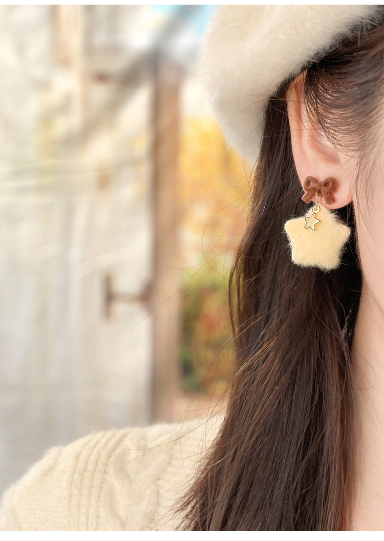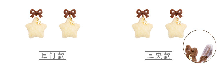 Original Maillard Bowknot Plush Star Earrings Ear Clips Cute Sweet Girly Design Earrings for Students