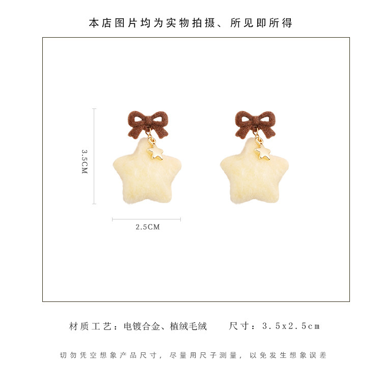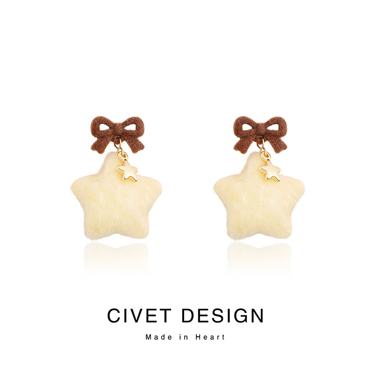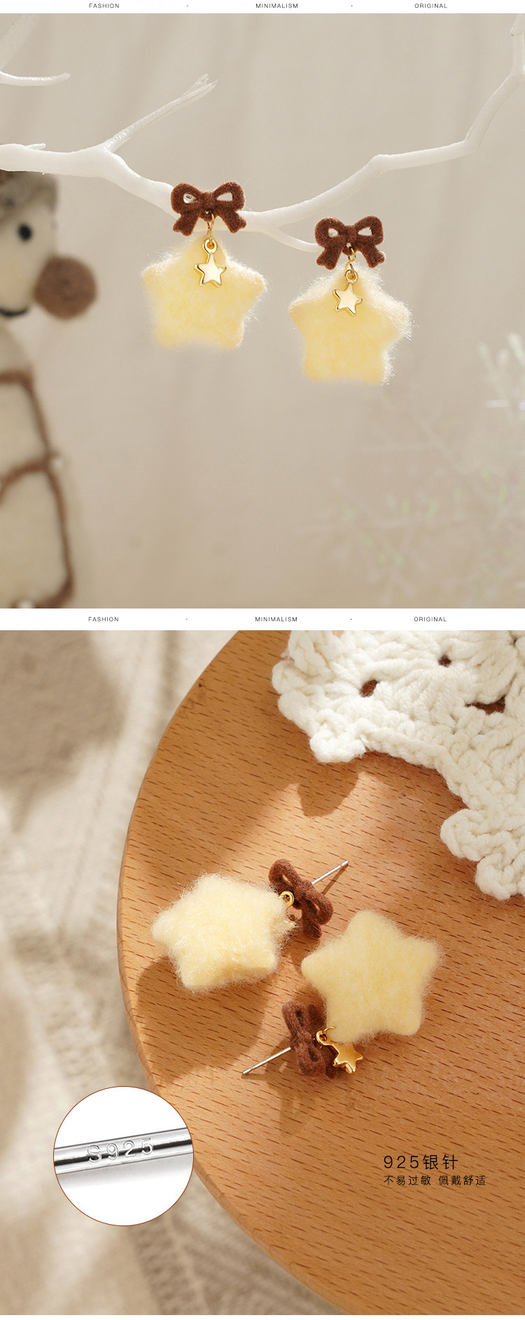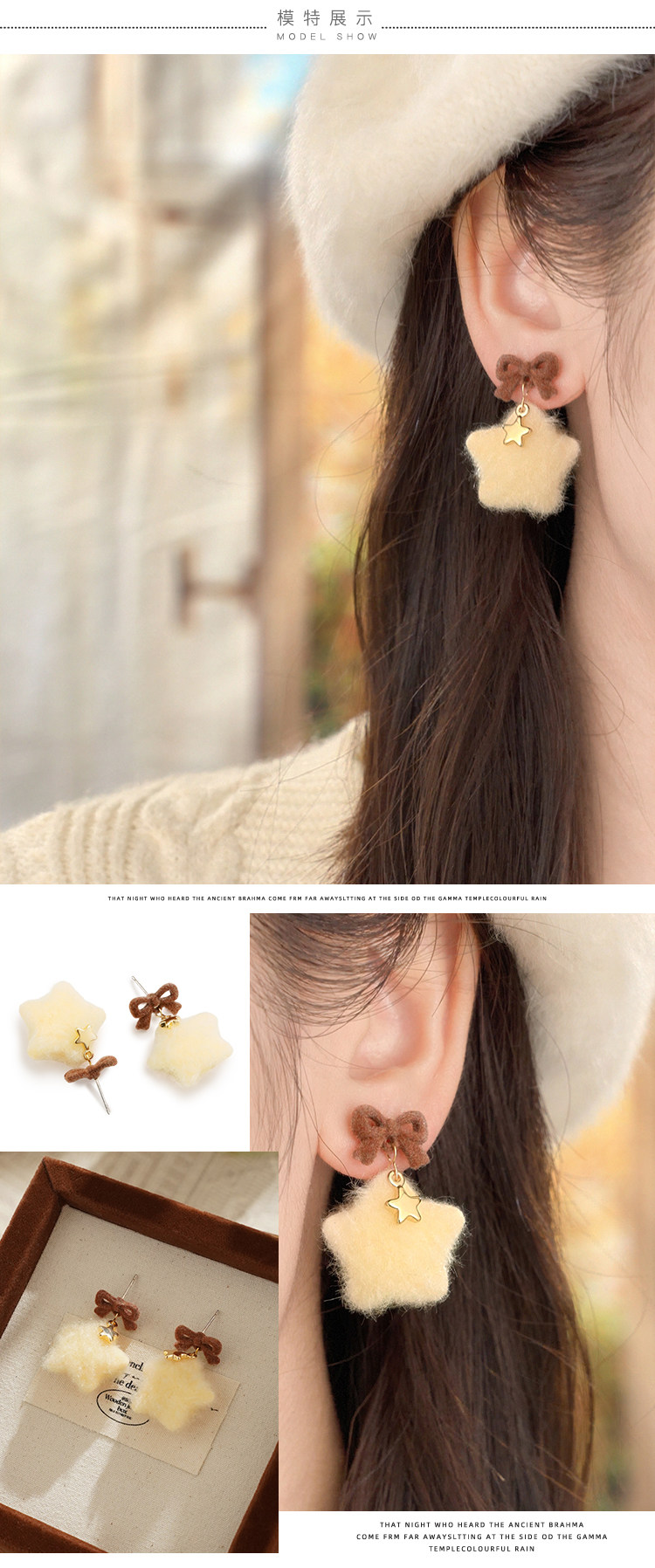 Original Maillard Bowknot Plush Star Earrings Ear Clips Cute Sweet Girly Design Earrings for Students