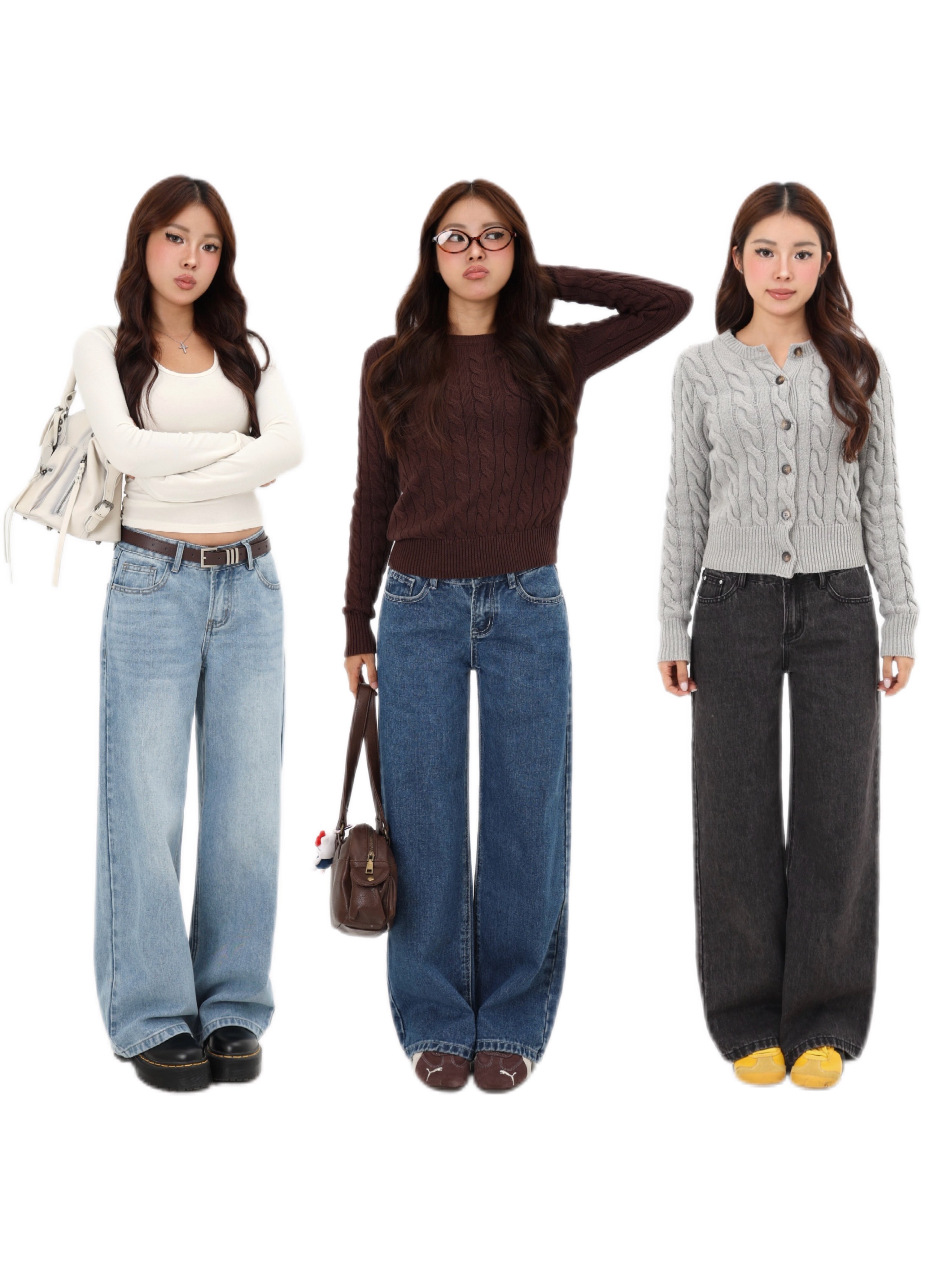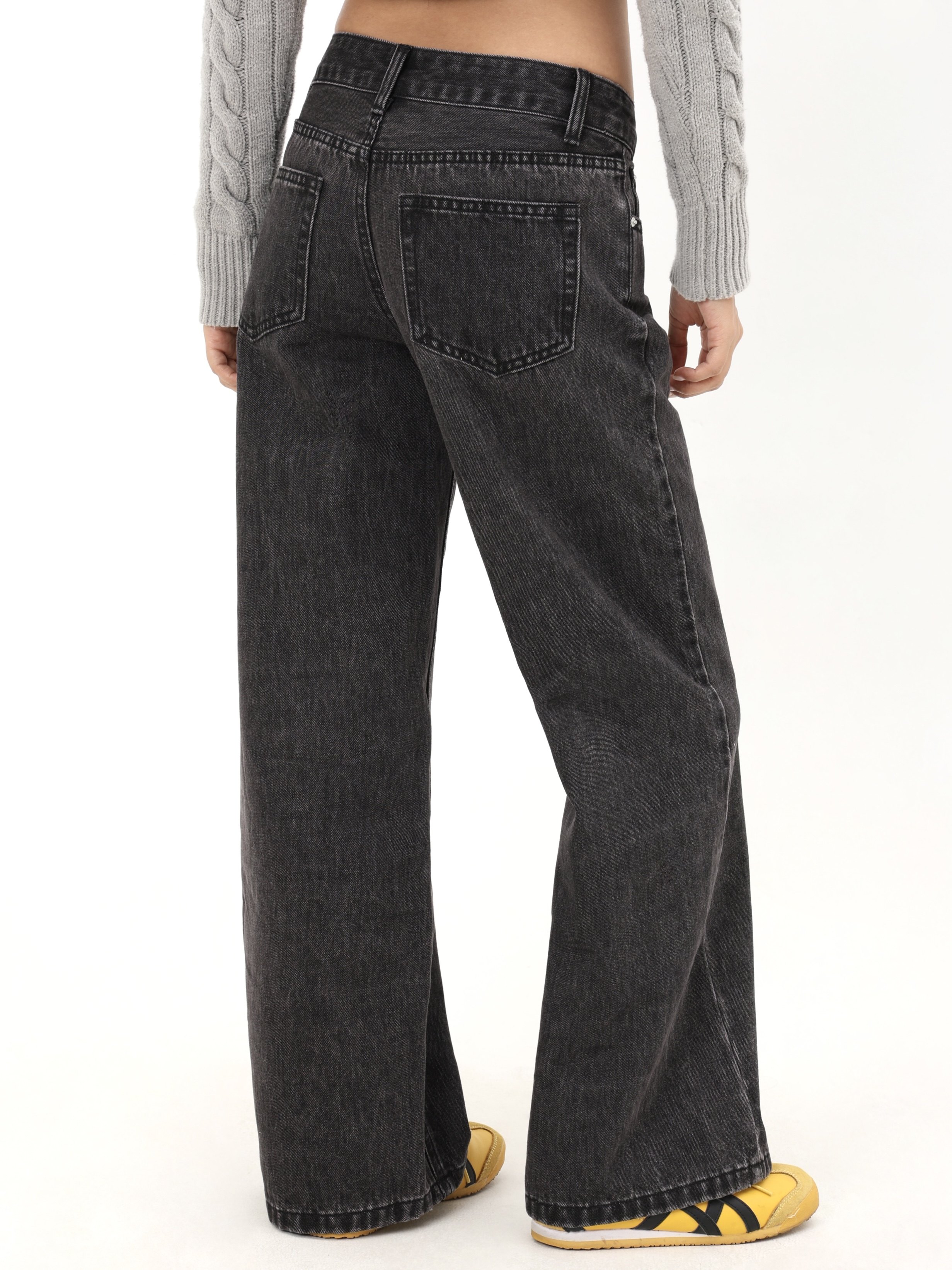 Mimiette Petite Vintage Blue Slim Straight-Leg Mid-Low Waist Jeans L87 American Simple Slimming Pants