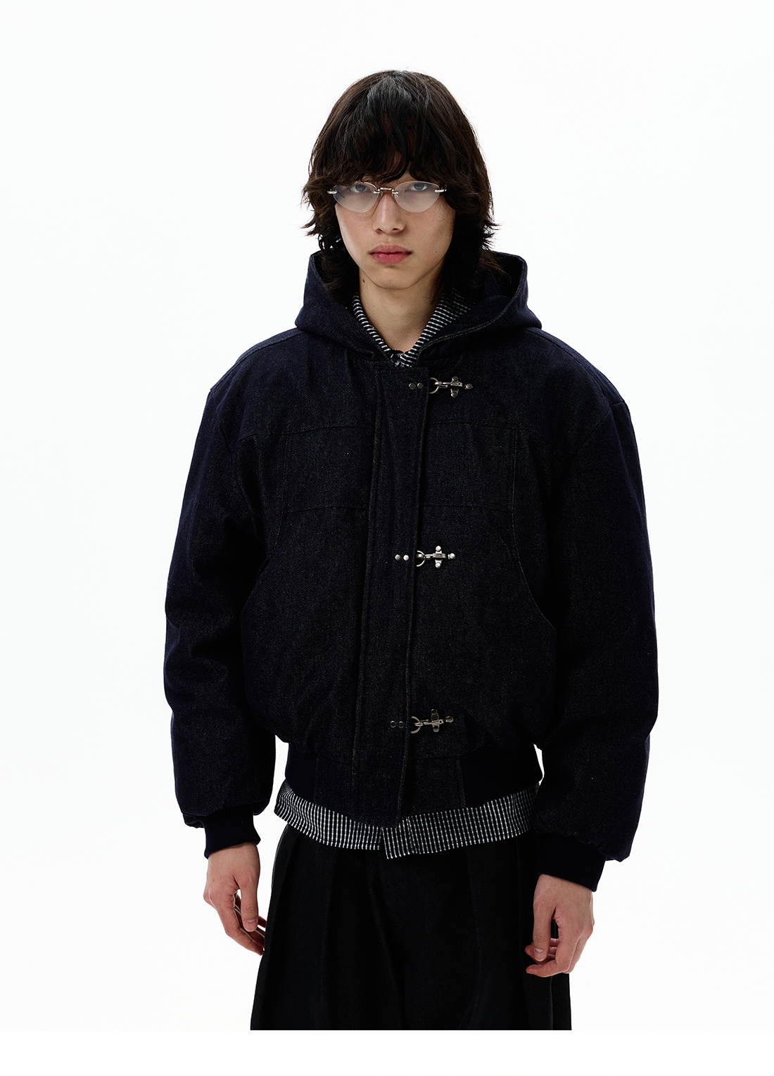 Tailang's Shop Winter American Retro Denim Jacket for Men, High-End Cool Style with Airplane Buckle Cotton Jacket, Trendy for Couples