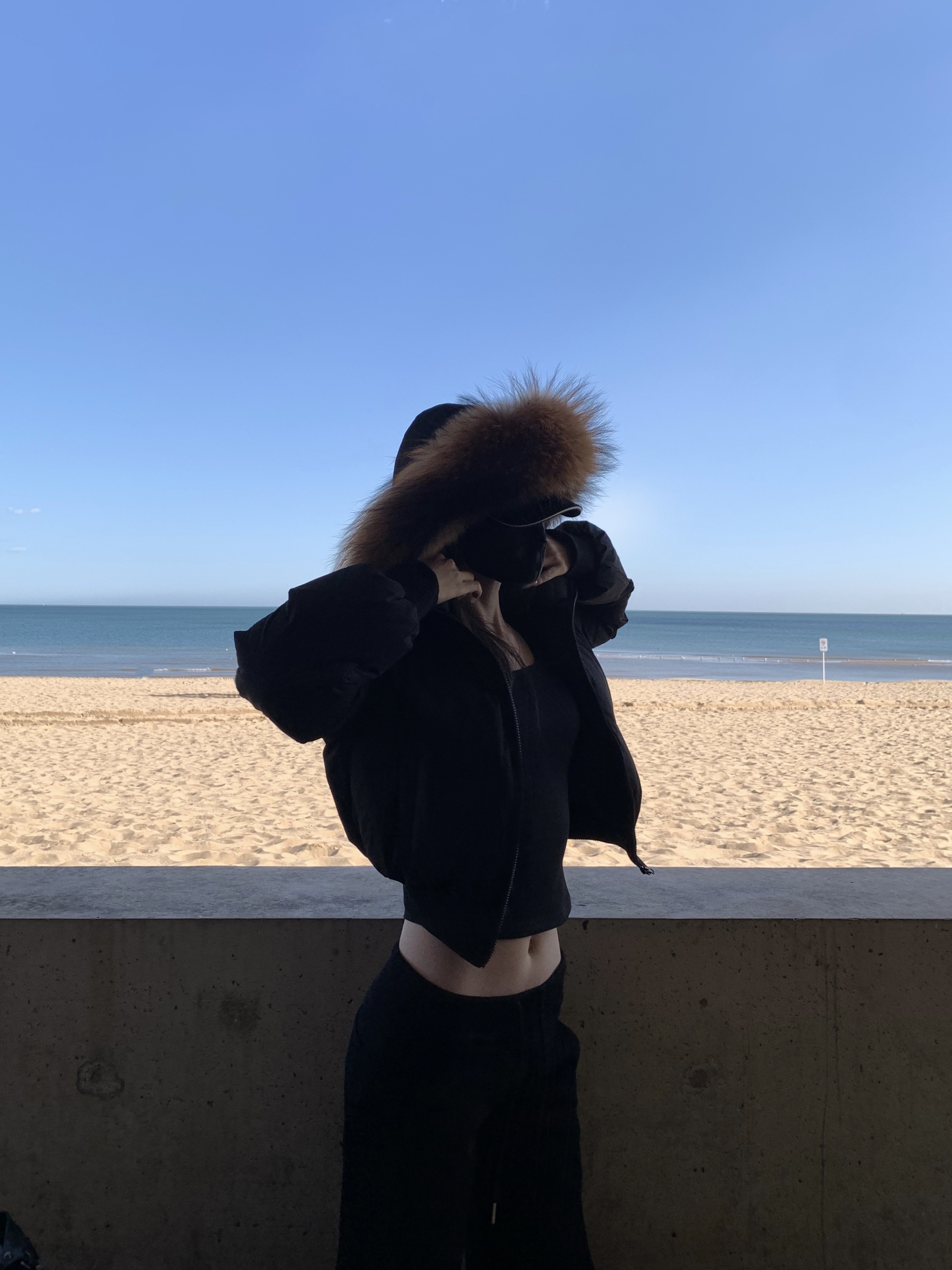 上身就是显得整体很利落不臃肿 腿长长人瘦瘦