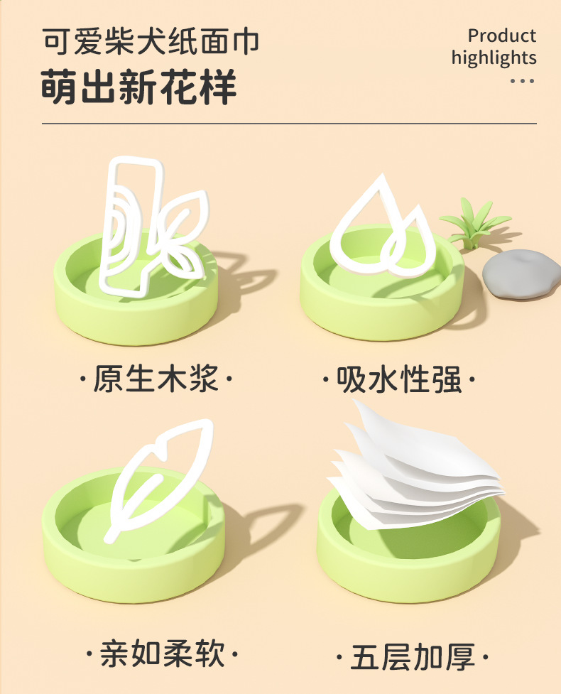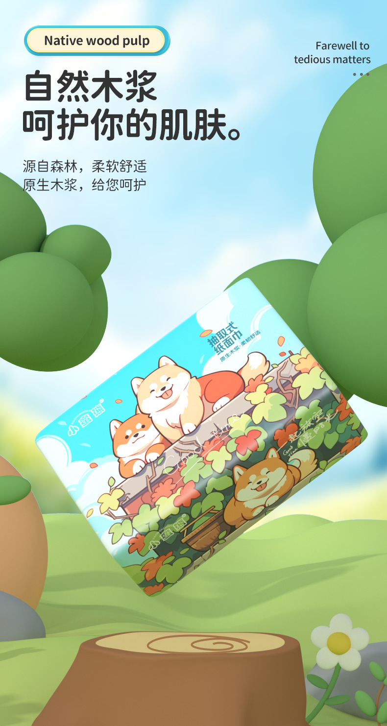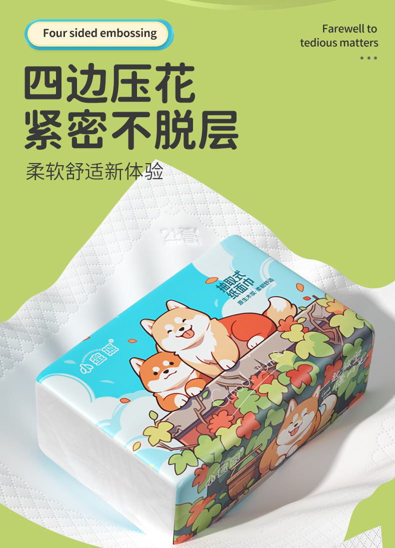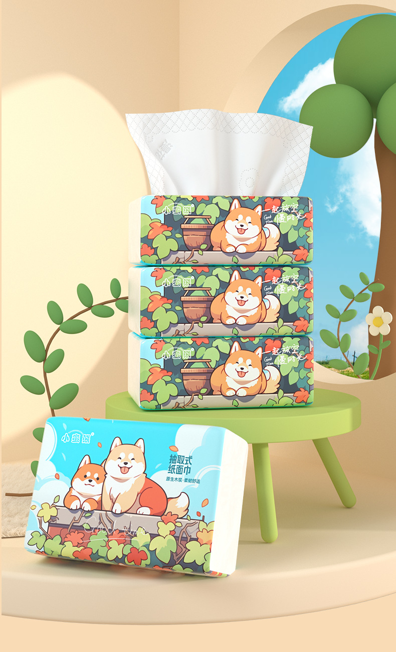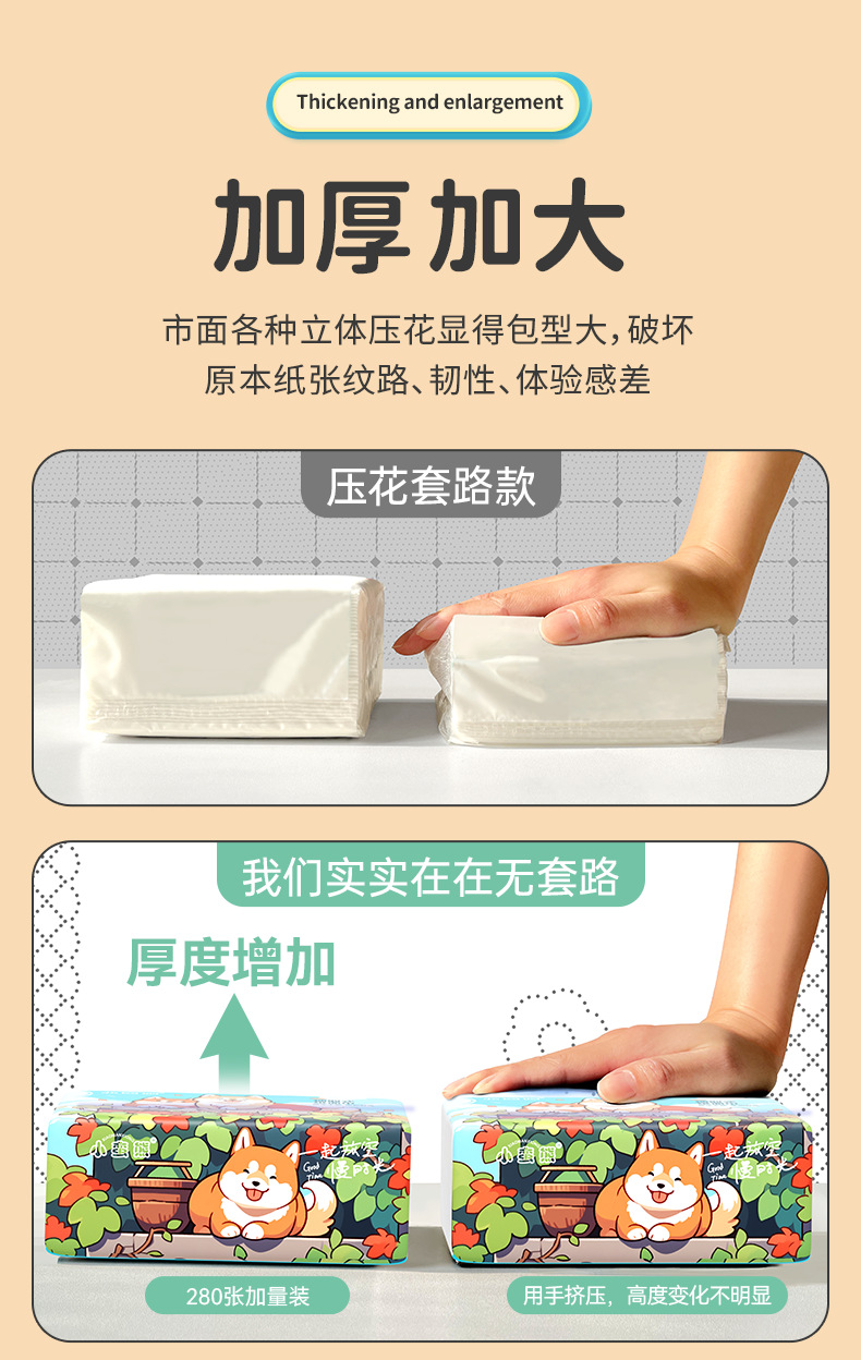 Xiaomianxiong Tissue Paper, 280 Sheets Per Box, Thickened Original Wood Pulp Napkins, Household Economical Pack, 5-Ply, Four-Sided Pressed Tissue Paper Wholesale