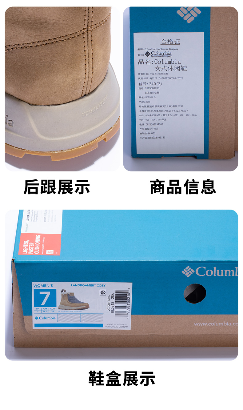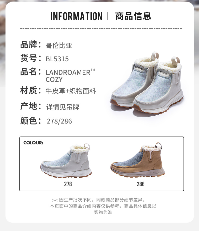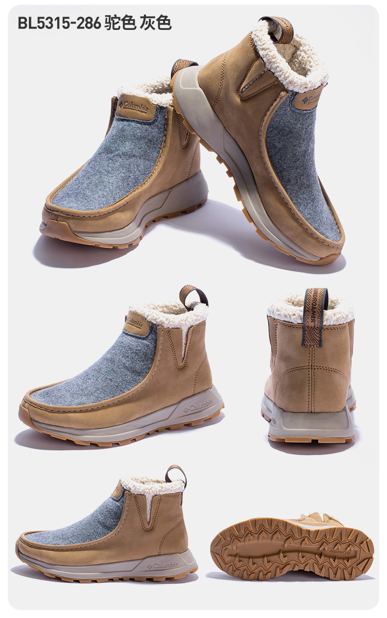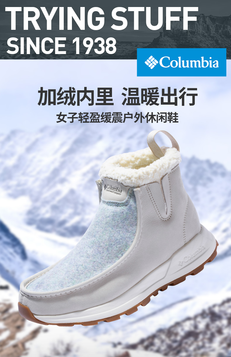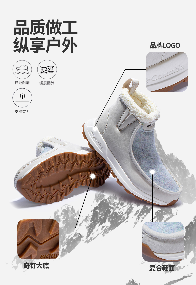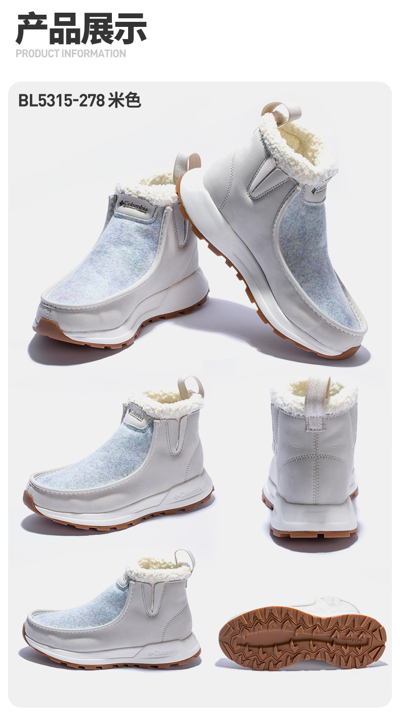 Columbia Women's Casual Shoes for Autumn and Winter, Fleece-Lined, Thickened, Warm, Non-Slip, Cushioning Short Boots Bl5315