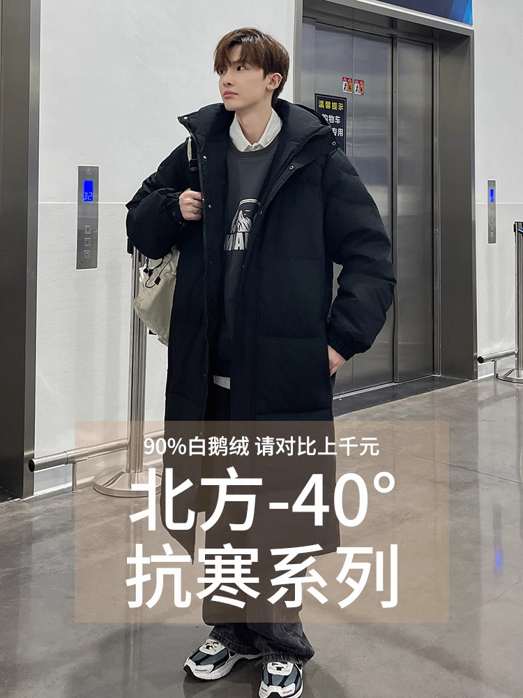 400g Long down Jacket for Men and Women, Over-The-Knee, Ultra-Thick Winter Coat from Northeast China, Harbin, Goose Down, Cold-Proof Clothing for Temperatures Below -40 Degrees