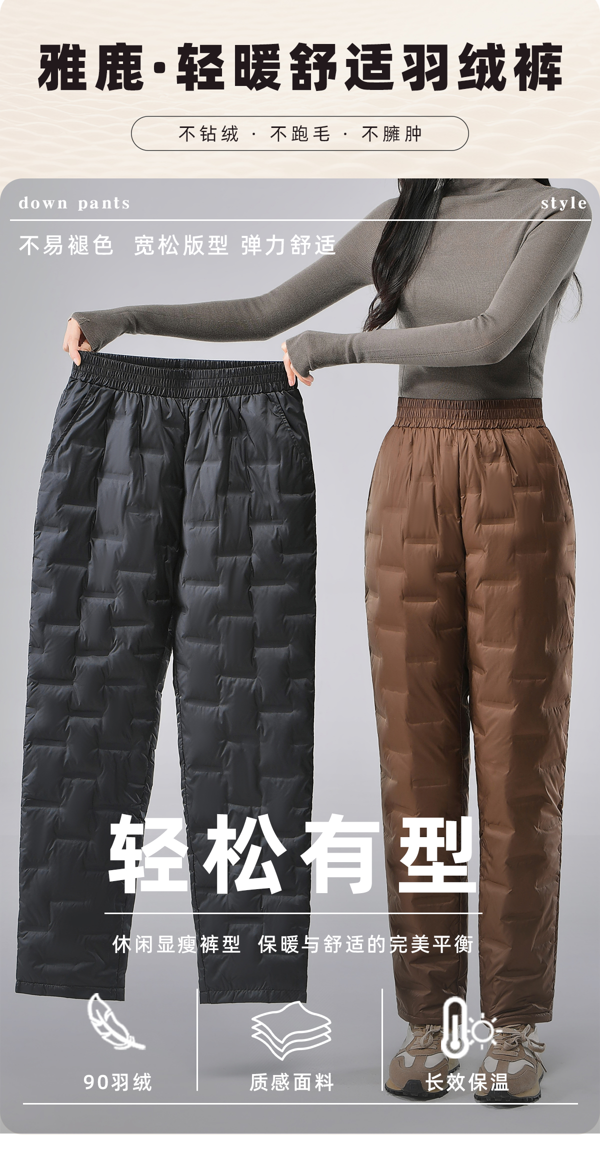 Yalu 2025 Winter New Women's down Pants, Thickened for Warmth, Cold-Resistant Cotton Pants, Loose Straight-Leg Pants for Middle-Aged and Elderly Women