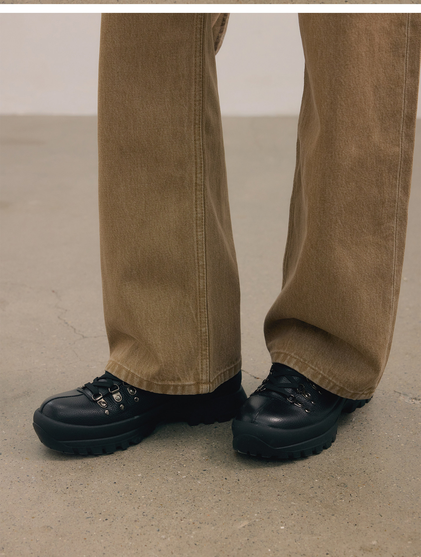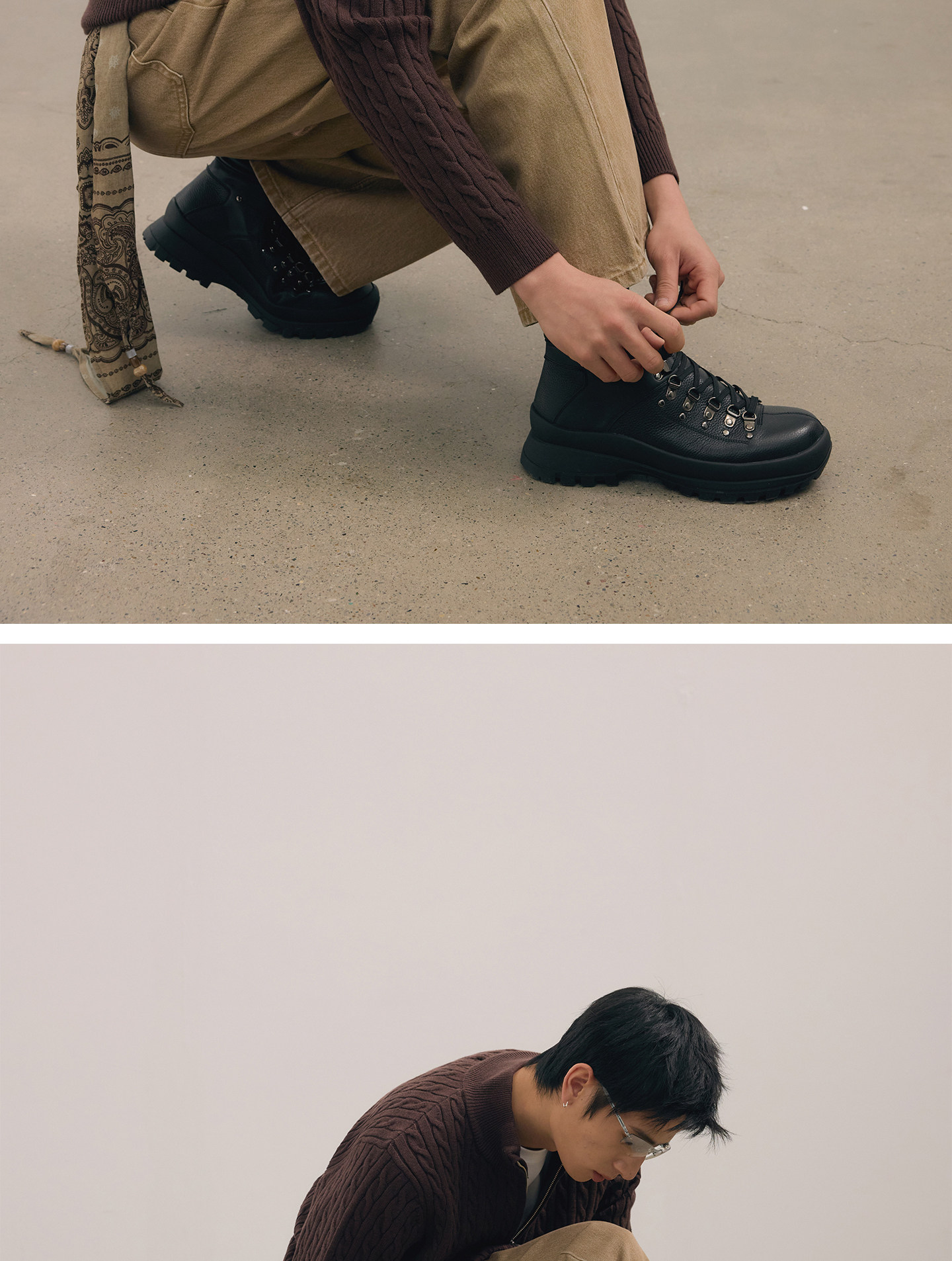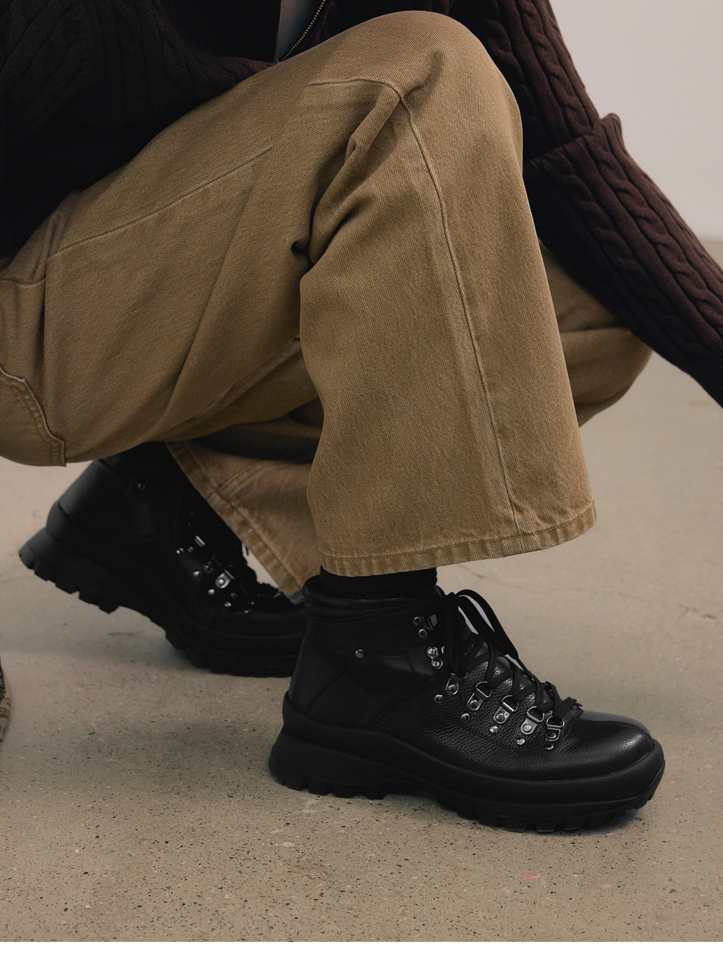 No Logo / Cow Suede and Calfskin Patchwork Outdoor Mid-High Hiking Boots