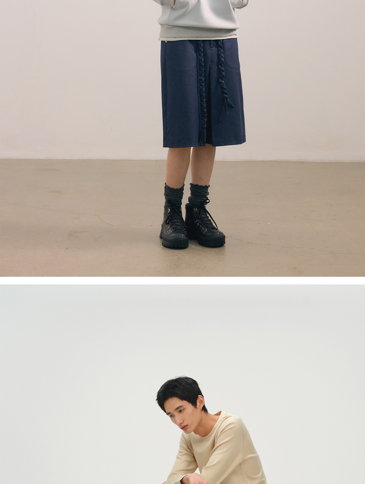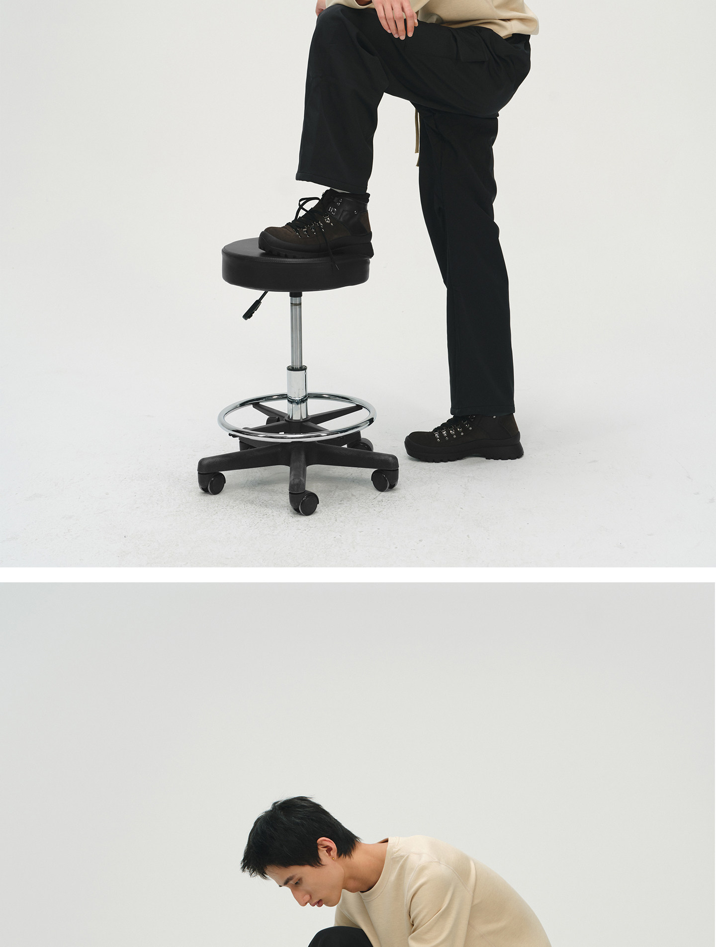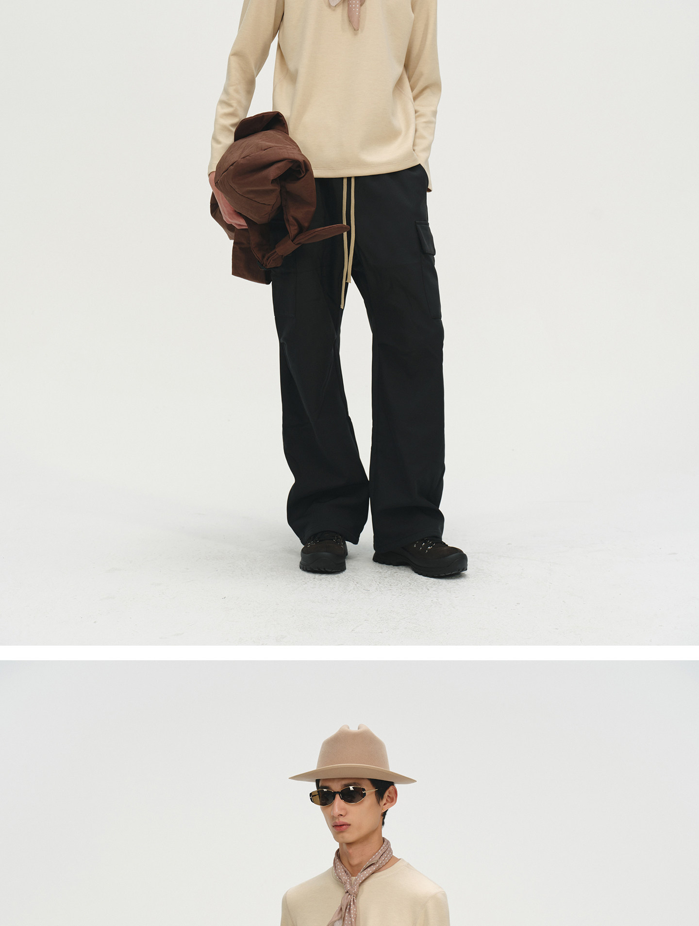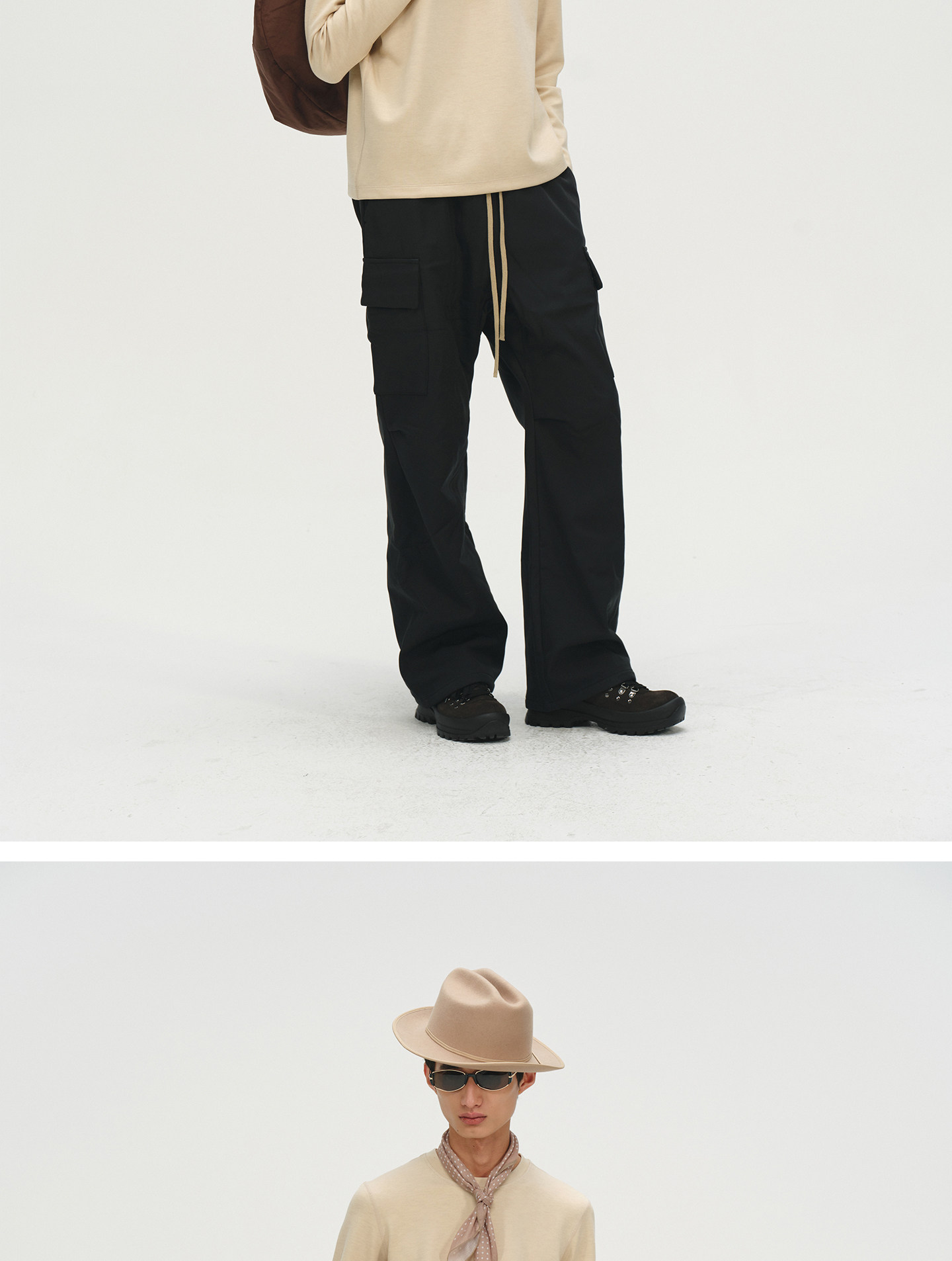 No Logo / Cow Suede and Calfskin Patchwork Outdoor Mid-High Hiking Boots