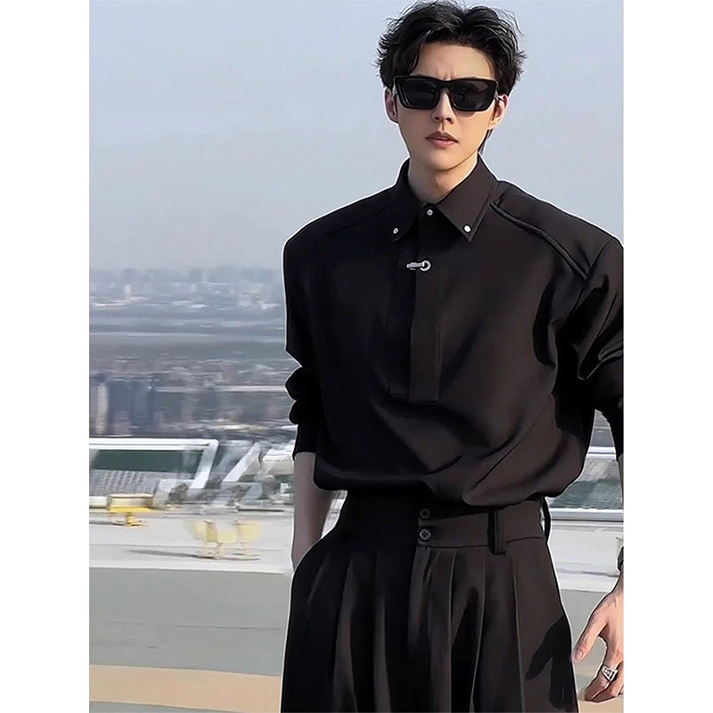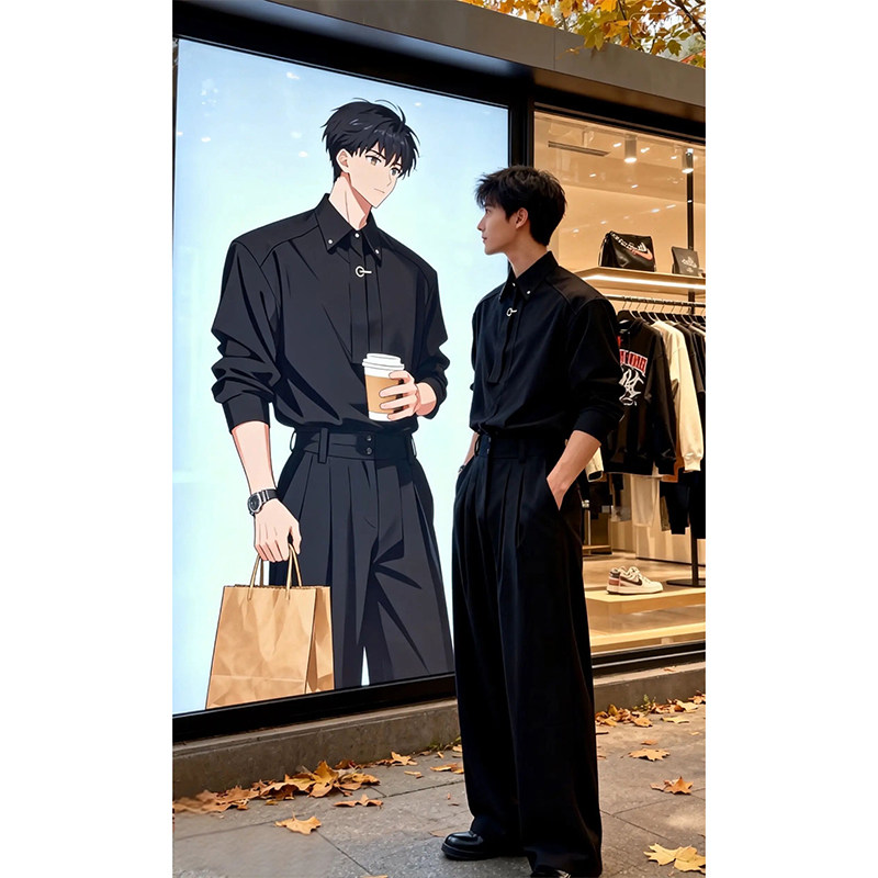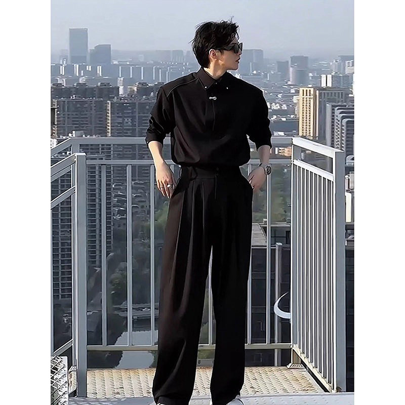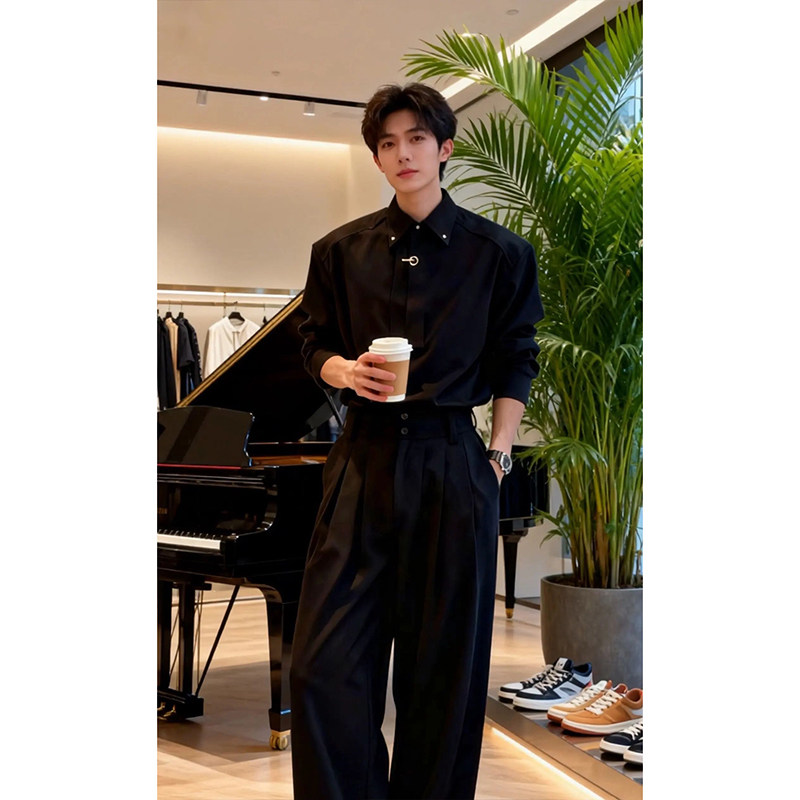 Korean Style Cool and Handsome Outfit for Boys, a Complete Set for Autumn and Winter, with a High-End Feel, Shirt and Pants, Fashionable Two-Piece Set